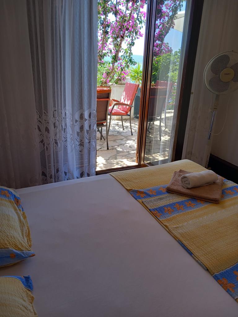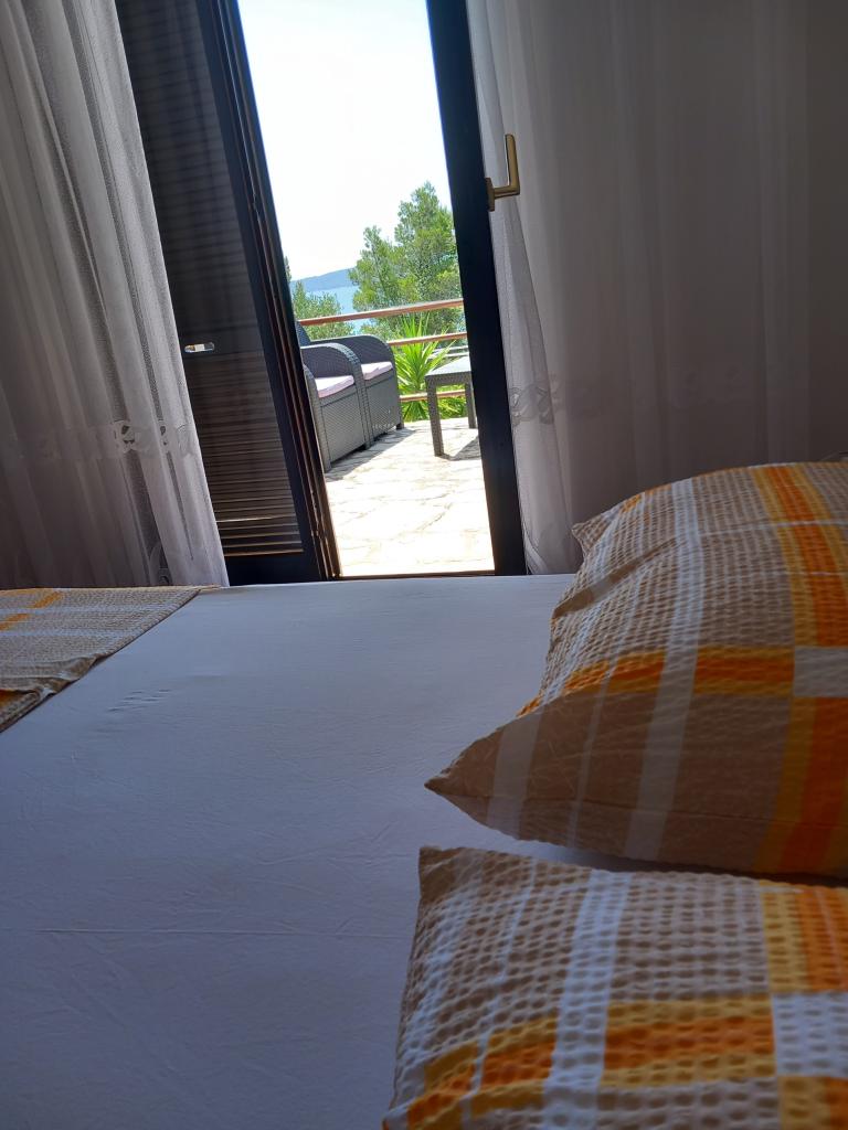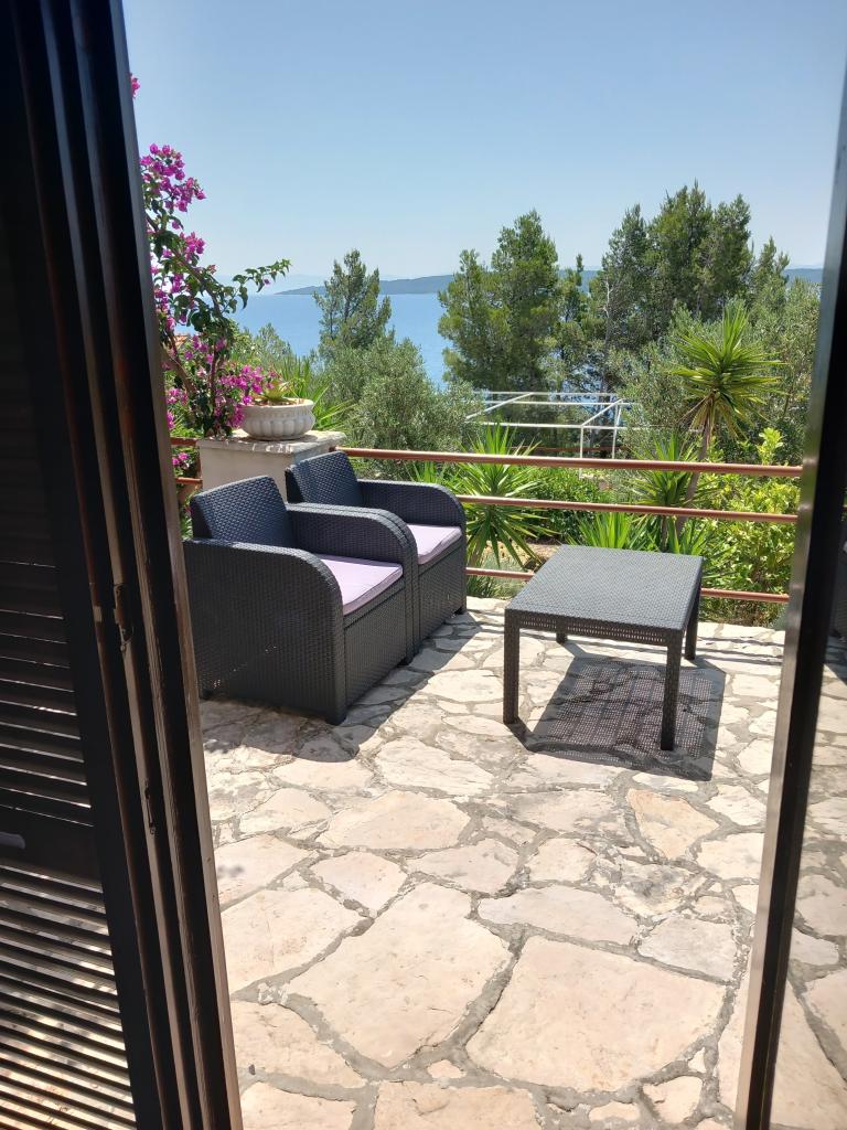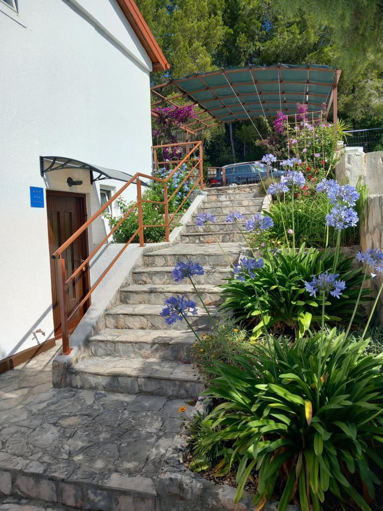 Wynajmujemy tylko jeden w pełni wyposażony apartament na oddzielnym piętrze rodzinnej willi, która znajduje się 130 metrów od morza (klimatyzacja, wi-fi, telewizja satelitarna, pralka, kuchenka mikrofalowa, ekspres do kawy), co oznacza, że jesteś tylko goście i mają pełną prywatność. Mieszkanie składa się z dwóch sypialni z podwójnymi łóżkami, kuchni z salonem (rozkładana sofa), łazienki, przedpokoju i dużego tarasu z pięknym widokiem na otwarte morze, wyspę Šćedro, Korculę i półwysep Pelješac, w otoczeniu ogród pełen różnorodnych roślin śródziemnomorskich. Parking znajduje się na ogrodzonym podwórku. Grill na tarasie. Na podwórzu znajduje się prysznic solarny na świeżym powietrzu. Plaże, restauracje, piekarnia, plac zabaw dla dzieci w odległości do 250m.