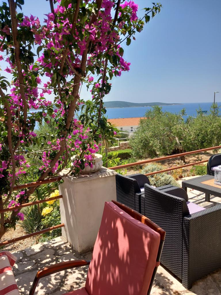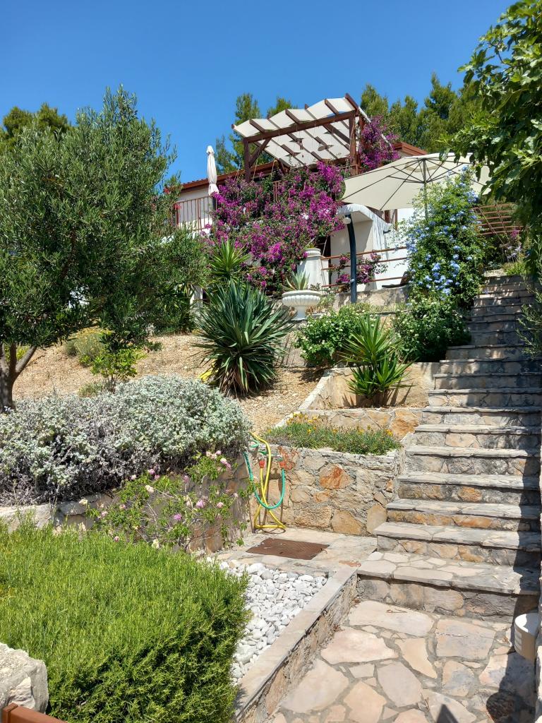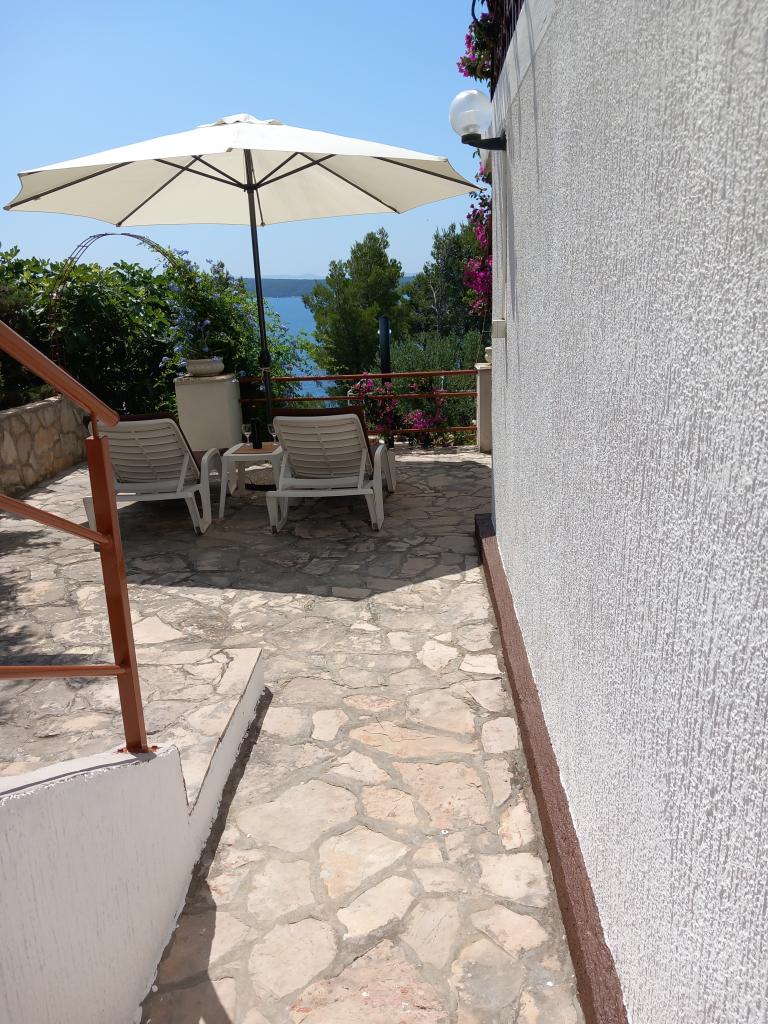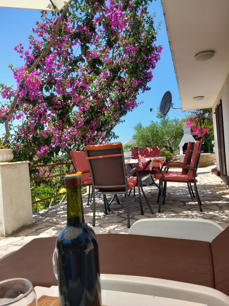 Wynajmujemy tylko jeden w pełni wyposażony apartament na oddzielnym piętrze rodzinnej willi, która znajduje się 130 metrów od morza (klimatyzacja, wi-fi, telewizja satelitarna, pralka, kuchenka mikrofalowa, ekspres do kawy), co oznacza, że jesteś tylko goście i mają pełną prywatność. Mieszkanie składa się z dwóch sypialni z podwójnymi łóżkami, kuchni z salonem (rozkładana sofa), łazienki, przedpokoju i dużego tarasu z pięknym widokiem na otwarte morze, wyspę Šćedro, Korculę i półwysep Pelješac, w otoczeniu ogród pełen różnorodnych roślin śródziemnomorskich. Parking znajduje się na ogrodzonym podwórku. Grill na tarasie. Na podwórzu znajduje się prysznic solarny na świeżym powietrzu. Plaże, restauracje, piekarnia, plac zabaw dla dzieci w odległości do 250m.