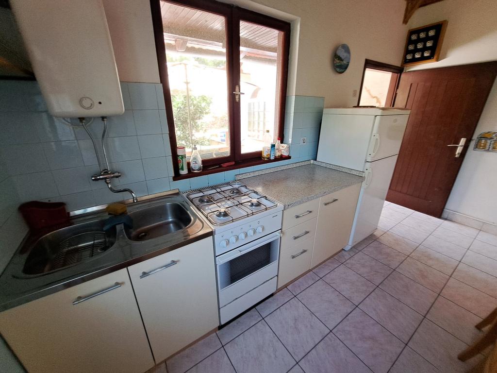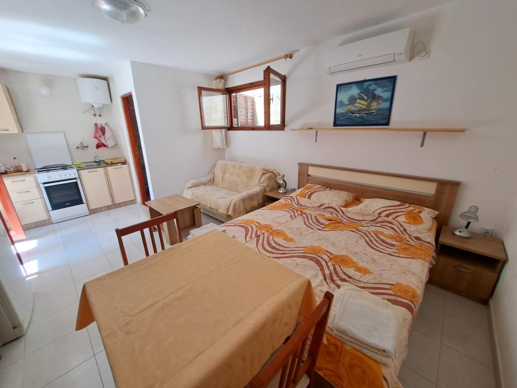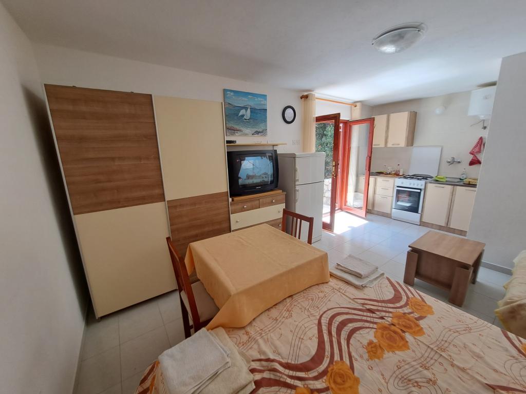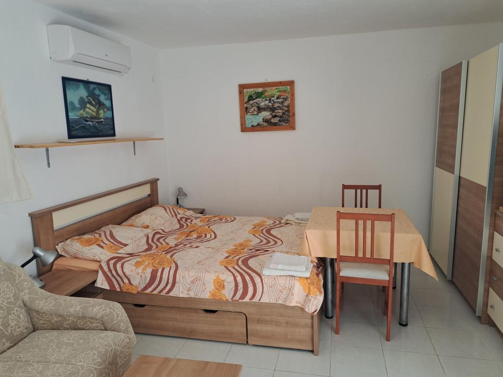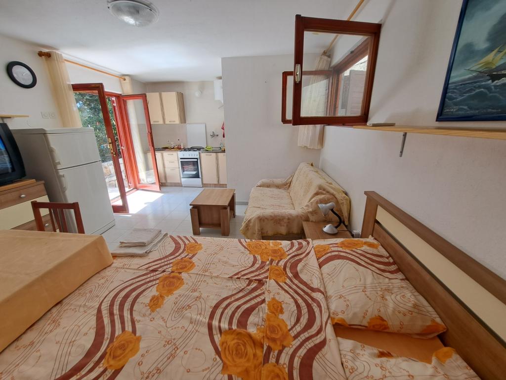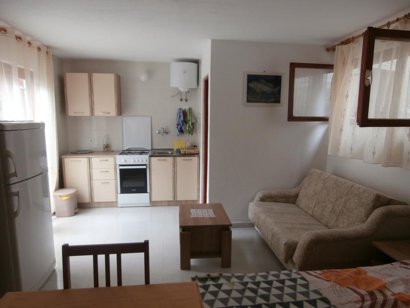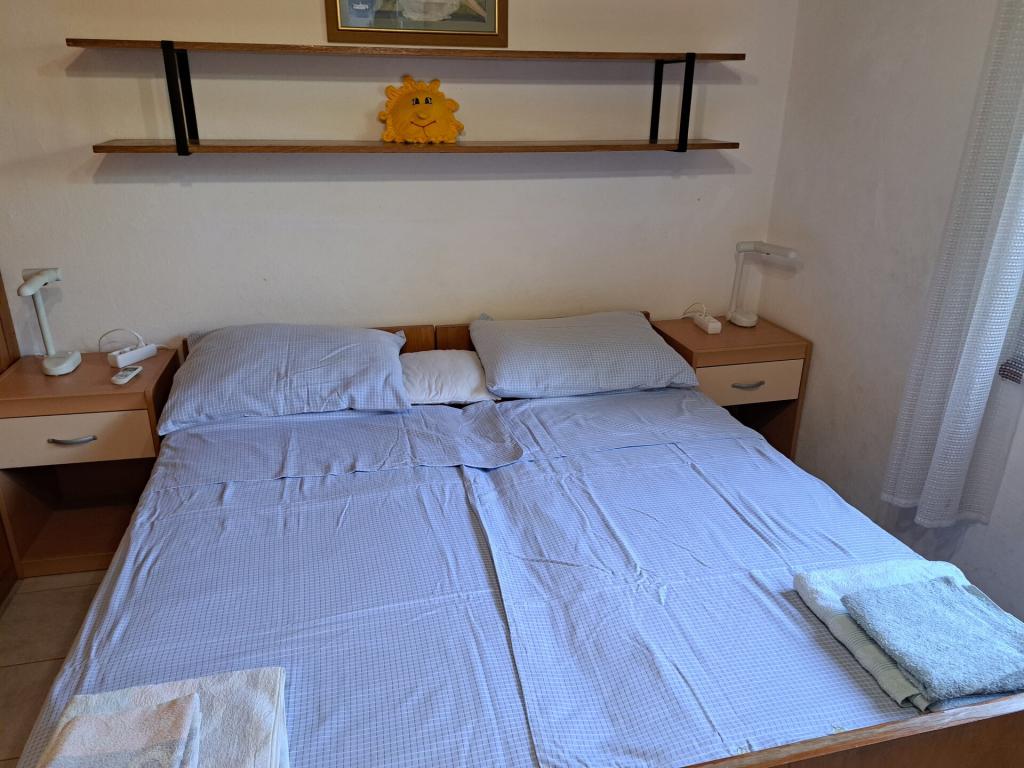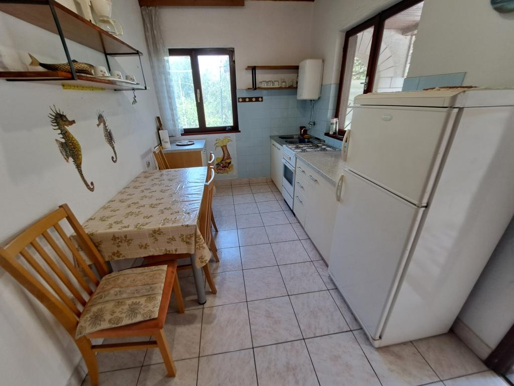 Dom składa się z dwupokojowego mieszkania A4 (4+0) i kawalerki A2 (2+1) na parterze. Dom jest nowy w sosnowym lesie w pobliżu pięknej kamienistej plaży, 60 m od plaży. Apartament A4, ID51294 składa się z dwóch sypialni, 2+2 łóżka (łóżka podwójne), w razie potrzeby dodatkowe łóżko. Apartament A4 (4+0) znajduje się na parterze, z kuchnią, łazienką i zadaszonym tarasem do spożywania posiłków i siedzenia oraz drugim tarasem dla dzieci i do opalania. Powierzchnia mieszkania to ok. 50 m2, tarasy 15 m2 i 25 m2. Oferujemy również nowy Kawalerka A2 (2+1) ID 51296, wielkość 40 m2 z tarasem. Telewizja satelitarna i klimatyzacja, dostęp do internetu i garaż na samochód. Moja rodzina wynajmuje mieszkanie pomiędzy nimi w okresie letnim.