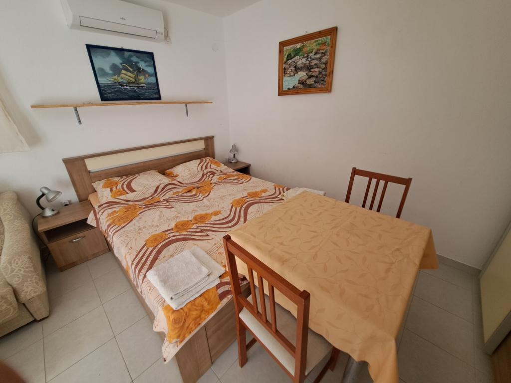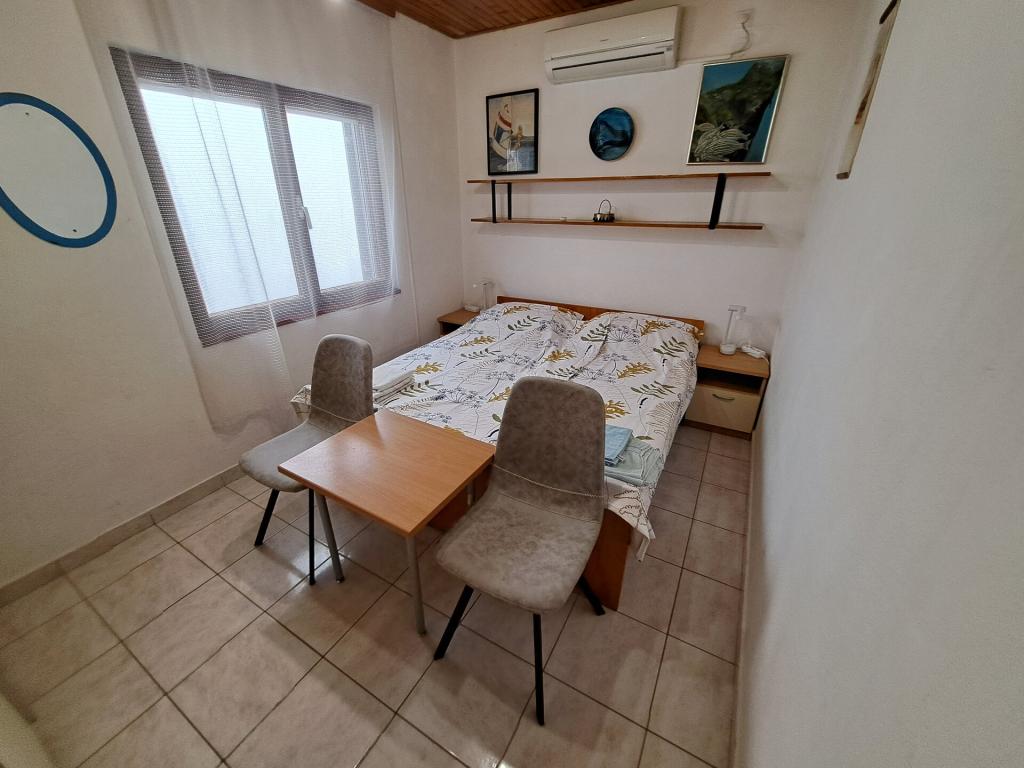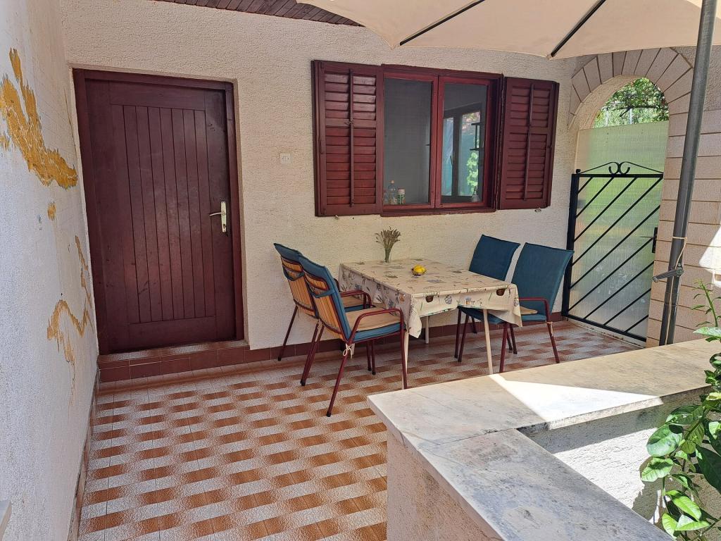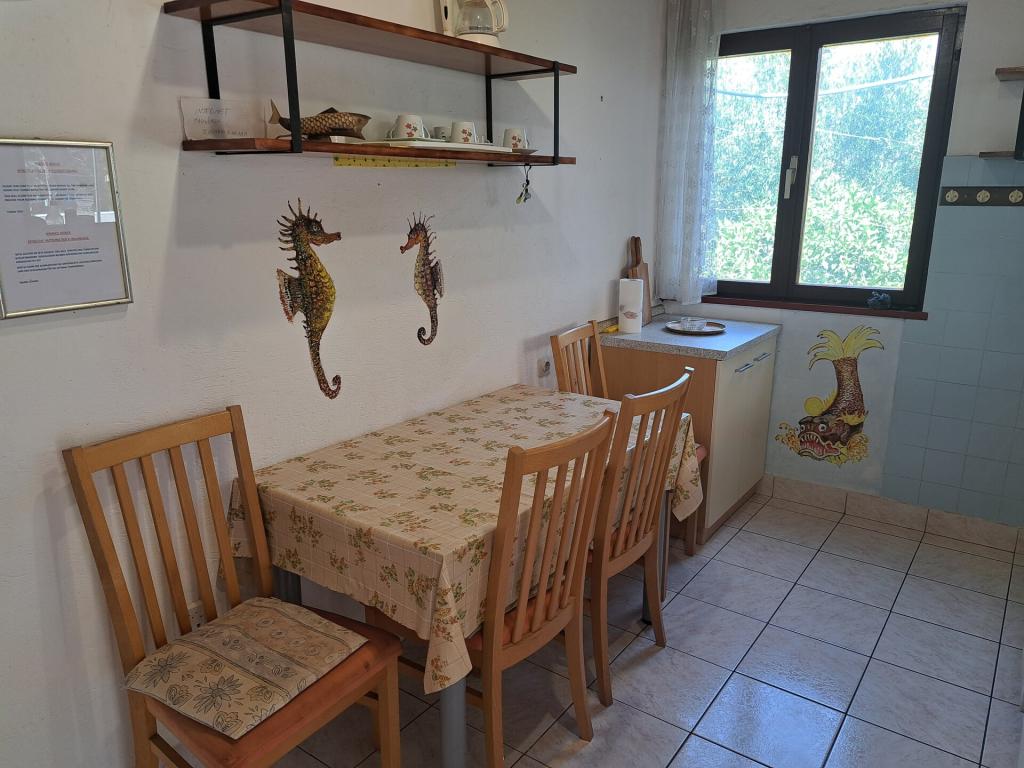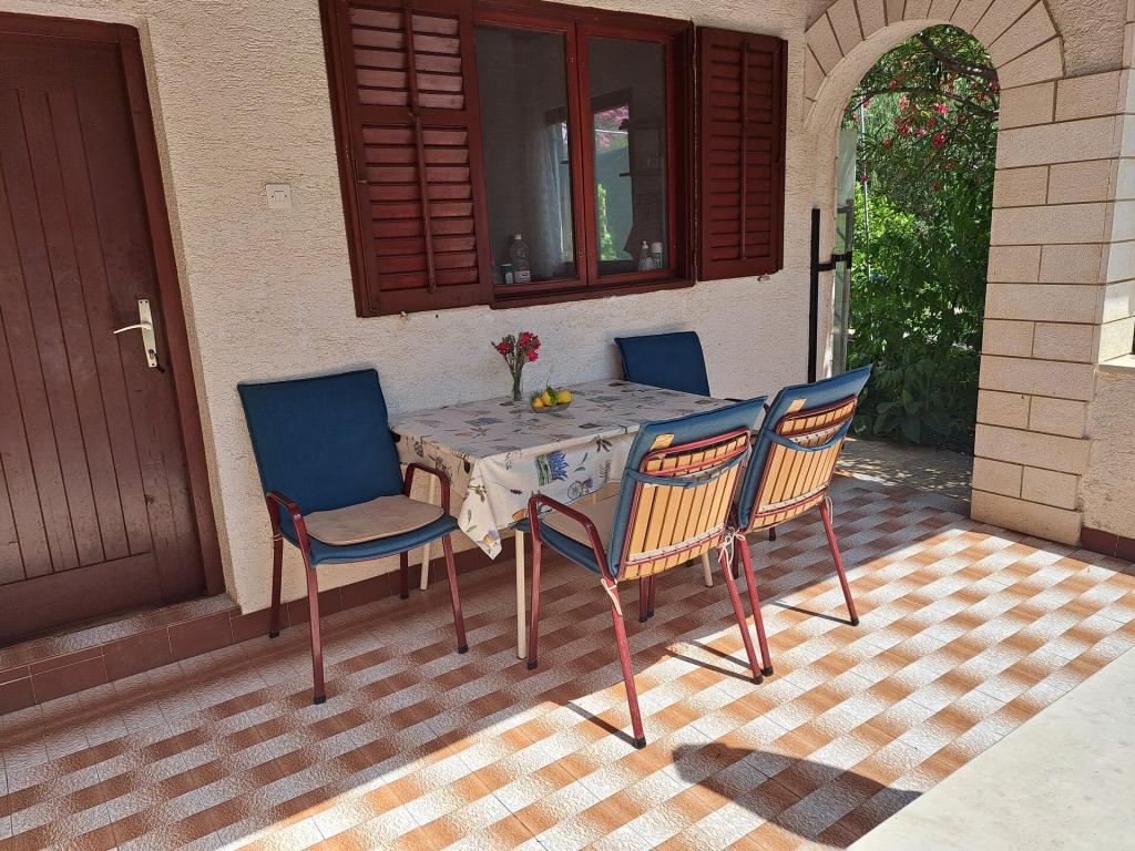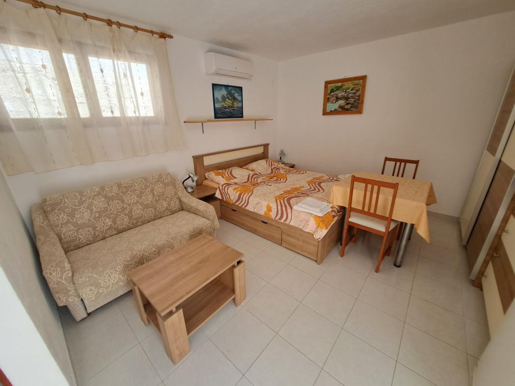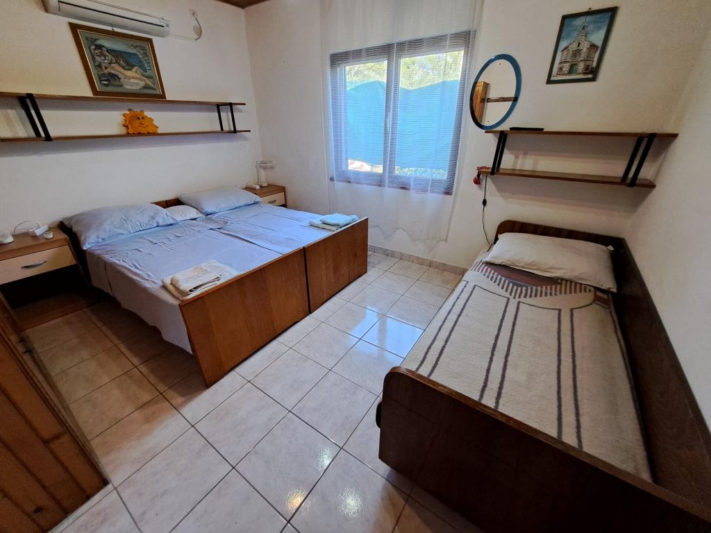 Dom składa się z dwupokojowego mieszkania A4 (4+0) i kawalerki A2 (2+1) na parterze. Dom jest nowy w sosnowym lesie w pobliżu pięknej kamienistej plaży, 60 m od plaży. Apartament A4, ID51294 składa się z dwóch sypialni, 2+2 łóżka (łóżka podwójne), w razie potrzeby dodatkowe łóżko. Apartament A4 (4+0) znajduje się na parterze, z kuchnią, łazienką i zadaszonym tarasem do spożywania posiłków i siedzenia oraz drugim tarasem dla dzieci i do opalania. Powierzchnia mieszkania to ok. 50 m2, tarasy 15 m2 i 25 m2. Oferujemy również nowy Kawalerka A2 (2+1) ID 51296, wielkość 40 m2 z tarasem. Telewizja satelitarna i klimatyzacja, dostęp do internetu i garaż na samochód. Moja rodzina wynajmuje mieszkanie pomiędzy nimi w okresie letnim.