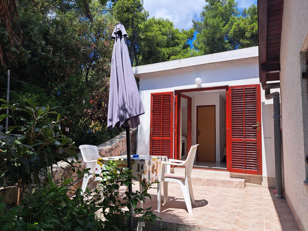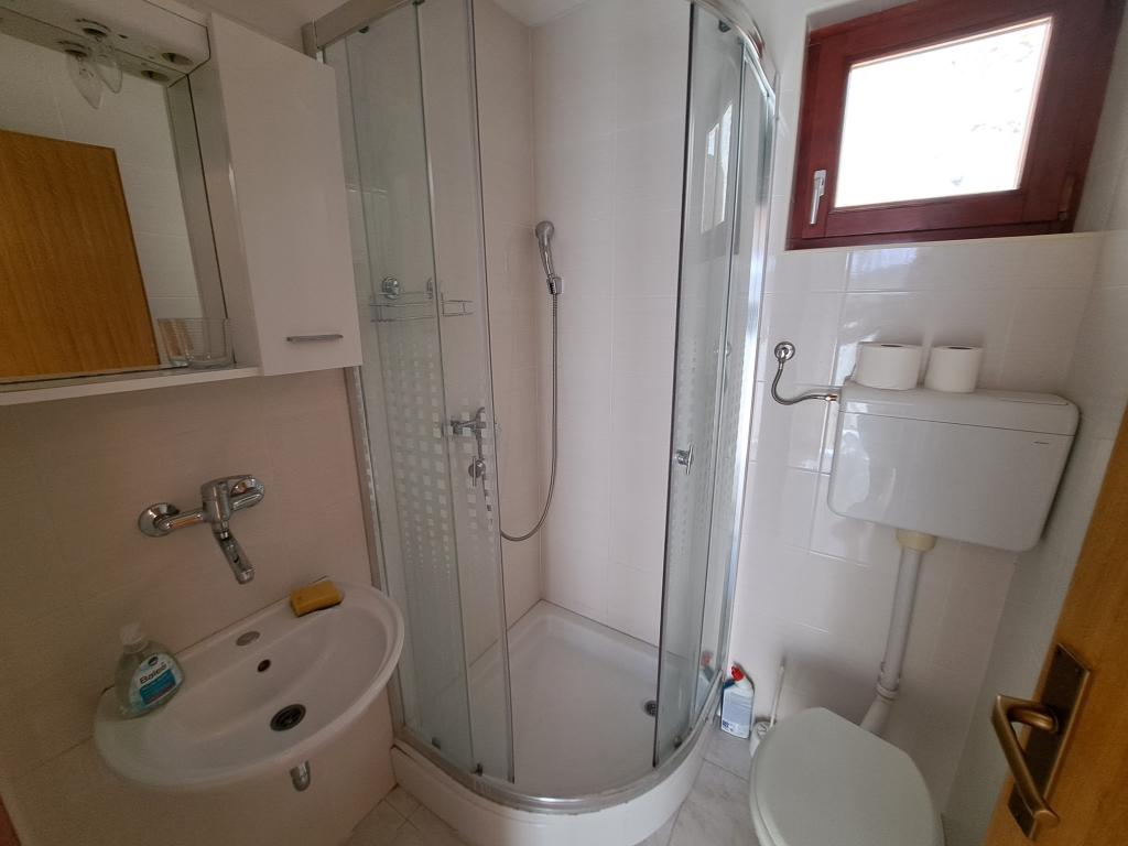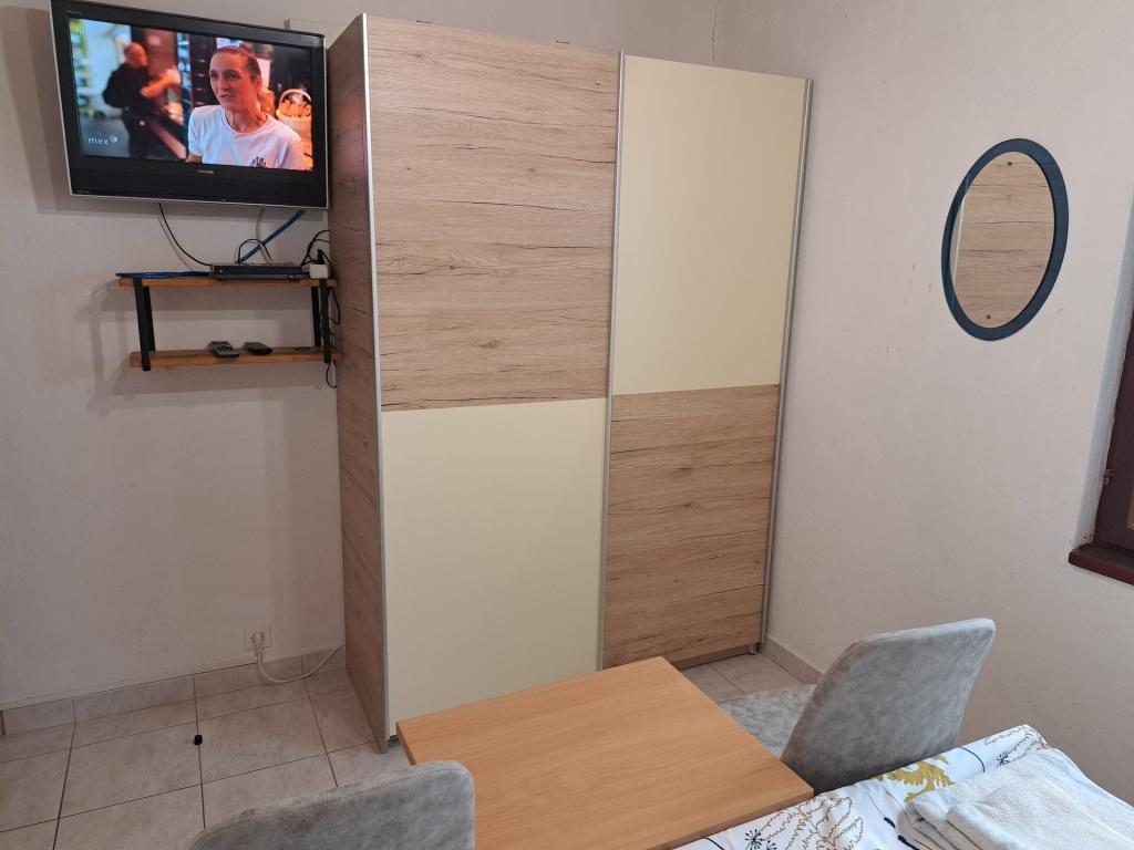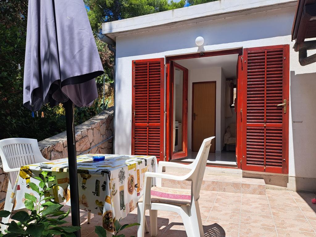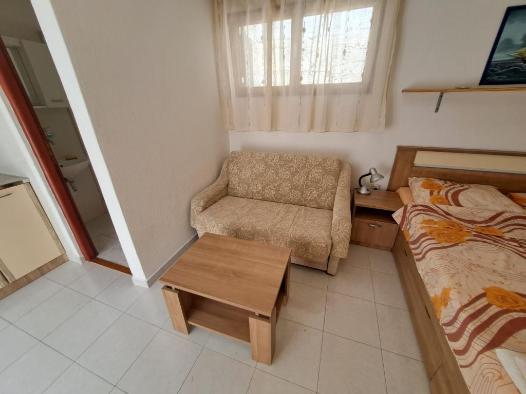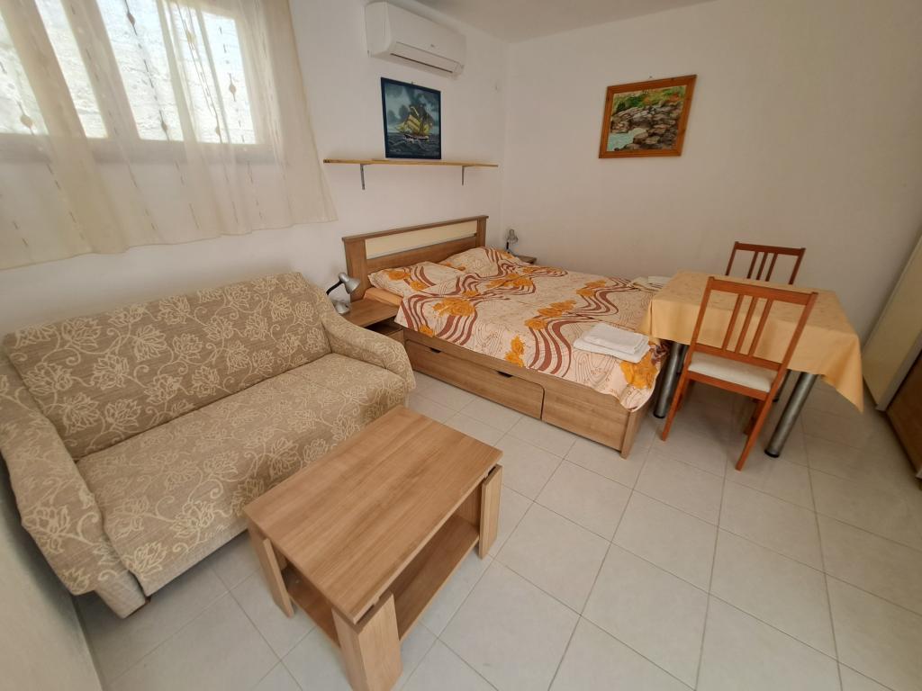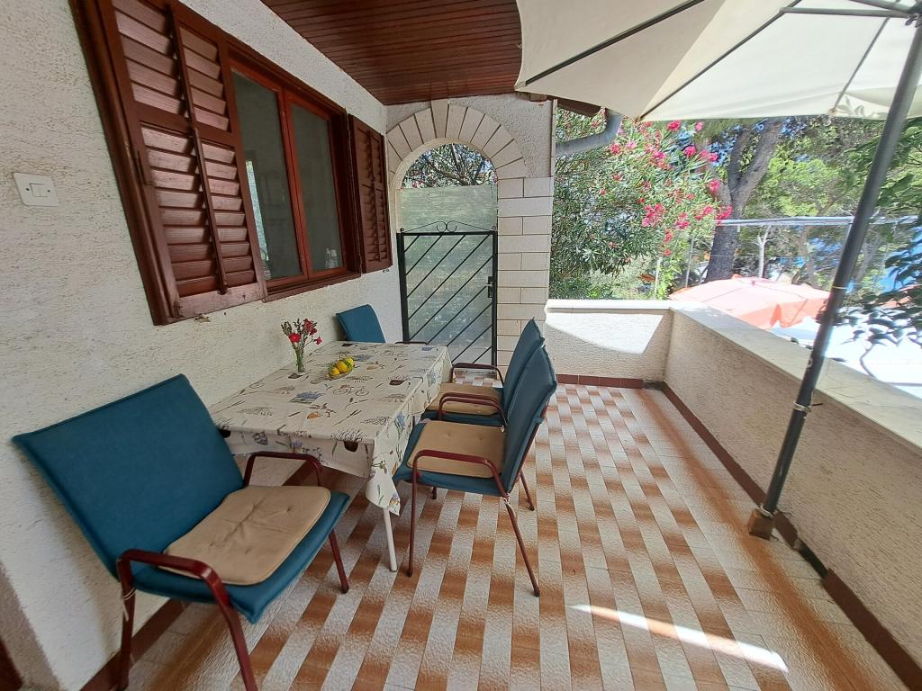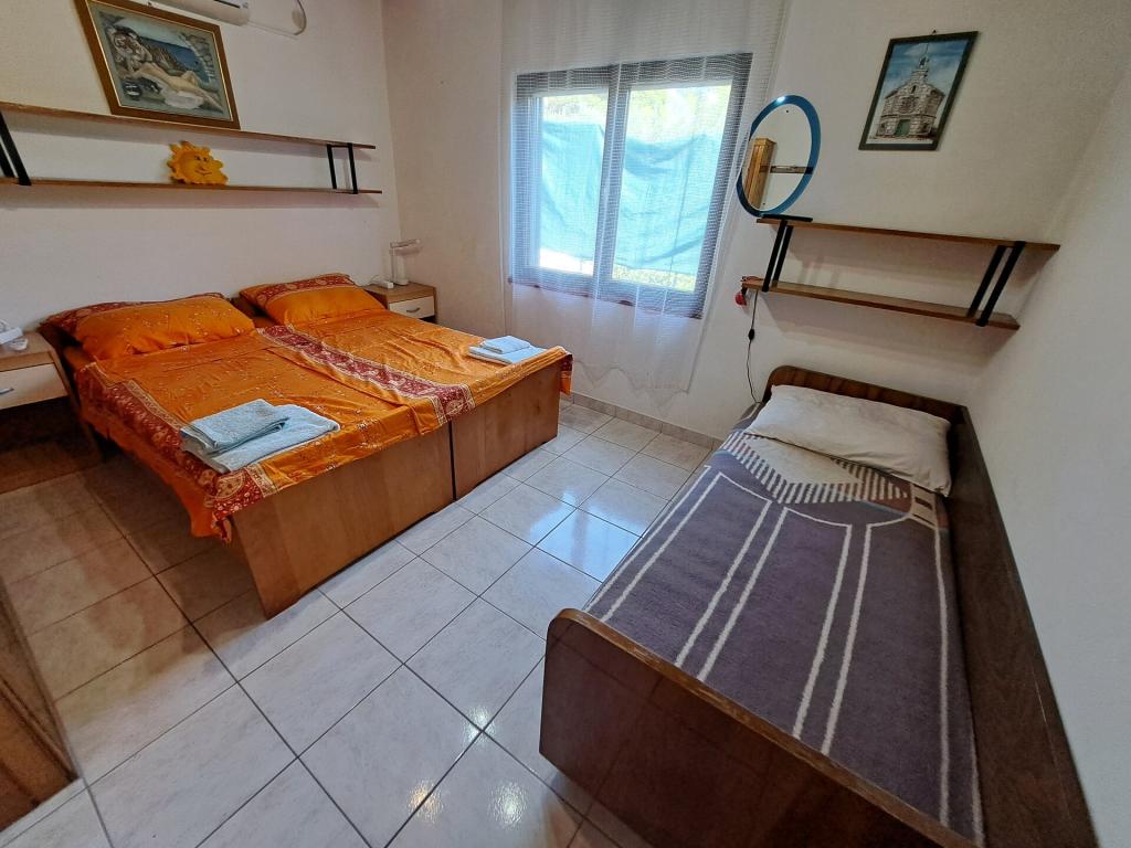 Dom składa się z dwupokojowego mieszkania A4 (4+0) i kawalerki A2 (2+1) na parterze. Dom jest nowy w sosnowym lesie w pobliżu pięknej kamienistej plaży, 60 m od plaży. Apartament A4, ID51294 składa się z dwóch sypialni, 2+2 łóżka (łóżka podwójne), w razie potrzeby dodatkowe łóżko. Apartament A4 (4+0) znajduje się na parterze, z kuchnią, łazienką i zadaszonym tarasem do spożywania posiłków i siedzenia oraz drugim tarasem dla dzieci i do opalania. Powierzchnia mieszkania to ok. 50 m2, tarasy 15 m2 i 25 m2. Oferujemy również nowy Kawalerka A2 (2+1) ID 51296, wielkość 40 m2 z tarasem. Telewizja satelitarna i klimatyzacja, dostęp do internetu i garaż na samochód. Moja rodzina wynajmuje mieszkanie pomiędzy nimi w okresie letnim.