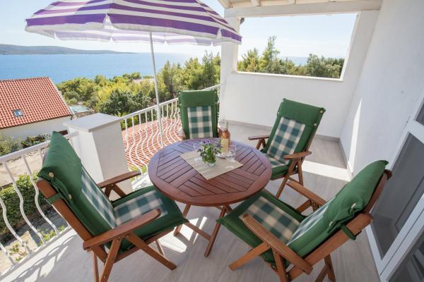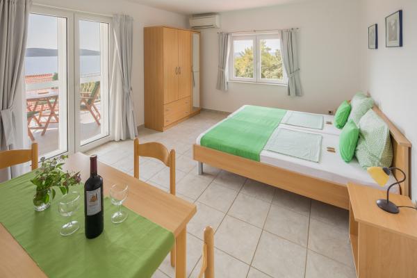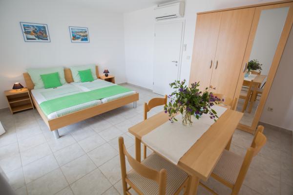 Apartament nr 1 godny polecenia, jeden z lepszych w których byłam, przestronne pokoje, kuchnia bardzo dobrze wyposażona, taras duży z widokiem na morze, łazienka duża, bardzo czysto, właściciele bardzo sympatyczni