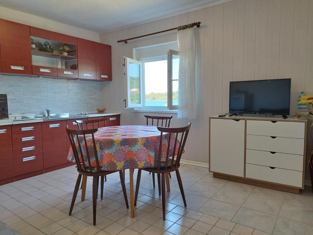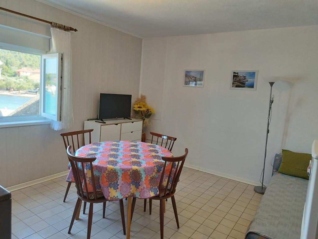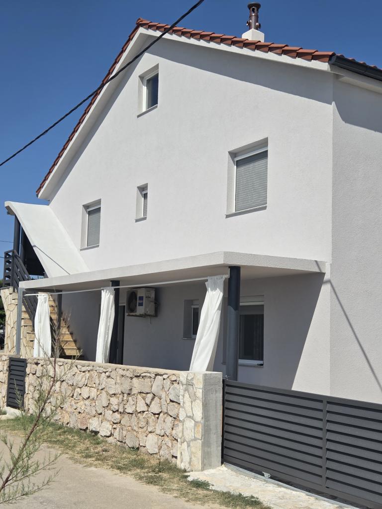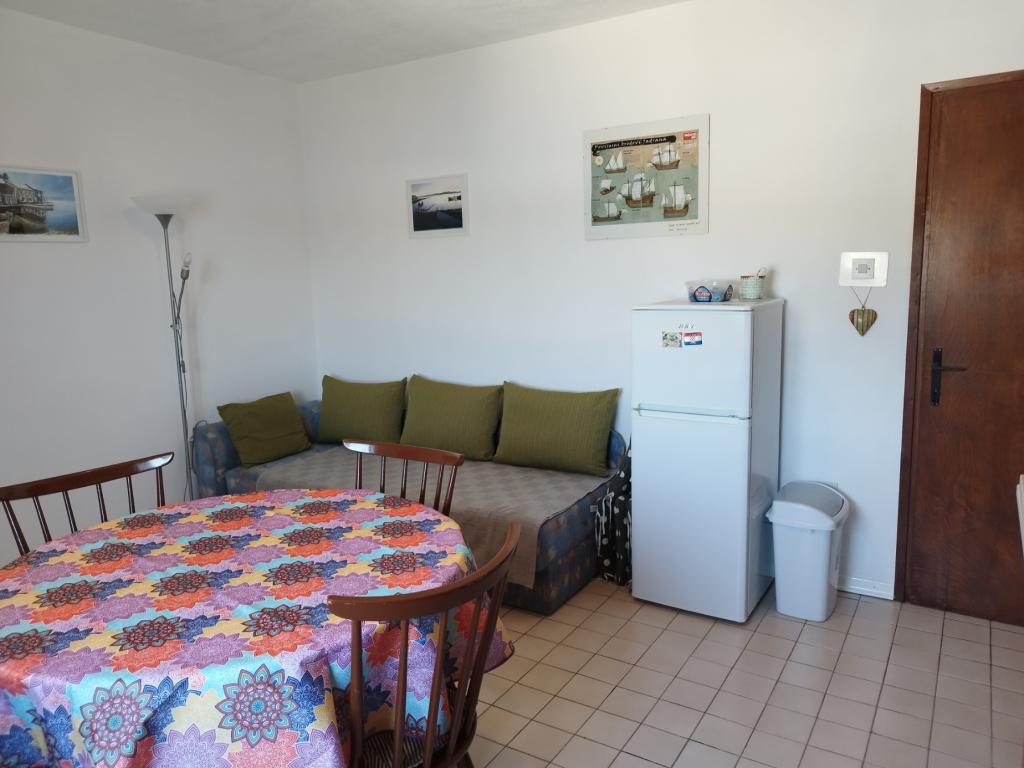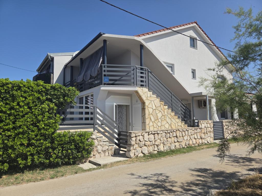 Apartament dla 4 osób znajduje się na pierwszym piętrze domu. Powierzchnia wynosi 75m2 i składa się z: kuchni, jadalni i salonu w jednym pomieszczeniu, 2 oddzielnych dwuosobowych sypialni, łazienki oraz tarasu. Mieszkanie jest klimatyzowane.