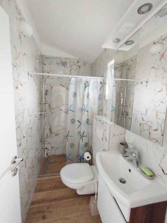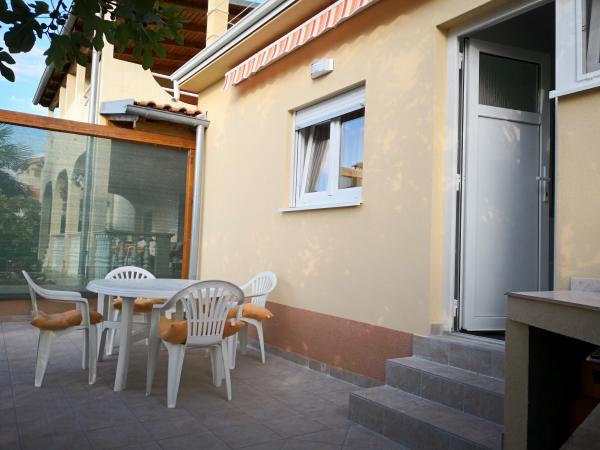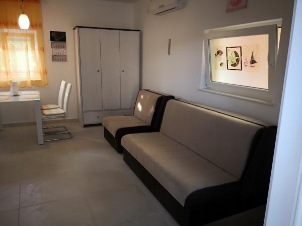 Wygodne, klimatyzowane apartamenty, wyposażone we wszystko, czego potrzeba do relaksującego rodzinnego wypoczynku...Ciesz się spokojem, widokiem z tarasu i komfortem naszych apartamentów, lasami sosnowymi, szlakami pieszymi i rowerowymi oraz pięknymi plażami - niezależnie od tego, czy lubisz piaszczyste, żwirowe lub samotne kamienie ... Wszystko, czego potrzebujesz, znajduje się w odległości 5-10 minut spacerem: sklep, kawiarnia, restauracja, poczta, kościół, plaża, port... Więc nie krępuj się korzystać z naszego grilla: jeśli coś idzie nie tak, możesz spokojnie wskoczyć do sklepu, a jak ryba się spali - restauracja jest znakomita... i możesz odświeżyć się przed wyjściem pod prysznic na zewnątrz - więc nie przeszkadza Ci, że łazienka była zajęta przez Ciebie żonę lub dzieci ;-) Samochód może cały czas odpoczywać na podwórku, a można nim eksplorować dwie wyspy bez tłumów z mnóstwem ukrytych piękności... Bo spokojne miejsce nie oznacza nudy: każde miejsce ma swoje własny festiwal, lub własną starożytność, lub swoje naturalne piękno - które czeka, aż je rozpoznasz i napełnisz nim swoją duszę, bo wszystkie sytuacje, w których z nami uciekniesz :-)