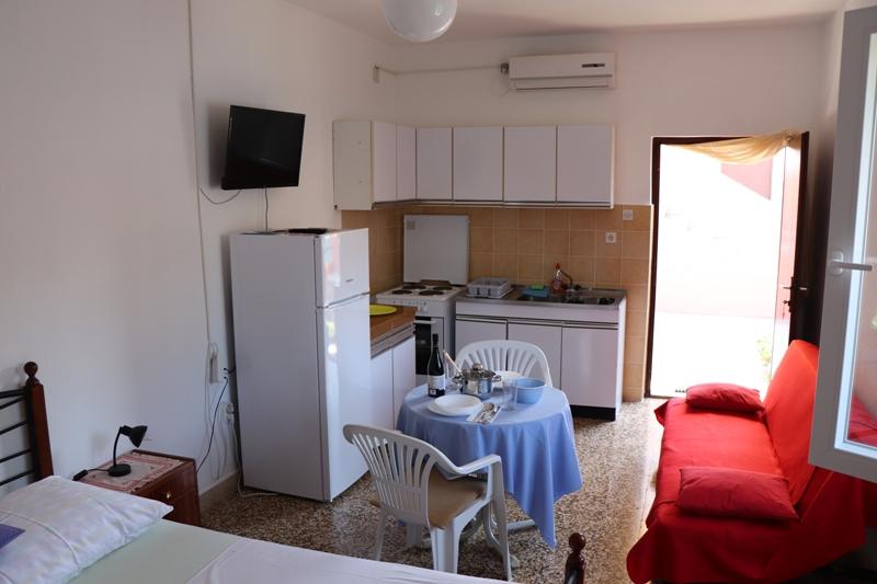 Z Szybenika na wyspę Žirje można dotrzeć promem lub katamaranem. Dom położony jest w zatoce Muna (port promowy i łodziowy), 10 m od morza. Apartament znajduje się na parterze domu. Ma powierzchnię 19 m². Przed wejściem znajduje się zadaszony taras o powierzchni 21 m² z widokiem na morze. Na tym samym tarasie, obok wejścia do studia, znajduje się osobne wejście do łazienki i toalety, które należą wyłącznie do apartamentu. Apartament wyposażony jest w klimatyzację, Wi-Fi, telewizor, naczynia, lodówkę z zamrażarką, kuchenkę elektryczną do gotowania i pieczenia, łóżko małżeńskie, szafę i dodatkową rozkładaną sofę. Pościel i ręczniki wymieniane są raz w tygodniu (w cenie). Do dyspozycji Gości jest również grill na świeżym powietrzu. Zwierzęta nie są akceptowane. Do domu można dojechać samochodem, a na miejscu dostępny jest bezpłatny parking. Sklep (w którym można kupić wszystko oprócz świeżego mięsa) znajduje się 100 m od domu. Na wyspie znajdują się cztery inne zatoki, w których można zjeść wyśmienite dania kuchni lokalnej.
