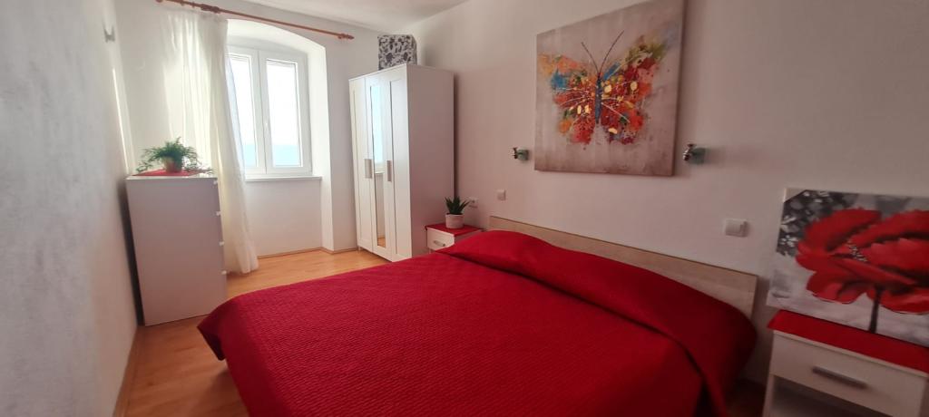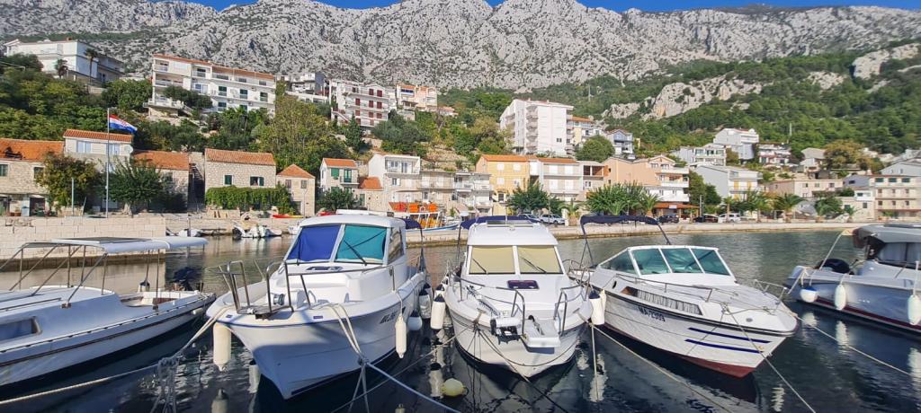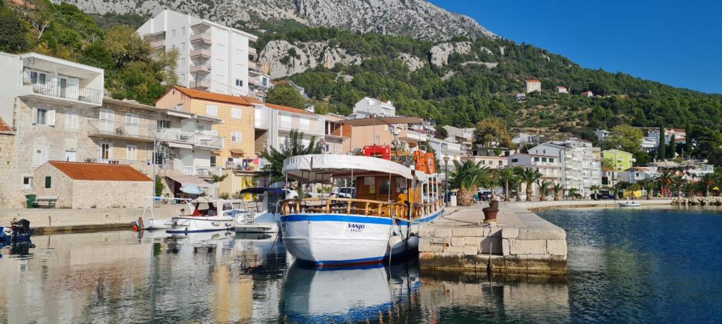 Živogošće znajduje się w południowej części Riwiery Makarskiej u podnóża Biokovo. Składa się z trzech mniejszych, nie połączonych ze sobą miejscowości na wybrzeżu: Porat – Mala Duba – Blato. Živogošće jest zamieszkane od czasów iliryjskich i rzymskich, o czym świadczą iliryjskie kopce / groby / na szczycie wzgórza Suzina i pozostałości rustykalnych willi w Mala Duba i Blato. Naturalne piękno gajów oliwnych i lasów sosnowych, które górują nad drobnymi żwirowymi plażami, 6 km połączonych plaż, czyste i nieskażone morze, a wszystko to położone u podnóża wysokiej góry, szczytu Sutvid 1155 m, zapewnia turystom wyjątkową atmosferę i przyjemność . Oferujemy zakwaterowanie w przestronnym apartamencie dla 4+2 osób w rodzinnym kamiennym domu w stylu dalmatyńskim, pierwszym rzędzie do morza. Mieszkanie ma dwa piętra i składa się z dwóch sypialni, dwóch łazienek, salonu z kuchnią oraz przestronnego balkonu. Całkowita powierzchnia mieszkania to 90 m2. Apartament posiada niezapomniany widok na morze i okoliczne wyspy, klimatyzację, internet, TV oraz strzeżony parking.