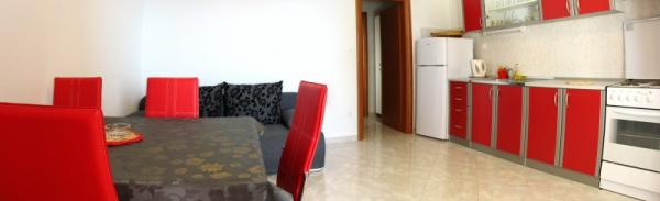 Mamy sześć apartamentów. Wszystkie apartamenty wyposażone są w klimatyzację, kuchnię i łazienkę. I wszyscy, oczywiście, mają widok na morze. Apartamenty są przestronne i przyjemne otoczenia. Dla wszystkich naszych gości mamy parking.