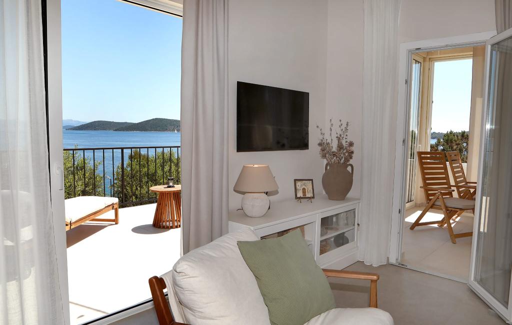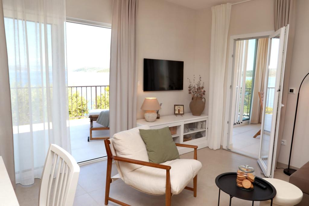 Opłata jest wliczone w cenę. Dokument potwierdzający rezerwację przy rezerwacjiRusso 2 to niezwykle komfortowy i elegancko urządzony dom w otoczeniu natury, z dużym, słonecznym i panoramicznym tarasem, z którego można podziwiać zachwycające wschody słońca, sprawiające, że z utęsknieniem czeka się na wczesne poranki. Kilkadziesiąt metrów poniżej znajduje się cicha, prywatna, kamienista plaża z wygodnym dostępem do wody. Zatoka jest bezpieczna i ma idealną wielkość do pływania i surfowania. Można spacerować wzdłuż wybrzeża lub malowniczymi, podwyższonymi ścieżkami. Długa, błękitna, piaszczysta plaża Vela Rina, spokojna rano i wieczorem, znajduje się zaledwie 10 minut przyjemnego spaceru pośród gajów oliwnych i przez ciekawą, starą wioskę. Nasz wrześniowy pobyt na wyspie był bardzo spokojny i pełen wrażeń. Dom jest przytulny, doskonale i przemyślanie umeblowany, bardzo czysty i schludny, ale jednocześnie przytulny. Dodatkowy prysznic na zewnątrz, osłonięty drzewem oliwnym, z widokiem na morze, z zapachem lawendy i rozmarynu, to najpiękniejsza łazienka, a oczywiście wewnętrzna jest również wygodna i pięknie urządzona. Właściciele Snježana i Siniša są niezwykle przyjaźni, serdeczni i gościnni. Mimo że mieszkają za morzem, zawsze służą pomocą i potrafią zapewnić ciepłe i serdeczne niespodzianki. Jeśli lubisz spokojne i komfortowe wakacje, naturę, niczym niezakłócony widok na morze i kręte ścieżki wśród śródziemnomorskiej roślinności, gorąco polecamy to miejsce. Drvenik Mali to naprawdę mała, ale bardzo urokliwa wyspa, a dom Russo 2 z widokiem na morze jest równie urokliwy.