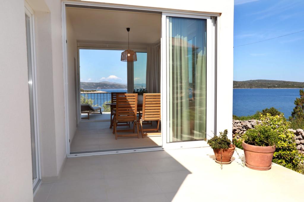 Dom Russo 2 to nowy, w pełni wyposażony dom dla dwóch osób, położony 50 m od morza, na wyspie Drvenik Mali, daleko od wioski, idealny na pełne wakacje. Dom jest idealnym połączeniem komfortu i śródziemnomorskiego otoczenia naturalnego, składa się z przestronnego salonu z w pełni wyposażoną kuchnią i jadalnią, sypialni (łóżko podwójne 160x200), łazienki, przeszklonej jadalni, którą można całkowicie zamknąć lub całkowicie otworzyć w razie potrzeby, przestronnego tarasu z leżakami, z którego rozciąga się piękny widok. Dom jest klimatyzowany. Za domem znajduje się kuchnia zewnętrzna z grillem, zewnętrzny prysznic solarny i bezpłatny parking. Pozostałe domy w zatoce są wystarczająco oddalone, aby nasi goście mieli pełną prywatność. Dom jest samowystarczalny, ponieważ posiada elektrownię słoneczną i zbiornik na wodę deszczową. Cena obejmuje podatek turystyczny.