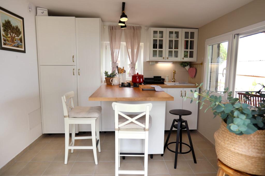 Co tu dużo mówić o takim zakwaterowaniu i tego rodzaju gospodarzach... Dom idealny, idealny dla osób pragnących ciszy i spokoju, bez turystycznego zgiełku i tłumów. Kuchnia wyposażona jest we wszystko, co niezbędne do gotowania, od naczyń po przyprawy. Wszystko jest zadbane i nieskazitelnie czyste. Wody i elektryczności wystarczy, jeśli są racjonalnie wykorzystywane. Morze jest tylko 10 kroków od domu i jest krystalicznie czyste. A taras jest piękny z widokiem, który dosłownie zapiera dech w piersiach. Gospodarze to pogodni, pogodni ludzie, którzy po przyjeździe przygotowali dla nas znakomity obiad. Snjezana i Siniša, dziękuję z całego serca! Na pewno wrócimy. To były nasze najlepsze wakacje do tej pory!
