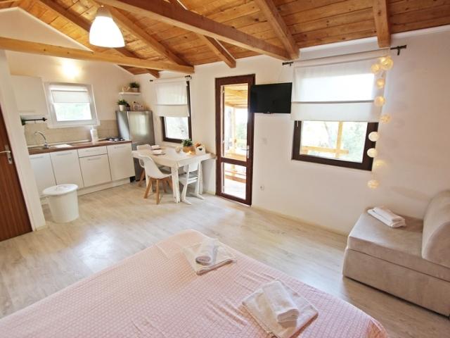 Dom położony jest na wyspie Mali Vinik. Jest odizolowany. Z tarasu domu roztacza się widok na Murter. Do miasta Murter można dojechać łodzią w 5 minut. Domek posiada kuchnię i jest wyposażony w kuchenkę gazową, lodówkę z zamrażarką, toaletę, otwartą sypialnię z łóżkiem 160×200 oraz dostawkę dla trzeciej osoby. Energia elektryczna w domu wynosi 220 V i jest pozyskiwana za pomocą paneli słonecznych. Prysznic znajduje się na zewnątrz domu. Dom wyposażony jest w telewizor, odbiornik satelitarny, bezpłatny internet WiFi. W domu znajduje się grill, miejsce z leżakami do opalania. Posiada własne nabrzeże i plażę. Parking jest zapewniony i wliczony w cenę. Transfer do domu i z powrotem zapewniany jest łodzią od właściciela domu i jest wliczony w cenę. Istnieje możliwość wynajęcia łodzi. Cena wynosi 30 € dziennie. Zwierzęta są akceptowane za opłatą 6 € dziennie.