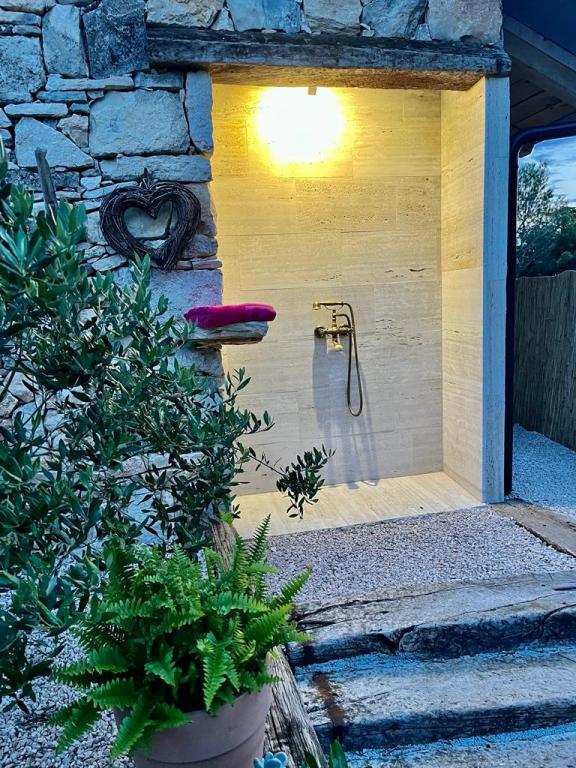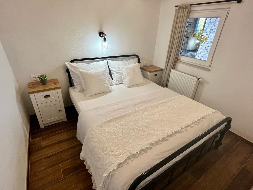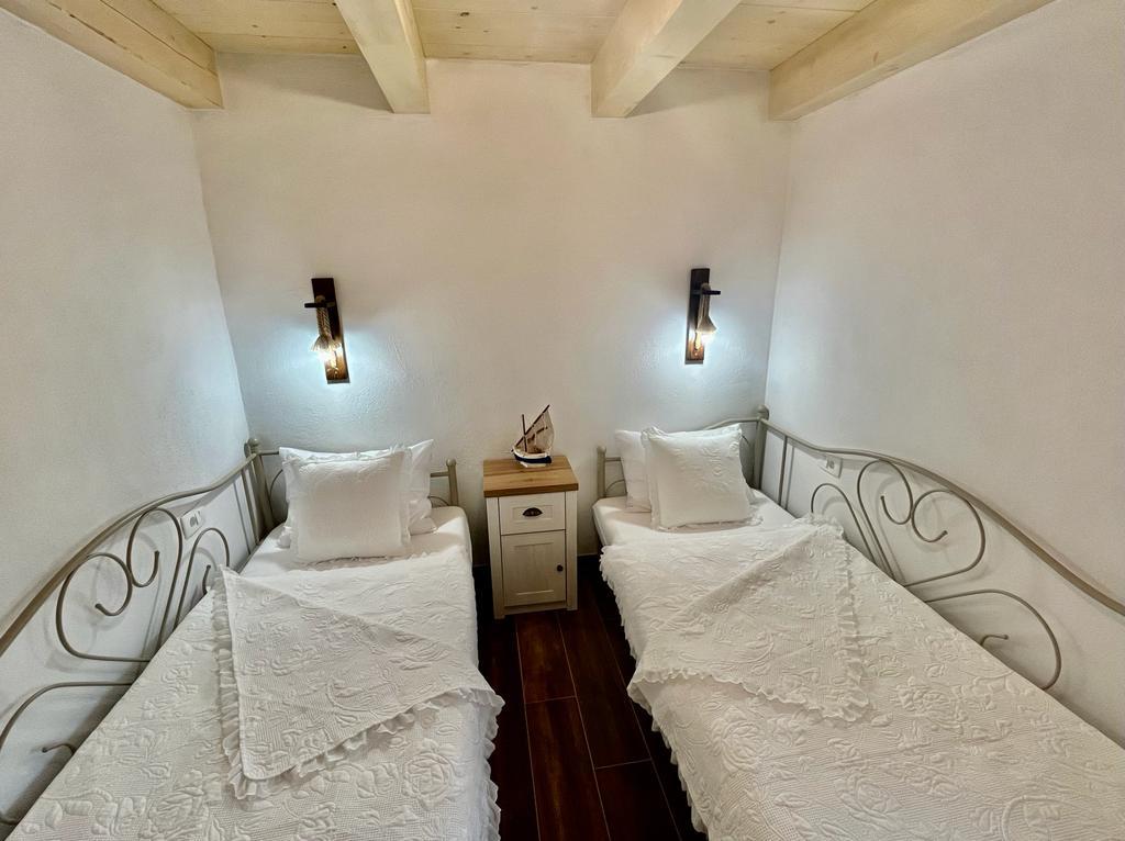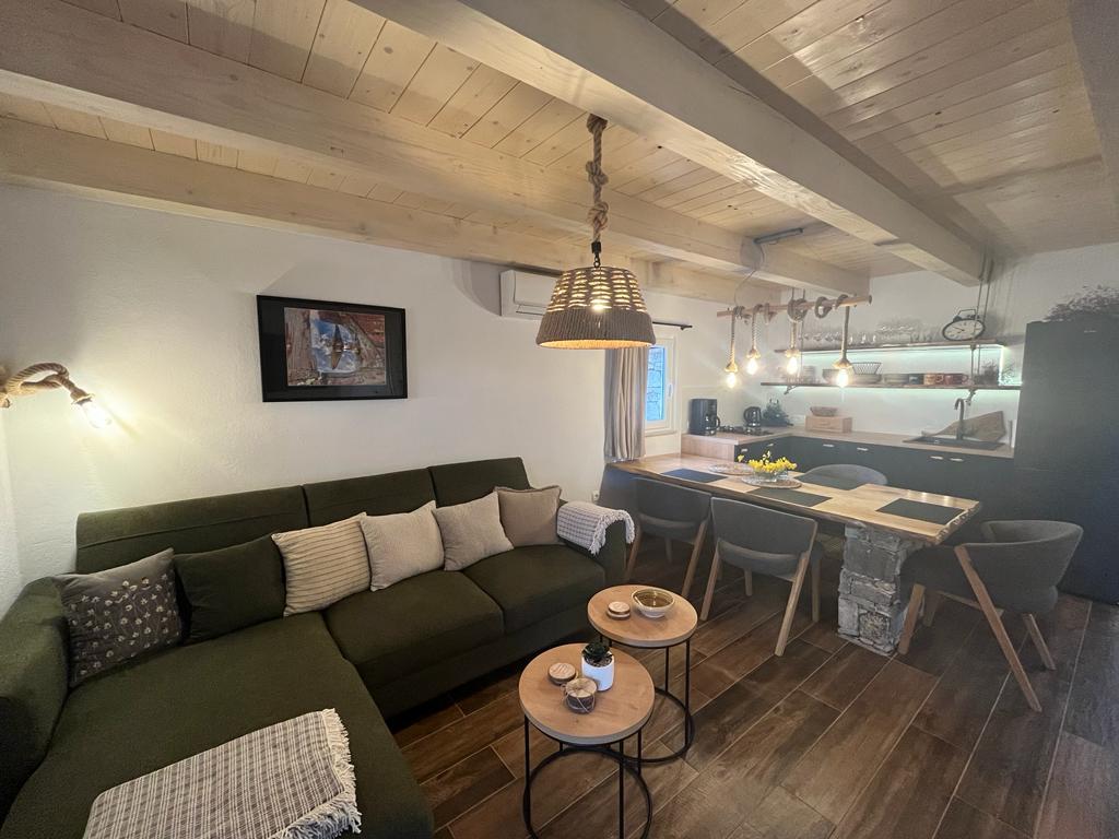 Luksusowy dom na odludziu w gaju oliwnym, tuż nad morzem. Zapewniamy niezapomnianą atmosferę Robinsona oraz wysokiej jakości zakwaterowanie. Dojazd do osiedla jest możliwy samochodem. Zapewniono więcej miejsc parkingowych. Oferujemy duże jacuzzi, zewnętrzne meble ogrodowe, leżaki, huśtawki, duży kamienny grill, prysznic na zewnątrz. Obiekt jest w pełni wyposażony do komfortowego pobytu, kuchnia ze wszystkimi sprzętami AGD (kuchenka gazowa, lodówka, zamrażarka, zmywarka, ekspres do kawy, czajnik... Wi-fi, internet, telewizja satelitarna. Pomieszczenie jest klimatyzowane i posiada centralny ogrzewanie, które pozwala przebywać nawet w okresie zimowym. W łazience znajduje się przestronna kabina prysznicowa oraz pralka i inne wyposażenie.