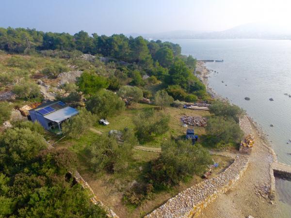 Czy masz dość zatłoczonych plaż? Szukasz spokoju i natury? Szukasz czegoś innego? Oferujemy niemal prywatne wrażenia na wyspie! Mały drewniany domek, dla dwóch osób lub pary z małym dzieckiem, na wakacje letnie. Miejsce, w którym można cieszyć się spokojem i naturą, w gaju oliwnym o powierzchni 800 m2, niemal jedynym na wyspie. Minimalny czas pobytu wynosi 7 dni. Dom posiada własną plażę, kuchnię, grill i przystań. Dom posiada dostęp do wody pitnej i prądu (energia solarna). Jest toaleta. Prysznic jest na zewnątrz. W pobliżu (300 metrów) znajduje się miasteczko Murter, do którego można dopłynąć łodzią w około 10 minut.