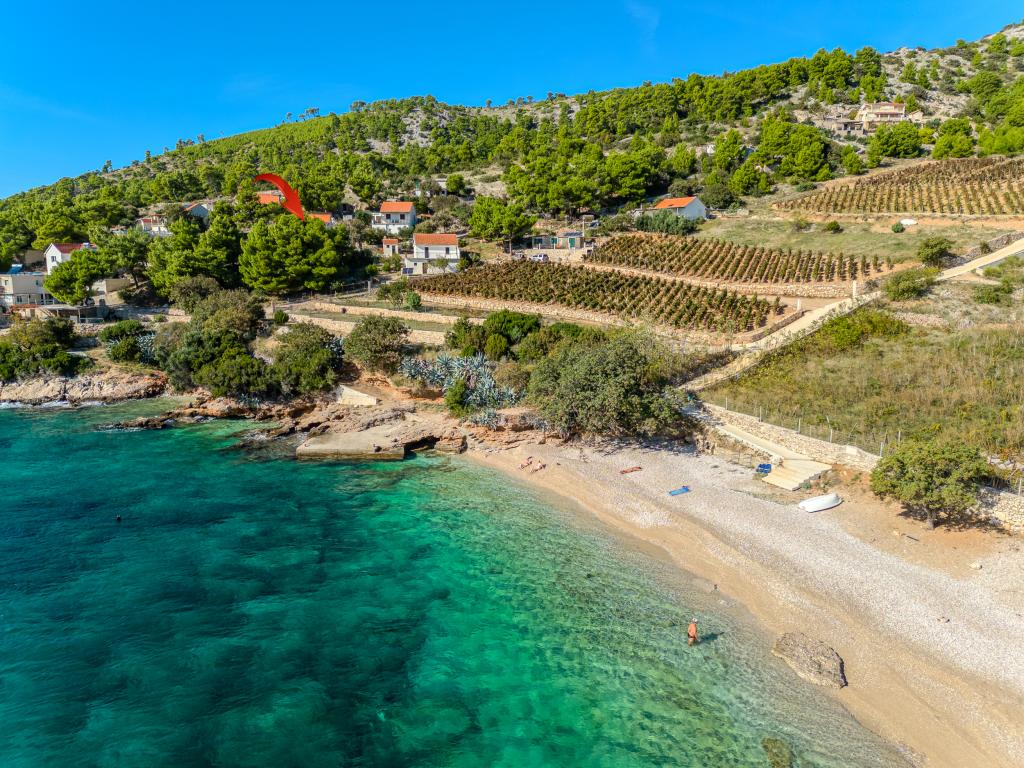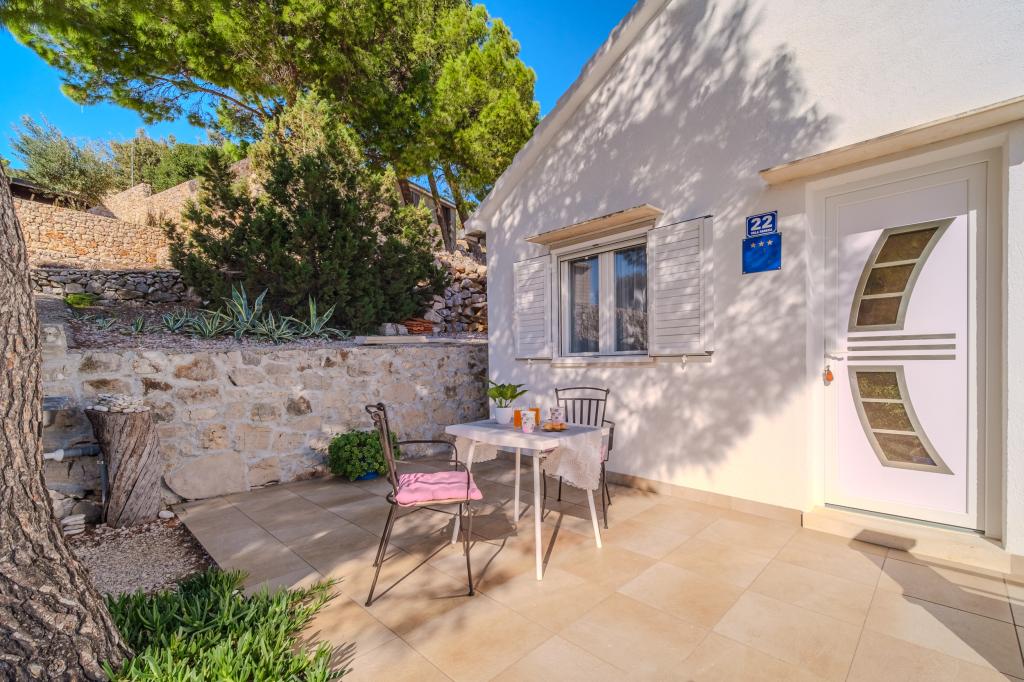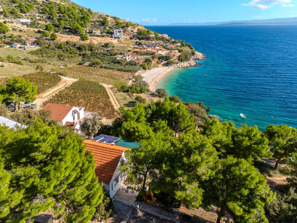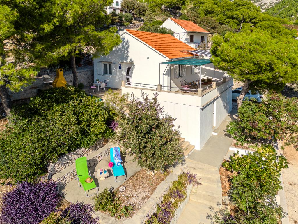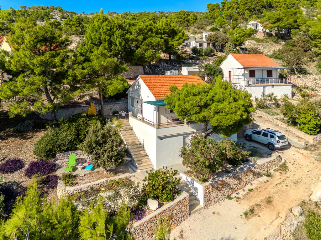 Twój spokój i przyjemność znajdziesz w spokojnym otoczeniu, zielonym krajobrazie, czystym morzu i podwodnych głębinach, które uczynią Twoje wakacje niezapomnianym przeżyciem. Dom położony jest w cichej zatoce w sosnowym lesie, 80 metrów od plaży. Z przestronnego tarasu można zobaczyć długą żwirową plażę, morze i wyspę Hvar. Dom ma dwie sypialnie, kuchnię z jadalnią, toaletę z prysznicem i ciepłą wodą oraz taras z meblami do siedzenia i grillem. Dom jest wyposażony w elektrownię słoneczną 220 V, 500 W. Ostatnią częścią drogi do domu jest droga makadamiczna o długości 1, 1 km. Zrelaksuj się w naszym mieszkaniu Eddie Robinson, z dala od tłumów i hałasu.