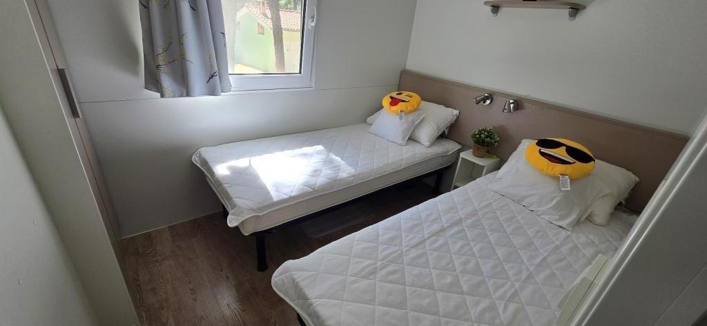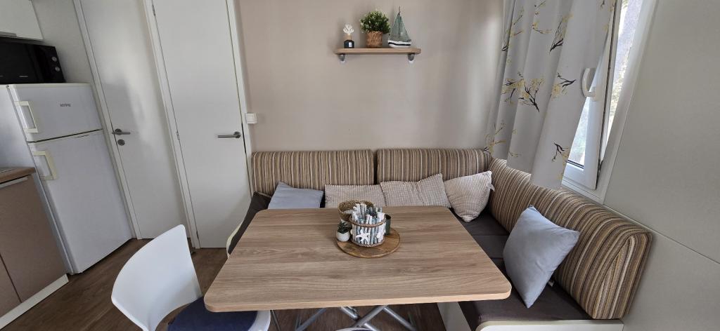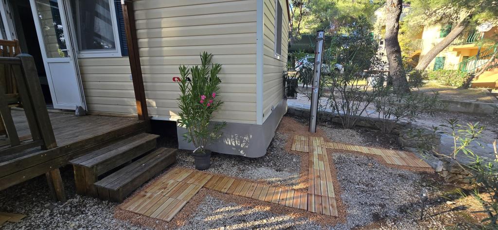 Lato nadeszło. Zarezerwuj termin na 2025 rok. Domek mobilny Vomer Apartament przy plaży W pełni wyposażony dom mobilny na kempingu Kozarice Plaża Pakoštane 50 m Przyjemny cień nawet przy najsilniejszym słońcu. 4+1 osób 32 m2 + taras 10 m2 Sypialnia 1 1 łóżko małżeńskie Sypialnia 2 2 łóżka pojedyncze Salon (rozkładana sofa) 2 łazienki prysznic zewnętrzny, TV Bezpłatny parking (bezpośrednio przy domu) Bezpłatne WiFi (szybki internet A1) Klimatyzacja Grill Pościel, ręczniki Kuchnia wyposażona jest w płytę indukcyjną, lodówkę z zamrażarką, mikrofalówkę, toster, czajnik, naczynia... Na tarasie czeka na Państwa miejsce do relaksu na wygodnych leżakach. Na terenie kempingu znajduje się park, a w pobliżu znajdują się pralka i suszarka. Restauracja i kawiarnia znajdują się na terenie obozu, kilka minut spacerem. Blisko miasta (3 min pieszo), promenady, restauracji, kawiarni, apteki, sklepów,