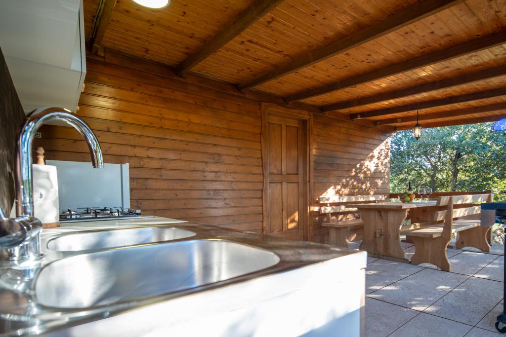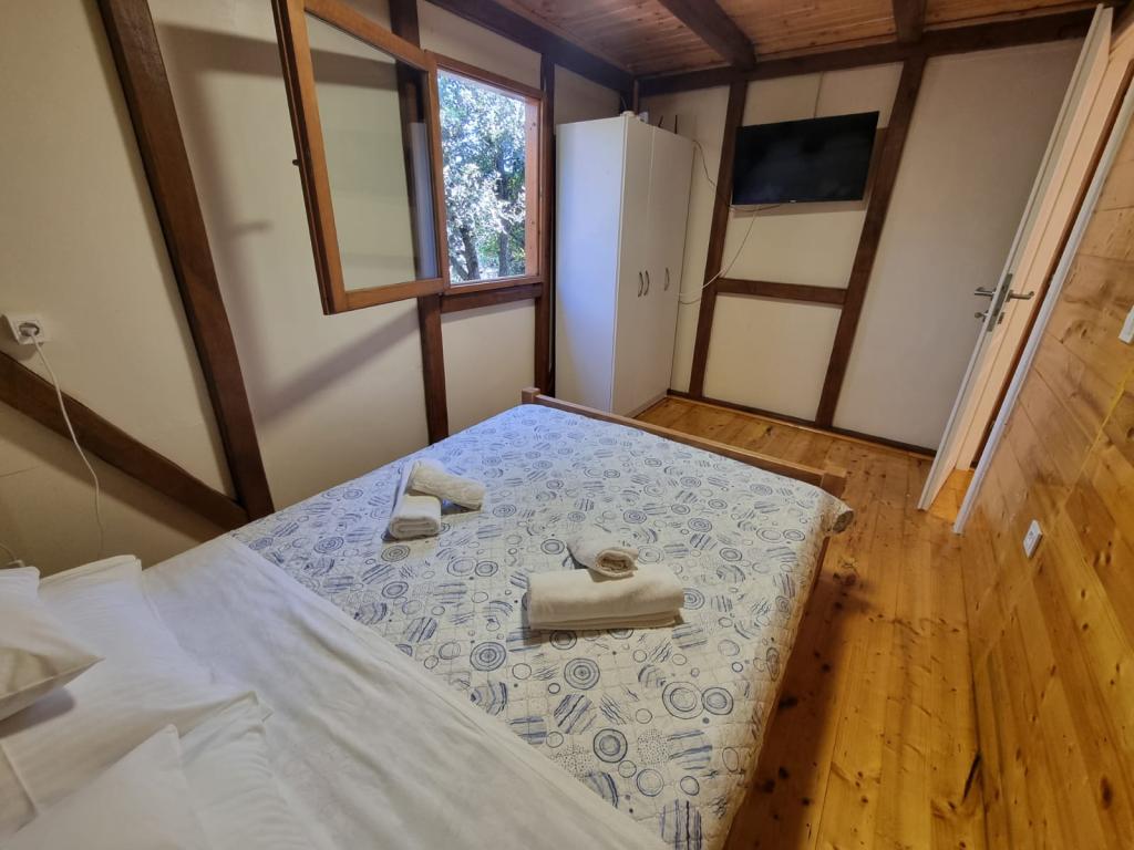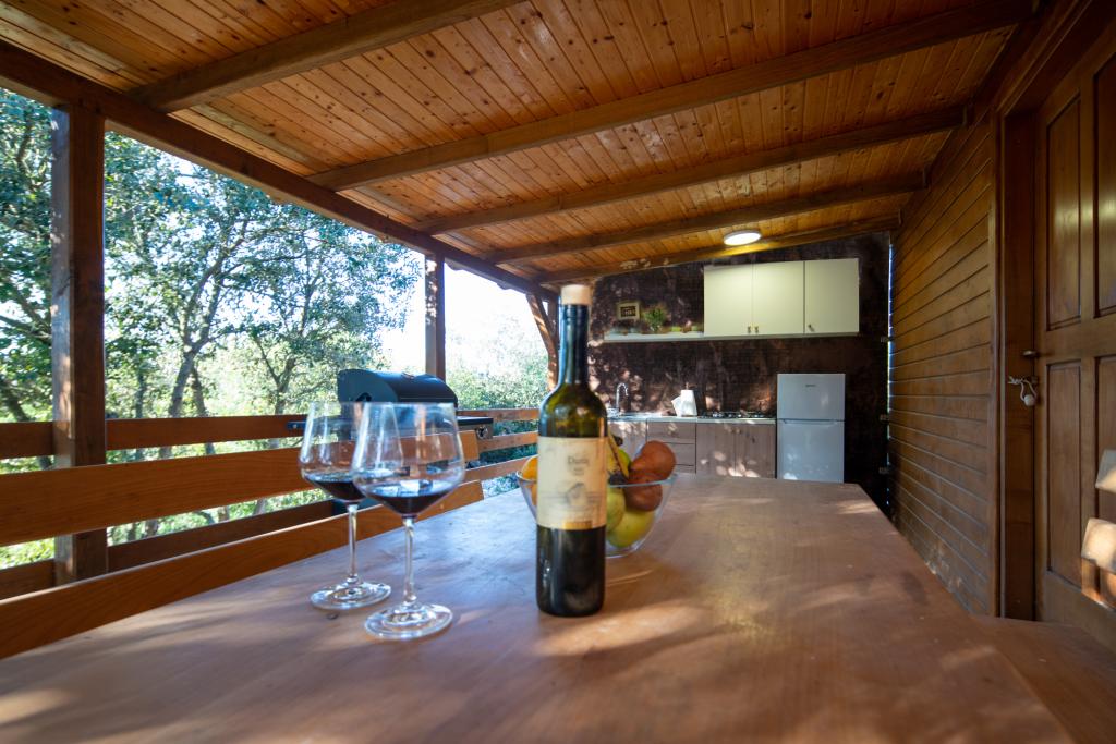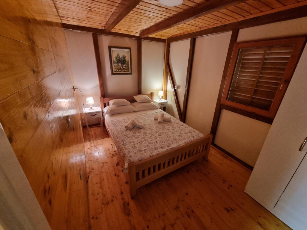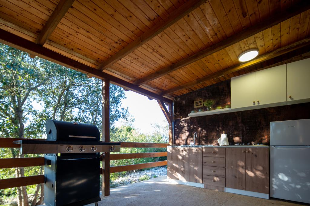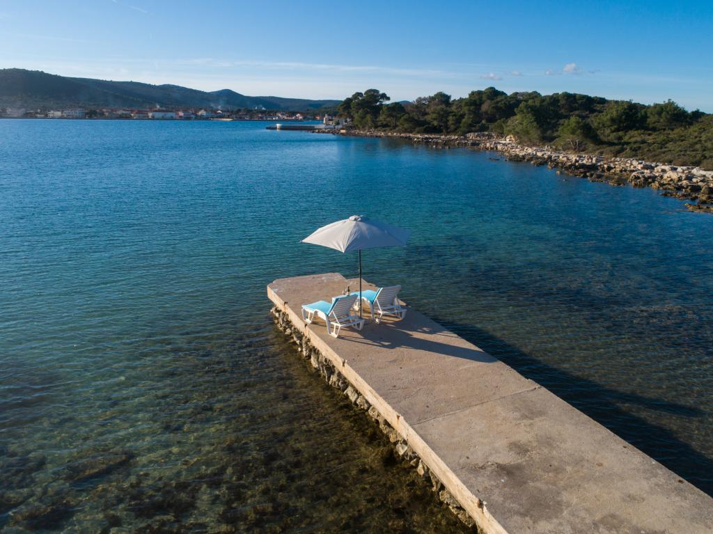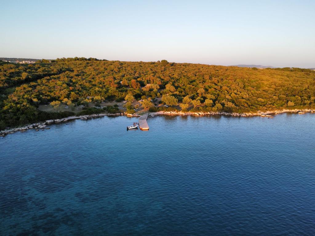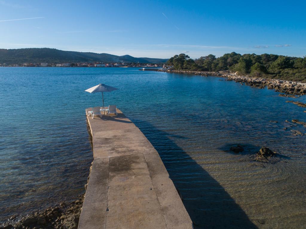 Nowo wybudowany drewniany dom w odosobnionym miejscu na wyspie Babca, do którego można dotrzeć z miejscowości Pašman na wyspie o tej samej nazwie. Znajduje się na ponad 10 000 m2 prywatnej działki i ma 25 m2 powierzchni wewnętrznej, w której znajdują się dwa podwójne łóżka w dwóch pokojach o wymiarach 140x200 cm oraz łazienka. Kuchnia i stół znajdują się na zewnętrznej zadaszonej powierzchni 15m2. W jednym pokoju jest telewizor. W domu jest internet wi-fi.