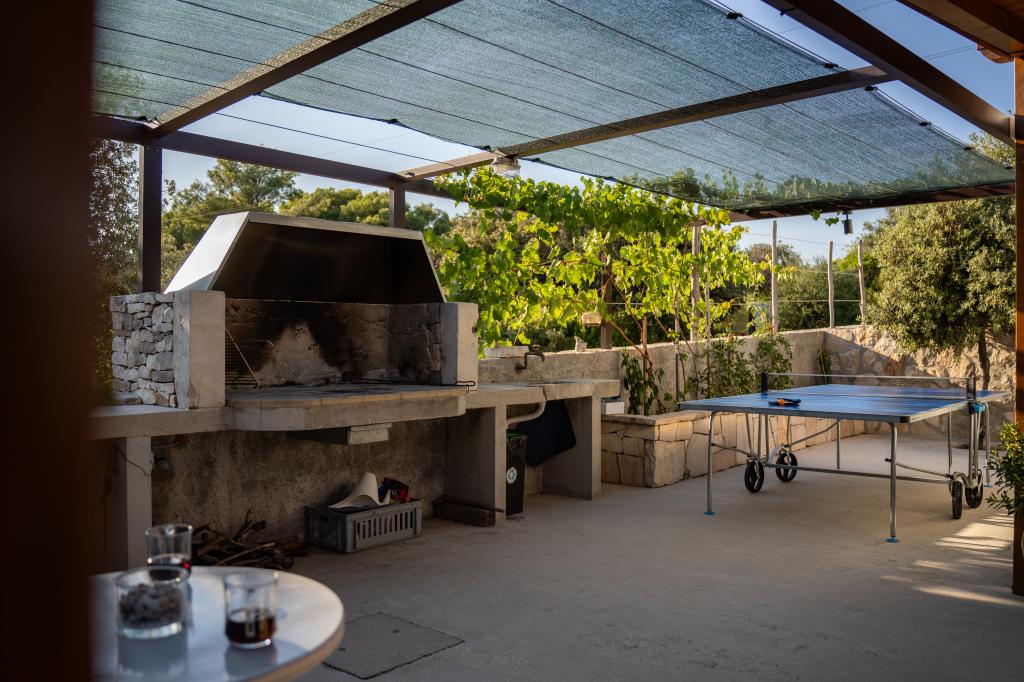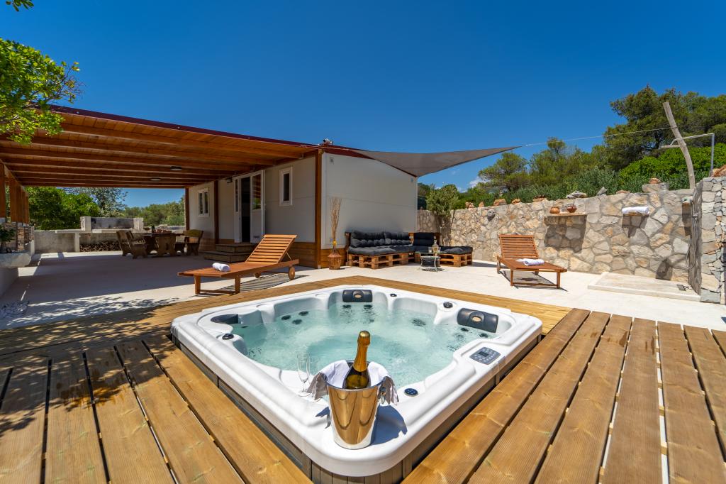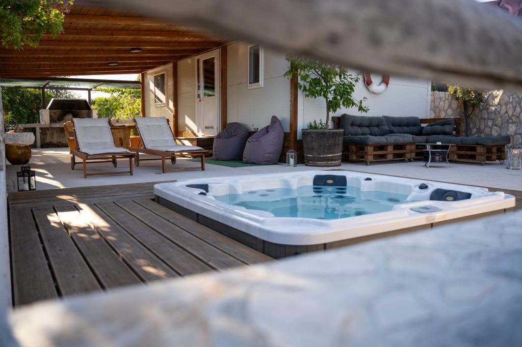 Dom Robinson Bawa to idealne miejsce na ucieczkę od codzienności. Otoczony gajami oliwnymi, kamieniem z wyspy Brač i zapachem morza, oferuje idealną okazję do delektowania się każdą chwilą. Zaledwie 1,5 km od autentycznego miasta Sumartin, oferuje pełną prywatność, a jednocześnie wszystkie niezbędne usługi i udogodnienia są w zasięgu ręki. Przyjedź i powitaj poranek widokiem na góry Biokovo i słoneczny Hvar z własnego jacuzzi. Zrelaksuj się na pobliskich plażach i podziwiaj zachody słońca w gronie bliskich. Odkryj niezapomniane wrażenia – wakacje, jakich nigdy wcześniej nie doświadczyłeś! Oferujemy: bezpłatny parking, jacuzzi z widokiem, kącik relaksacyjny, zewnętrzny prysznic z ciepłą wodą, jadalnię, grill z niezbędnym wyposażeniem, salon (Wi-Fi, telewizor i wentylator sufitowy), kuchnię (kuchenka, zlew z ciepłą wodą, lodówka, zamrażarka, ekspres do kawy Nespresso, przyprawy...), 2 sypialnie i 2 łazienki (pościel i ręczniki w cenie). We wszystkich oknach znajdują się rolety i moskitiery.