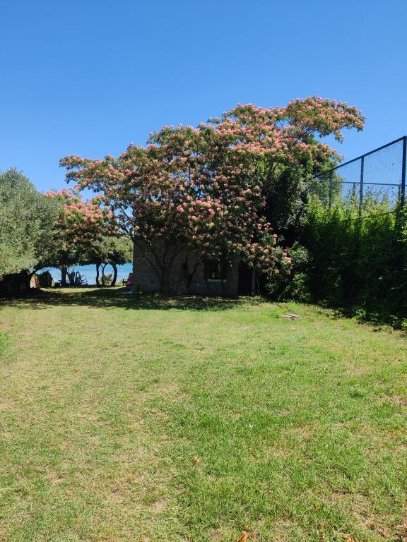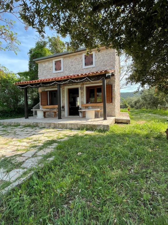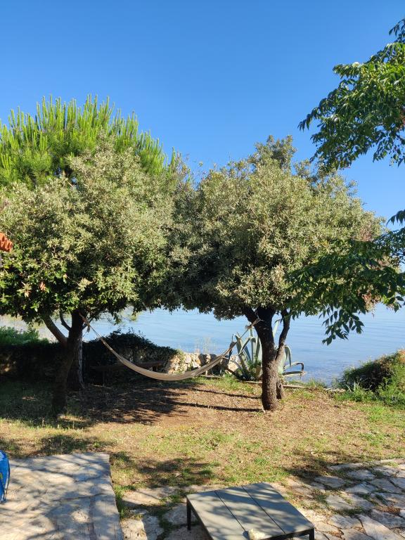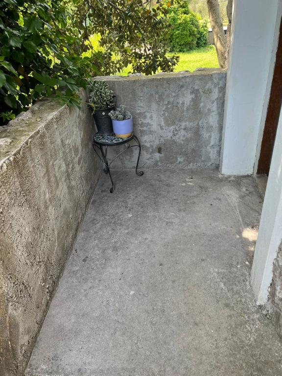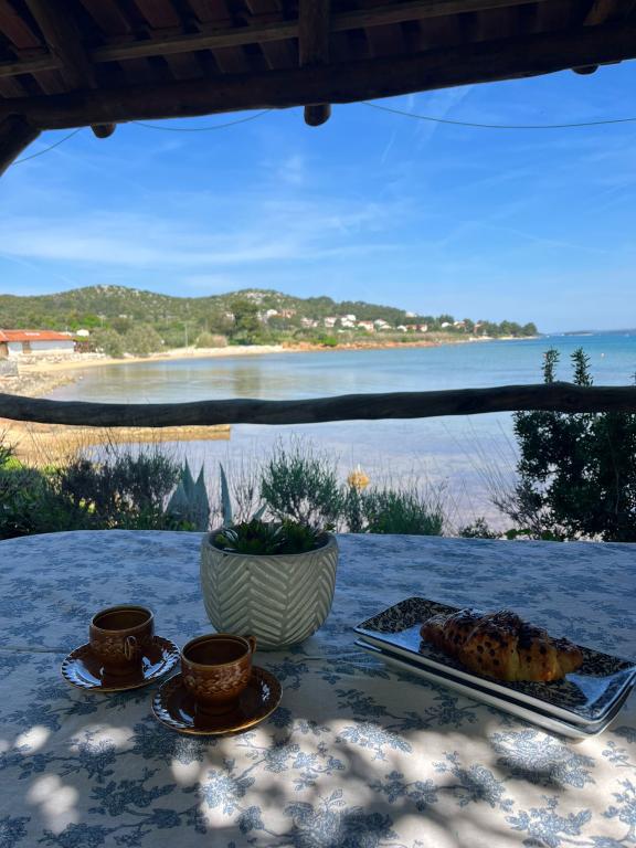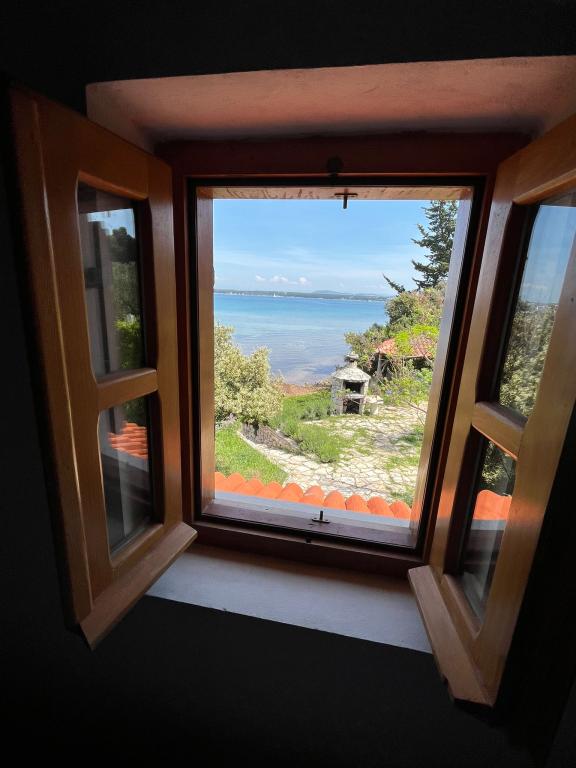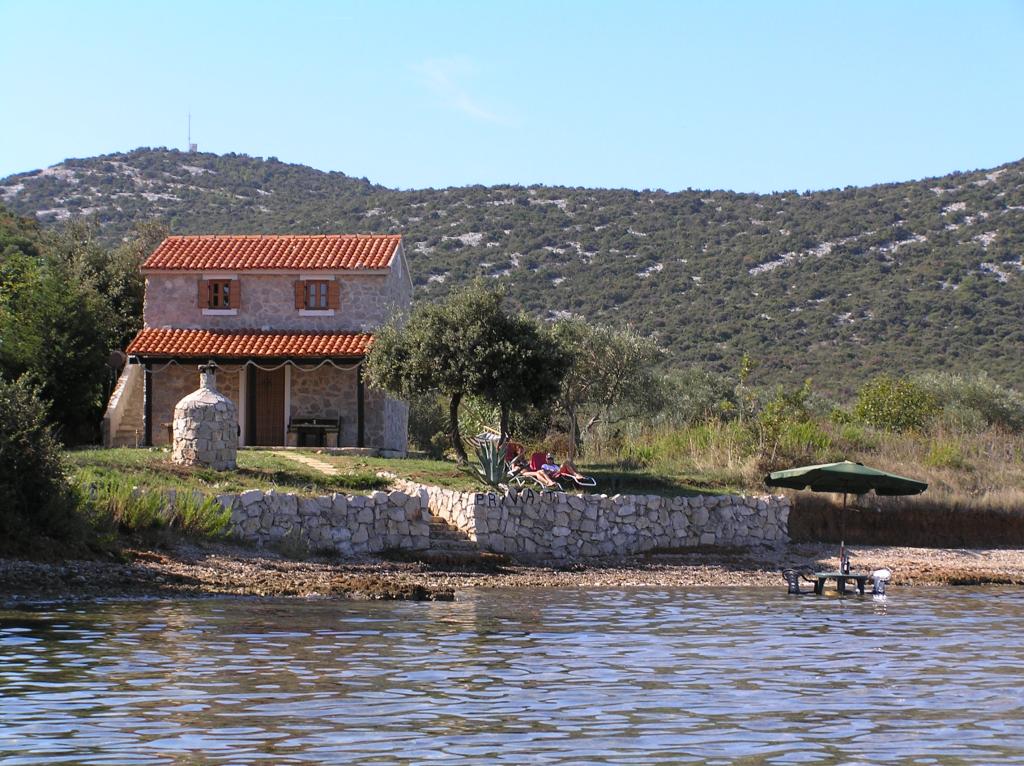 Dom położony jest na południe od centrum miejscowości Tkon na wyspie Pašman, tuż przy drodze. Można wjechać przez bramę i zaparkować samochód tuż obok domu. Obok domu znajduje się kemping dla nudystów, ukryty przed wzrokiem pnączy. Pierwszy budynek po drugiej stronie jest oddalony o 50 metrów. Dom znajduje się 10 metrów od morza i piaszczystej plaży. Głębokość morza wynosi około pół metra, a dno jest piaszczyste, co jest idealne dla dzieci. Przed domem znajduje się zadaszony, drewniany taras ze stołem i ławkami, gdzie można cieszyć się cieniem i zjeść lunch, a tuż obok znajduje się kamienny grill. Przed domem znajduje się również zadaszenie zapewniające cień. Na tarasie znajduje się prysznic na świeżym powietrzu.
