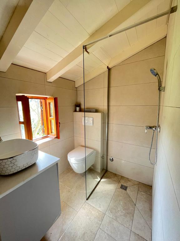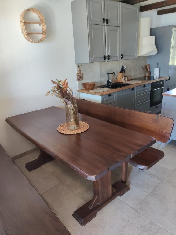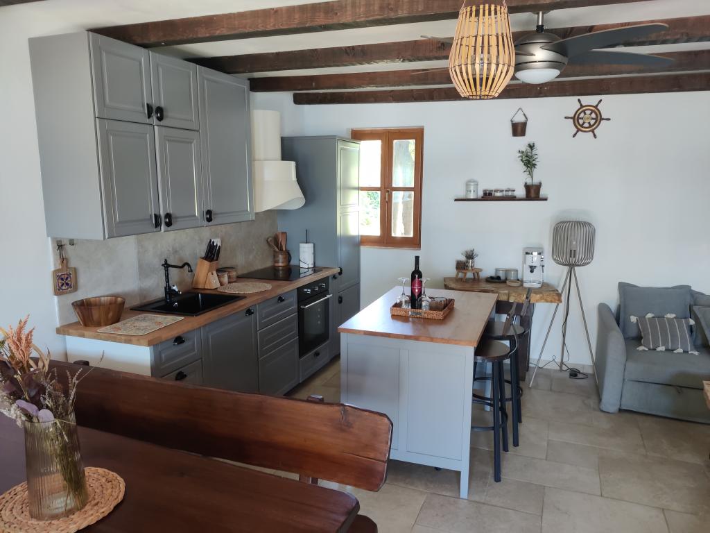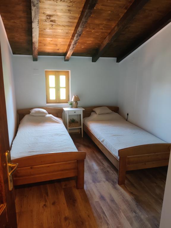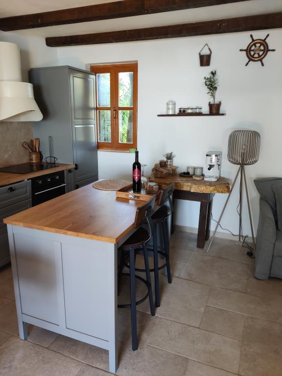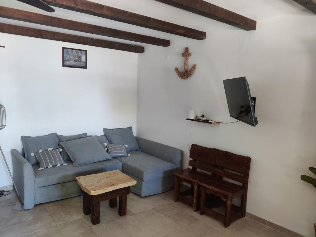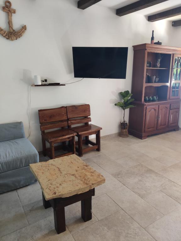 Parter domu składa się z jednej przestrzeni, w której znajduje się nowa, nowoczesna kuchnia z płytą indukcyjną, piekarnikiem, zmywarką i lodówką. Sprzęty kuchenne obejmują czajnik i ekspres do kawy. W salonie znajduje się rozkładana sofa, która może służyć jako dodatkowe łóżko, mały stolik kawowy, stara, solidna drewniana półka oraz telewizor. Telewizor jest wyposażony w kanały satelitarne, a do dyspozycji Gości jest również prywatne Wi-Fi. Tuż przy oknie znajduje się solidny stół i ławy, przy których można zjeść posiłek i podziwiać piękny widok na Biograd na Moru. Na parterze domu (na poddaszu) znajdują się dwie sypialnie i toaleta. Jedna z nich ma łóżko podwójne, a druga dwa pojedyncze. Klimatyzacja na parterze zapewnia komfortowy sen. Za domem znajduje się przestronny ogród ogrodzony