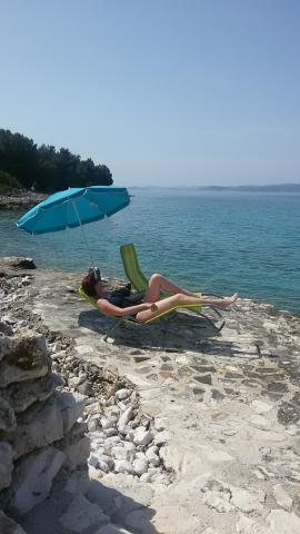 Byliśmy 2 rodziny i spędziliśmy tam niewiarygodne tydzień. Super miejsce dla każdego, kto szuka ciszy i prywatności na plaży. Ładne pokoje, przestronna i dobrze wyposażona kuchnia, ale większość czasu spędziliśmy na dużym cieniu taras z pięknym widokiem na zatokę. Łatwy dostęp do wody, bez butów wymagane zaletą prysznic na zewnątrz których używane zamiast zwykłego łazienki środka. To nie jest łatwe do przenoszenia wszystkich pracowników z samochodu do domu, trzeba przejść kilka razy od punktu, gdzie zaparkować samochód do domu na wąskim, skalistym szlaku, liczba pętli zależy od zdolności do rąk i ilości pracowników przyniosłeś, ale okazało się łatwiejszy sposób i poprosił właściciela zaparkować swoją łodzią 50m od naszych samochodów i użyć wodną przenieść torby. Myślę, że będą oferować ten nowy sposób poruszania się rzeczy dla innych gości od teraz. Właściciel jest bardzo pomocny i przyjazny, dobra Anglojęzycznych. Polecam przynieść większość żywności i ograniczenia wyjazdów do Tkon na zakup żywności, poruszając się samochodem na wyspie na kamienistych drogach nie jest bardzo wygodne. Można kupić ryby z miejscowego fishernan 2-3 razy w tygodniu.