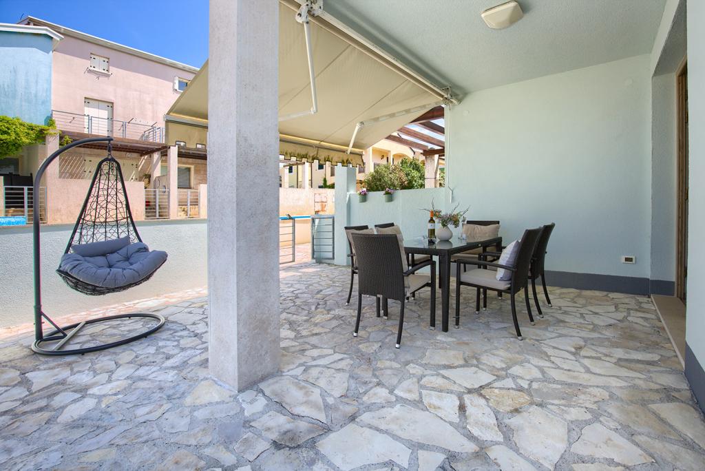 Dom szeregowy w wiosce Volme niedaleko Banjole oferuje gościom przyjemny i piękny pobyt. Obiekt wyposażony jest w wysokiej jakości meble, a każdy pokój posiada klimatyzację, co gwarantuje przyjemny pobyt w ciepłe letnie dni (3 klimatyzatory). Dom posiada dwie sypialnie dla 2 osób, dwie toalety, kuchnię z salonem, w którym znajduje się rozkładana narożna sofa, bardzo wygodna dla 1 osoby. W jednej z sypialni znajduje się rozkładane łóżeczko dziecięce. Dom posiada również ogród z grillem, z którego mogą korzystać tylko goście, a w budynku znajduje się także piękny basen, z którego korzystają także mieszkańcy okolicznych budynków, głównie weekendowi goście. Morze jest oddalone zaledwie o 300 metrów, a zaledwie 3000 metrów dalej znajduje się RT Kamenjak z najpiękniejszymi plażami na Istrii. W wiosce znajduje się wiele ścieżek rowerowych, dzięki czemu do Premantury można dotrzeć także na rowerze. Za zwierzęta domowe pobierana jest opłata dodatkowa w wysokości 60 euro za cały pobyt.
