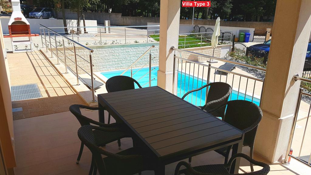 Do wyboru są 3 rodzaje willi. Wszystkie wille mają takie samo wnętrze, wystarczy wybrać typ willi 1, typ 2 lub typ 3! Willa może pomieścić do 8 plus 2 gości. W willi znajdują się 4 sypialnie, każda z własną łazienką. Zrelaksuj się w przytulnym salonie i przygotuj pyszne posiłki we w pełni wyposażonej kuchni z jadalnią. Możesz odpocząć przy prywatnym basenie, położyć się na leżakach i cieszyć się pięknem słońca. Możesz również przygotować specjały na grillu węglowym dla swoich przyjaciół i rodziny. Jeśli chcesz iść na plażę, po prostu weź ręcznik i jesteś na plaży w ciągu kilku minut spacerem, ale w odległości spaceru znajdują się również niesamowite restauracje. Willa jest klimatyzowana, posiada WiFi, prywatny parking na 3 samochody i oferuje wszystko na przyjemne wakacje.