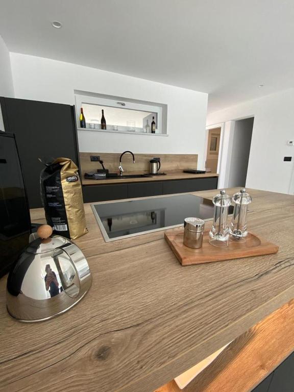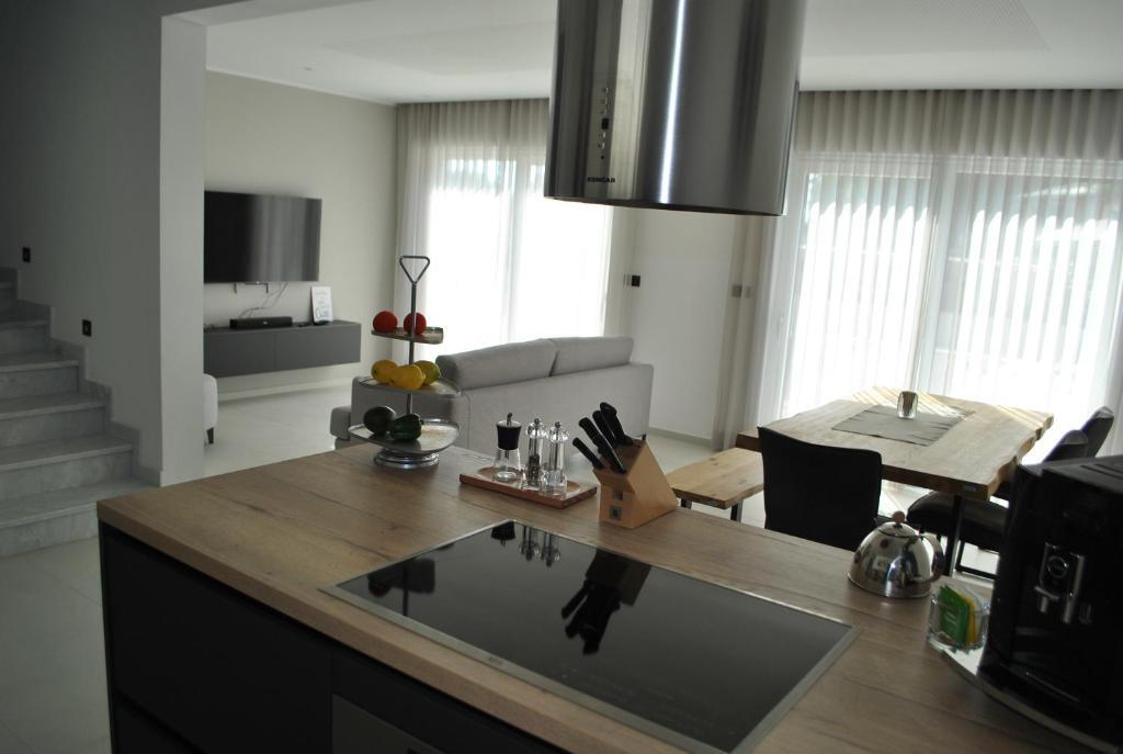Opłata jest wliczone w cenę.Wnętrze domu jest praktyczne i przestronne: trzy sypialnie, każda z łóżkiem z materacem sprężynowym i szafą do sypialni. Dwie łazienki, każda z prysznicem, toaletą i dużą umywalką (ręczniki i suszarka do włosów są na wyposażeniu). Możliwość korzystania z pralki. Rozkładana sofa (rozkładana) jest dostępna dla 2 dodatkowych łóżek. Na pierwszym piętrze znajduje się duży taras i balkon z widokiem na dwie zatoki. Na ostatnim piętrze znajduje się przestronny taras, z którego można podziwiać piękne wschody i zachody słońca. Oprócz leżaków na dachu znajduje się także prysznic zewnętrzny i umywalka. Cały dom jest wykończony i umeblowany w bardzo wysokim standardzie (nowoczesny, ekskluzywny standard niemiecki). Klimatyzacja dostępna jest we wszystkich pokojach. Ogrzewanie podłogowe jest dostępne ró