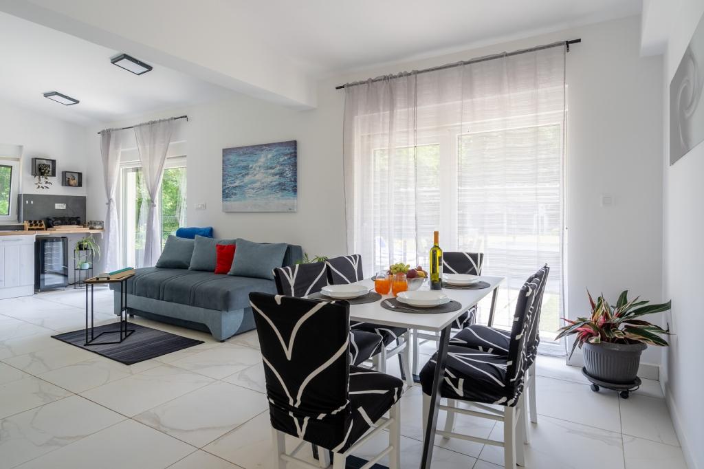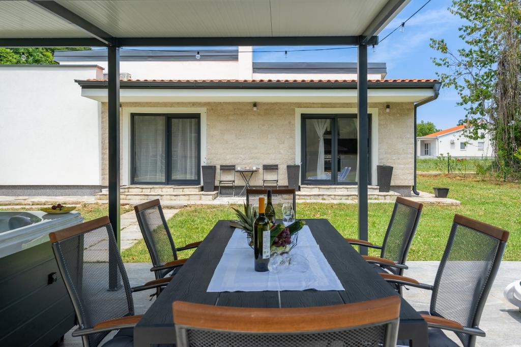 Wyobraź sobie, że budzi Cię słońce i śpiew ptaków z okolicznych drzew, podczas gdy Ty relaksujesz się i korzystasz z jacuzzi (wanny z masażem). W całkowitej prywatności usiądź wygodnie na leżaku i popijaj swoją pierwszą poranną kawę lub herbatę. Idealna lokalizacja dla gości lubiących relaks i wypoczynek w zielonej, słonecznej oazie. Zaledwie 10 minut jazdy samochodem dzieli Cię od czystych i małych plaż. Nasi goście mogą bezpłatnie korzystać z deski SUP. Piękny, nowo wybudowany dom wakacyjny z dużym ogrodem o powierzchni 1300 m2. 2 tarasy zewnętrzne, na których można cieszyć się słońcem, altana z cieniem, jacuzzi, sprzęt do badmintona, prywatny bezpłatny parking w zacienionym miejscu. Dom składa się z 3 sypialni (każdy pokój jest klimatyzowany), 2 łazienek i pralki, dużego klimatyzowanego salonu oraz wyposażonej kuchni ze zmywarką do naczyń. Obiekt oddalony jest o 20 minut od lotniska w Puli i 25 minut od rzymskiego amfiteatru w centrum Puli. Park Narodowy Brijuni i miasto Rovinj oddalone są o około 30 minut.
