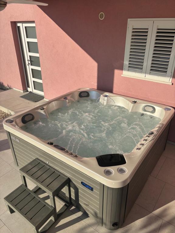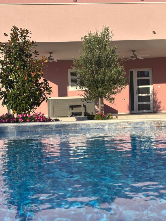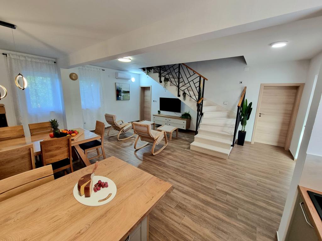 Cichy i przyjemny zakątek na Twój urlop. Znajdujemy się w małej wiosce Podlug, 6 km na południe od Benkovac, 2 km od zjazdu Benkovac z autostrady A1. Oferujemy trzy sypialnie i trzy łazienki. Na parterze znajduje się jedna sypialnia, łazienka, kuchnia i salon, a na pierwszym piętrze są dwie sypialnie, dwie łazienki i kolejny salon - bawialnia. W obiekcie znajduje się również sala kominkowa. Obiekt dysponuje również odkrytym basenem o wymiarach 8 x 4 m.
