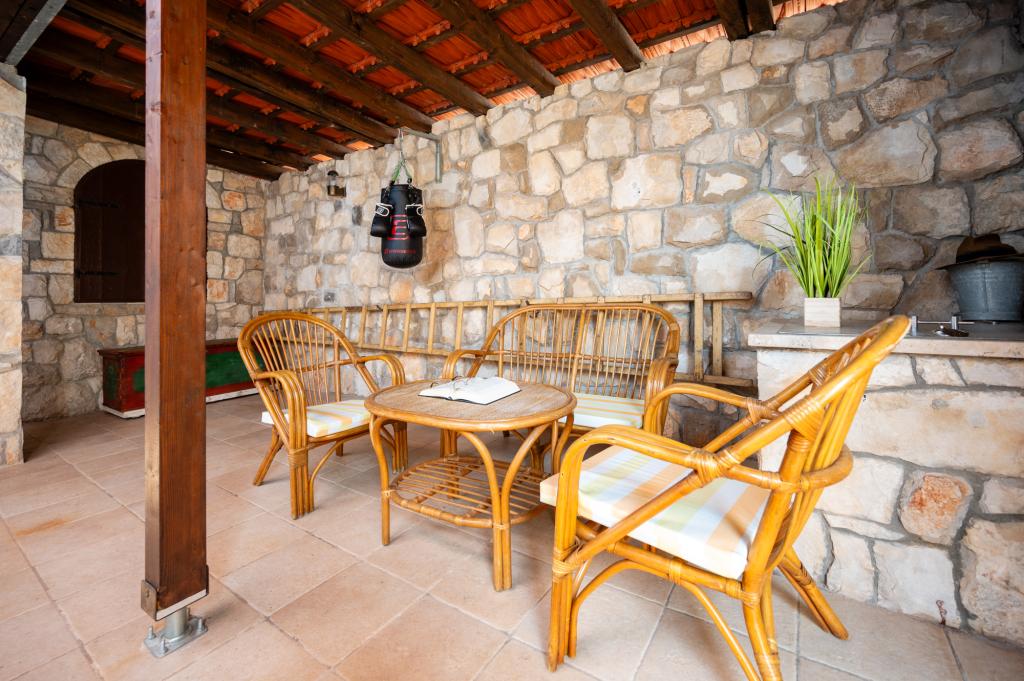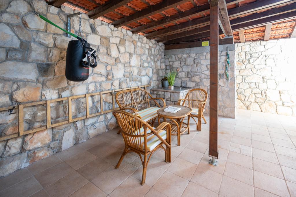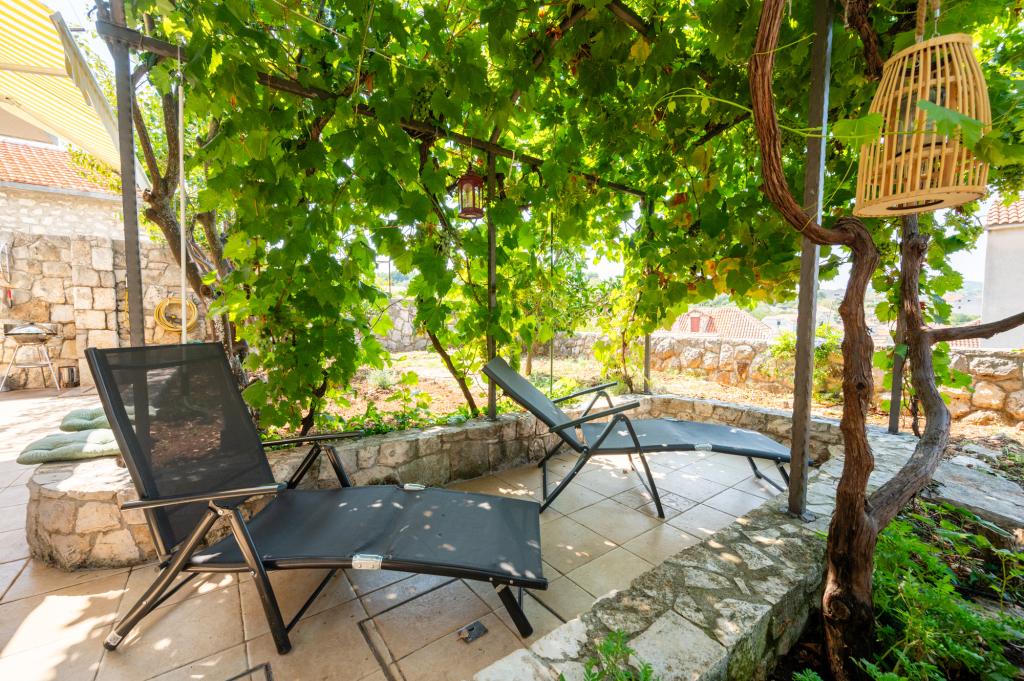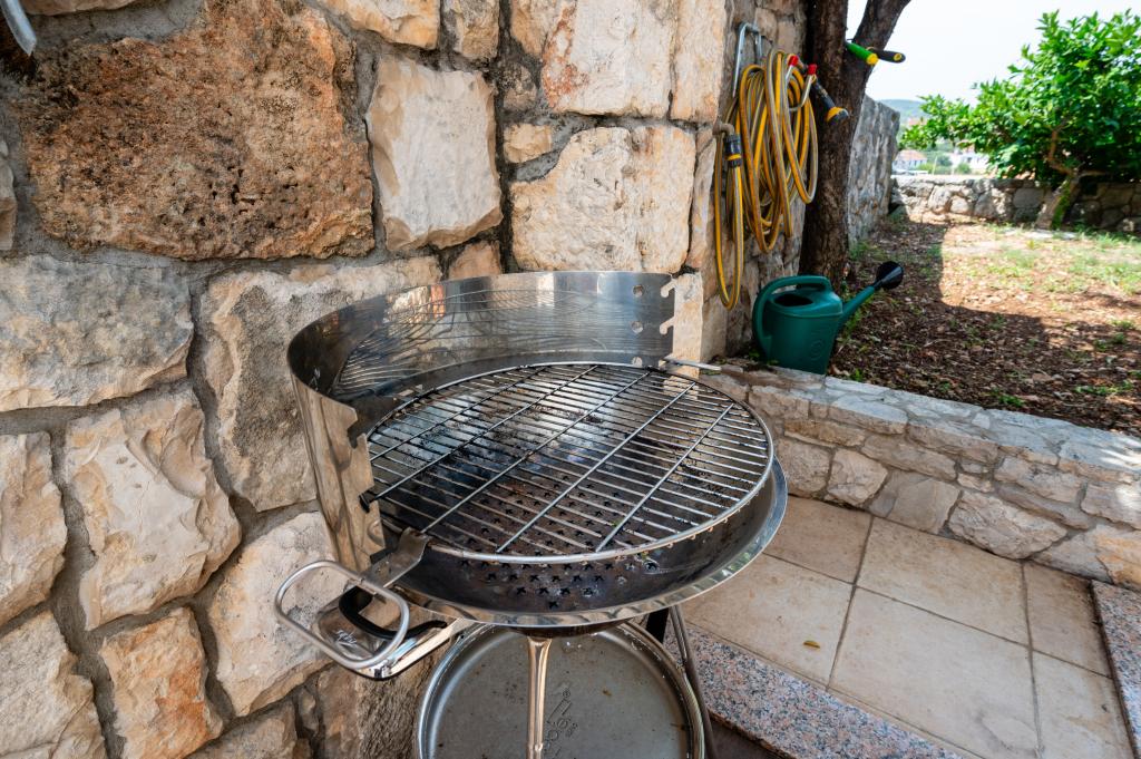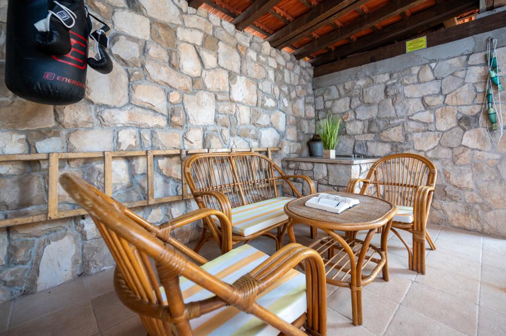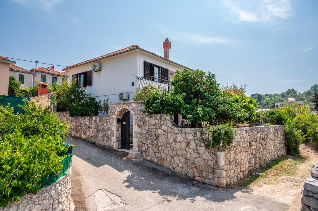 Dom wakacyjny Ines położony jest w sercu malowniczego miasteczka Drvenik Veliki – spokojnej wyspy w pobliżu Trogiru i lotniska w Splicie, z którymi łączy go regularna linia promowa. Ten urokliwy dom oferuje pełen spokój i prywatność dzięki wysokim murom, które go otaczają, a z ogrodu roztacza się piękny widok na zatokę. To idealne miejsce dla każdego, kto szuka ucieczki od codzienności i pragnie cieszyć się ciszą, słońcem i morską bryzą. Przestronny ogród sprzyja relaksu i odprężeniu – idealne miejsce na poranną kawę, popołudniowe opalanie lub wieczorne spotkania towarzyskie pod gwiazdami. Najbliższa, betonowa plaża znajduje się tuż obok domu, a naturalne piękno, takie jak słynna „Błękitna Laguna”, można odkrywać po wytyczonych drogach, idealnych do jazdy rowerem lub samochodem. Wyspa Drvenik Veliki emanuje autentyczną śródziemnomorską atmosferą, czystym powietrzem i dziewiczą przyrodą, bez tłumów i stresu – idealne miejsce na regenerację sił.