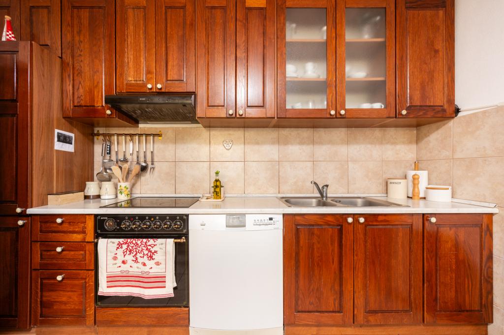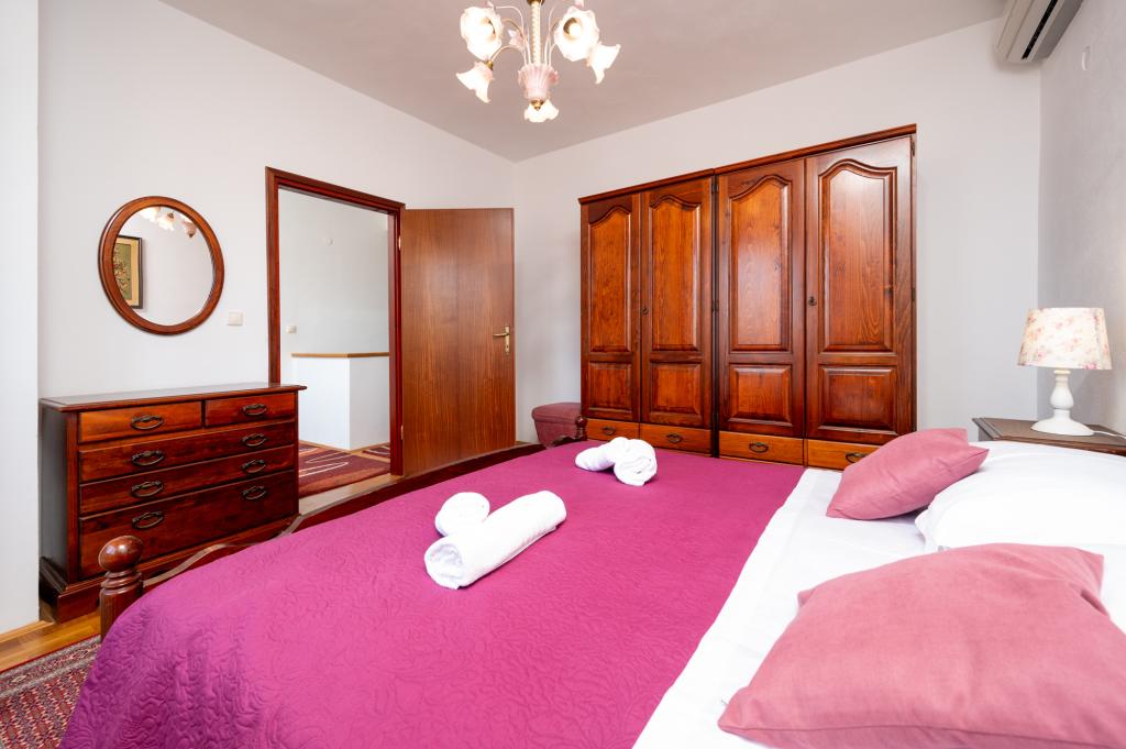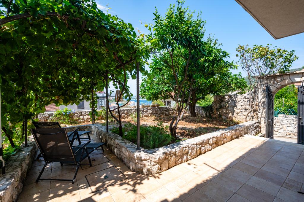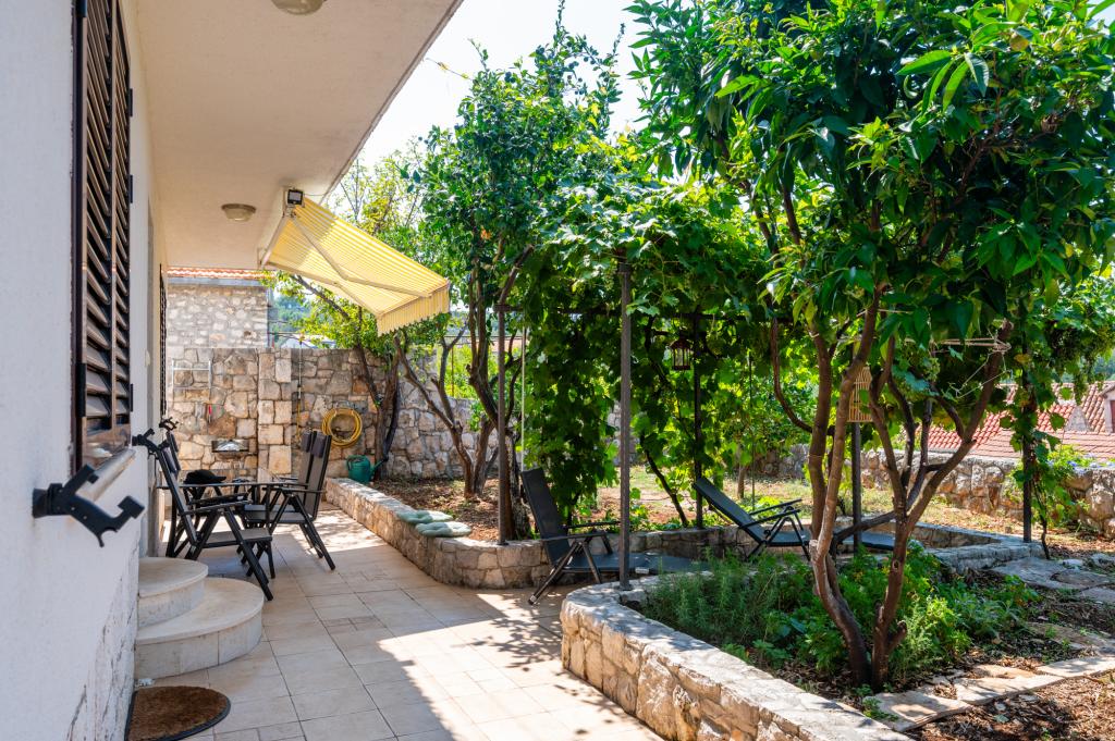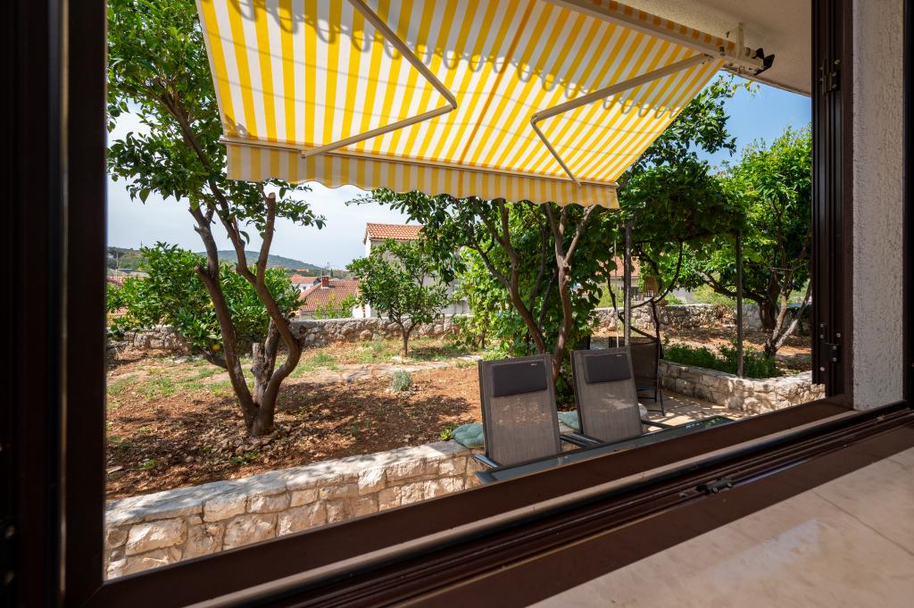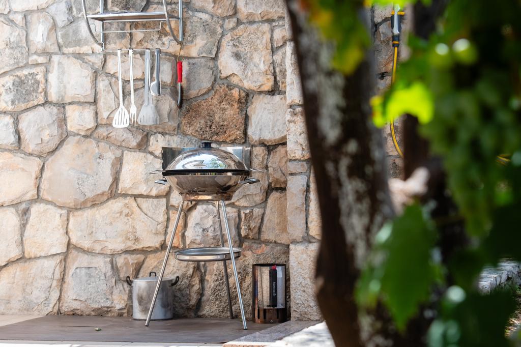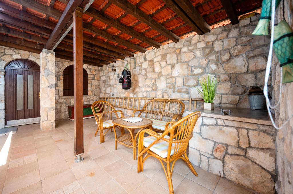 Dom wakacyjny Ines położony jest w sercu malowniczego miasteczka Drvenik Veliki – spokojnej wyspy w pobliżu Trogiru i lotniska w Splicie, z którymi łączy go regularna linia promowa. Ten urokliwy dom oferuje pełen spokój i prywatność dzięki wysokim murom, które go otaczają, a z ogrodu roztacza się piękny widok na zatokę. To idealne miejsce dla każdego, kto szuka ucieczki od codzienności i pragnie cieszyć się ciszą, słońcem i morską bryzą. Przestronny ogród sprzyja relaksu i odprężeniu – idealne miejsce na poranną kawę, popołudniowe opalanie lub wieczorne spotkania towarzyskie pod gwiazdami. Najbliższa, betonowa plaża znajduje się tuż obok domu, a naturalne piękno, takie jak słynna „Błękitna Laguna”, można odkrywać po wytyczonych drogach, idealnych do jazdy rowerem lub samochodem. Wyspa Drvenik Veliki emanuje autentyczną śródziemnomorską atmosferą, czystym powietrzem i dziewiczą przyrodą, bez tłumów i stresu – idealne miejsce na regenerację sił.