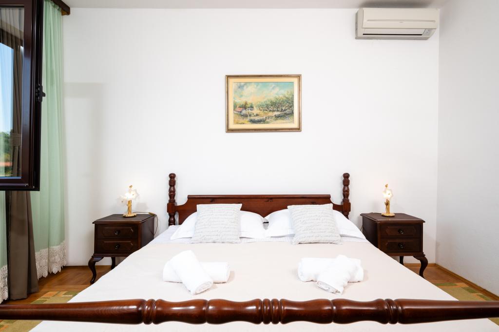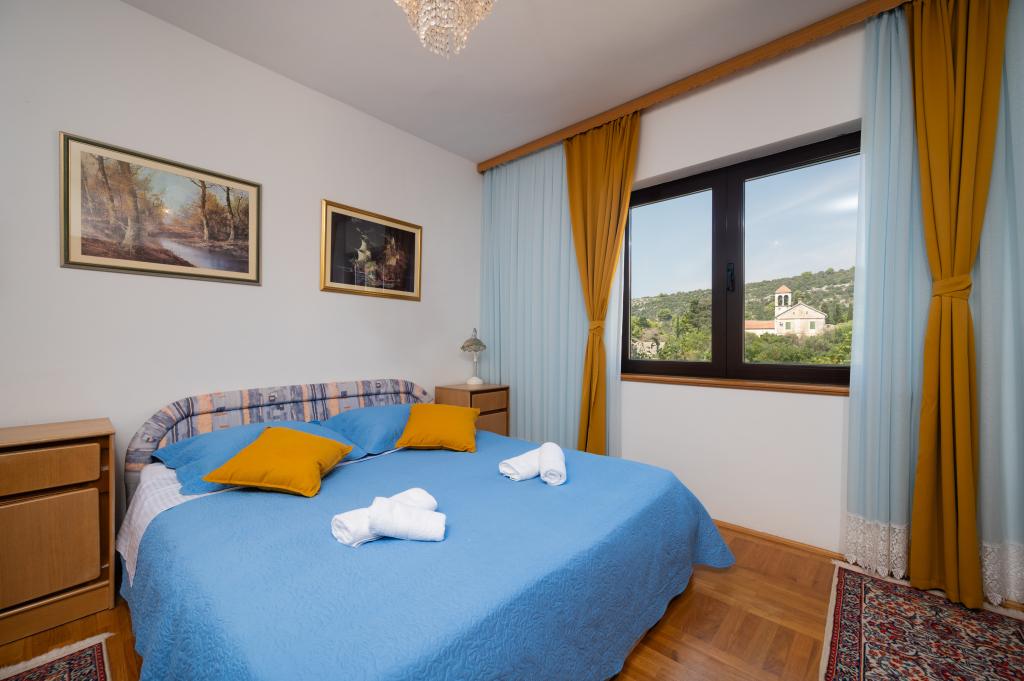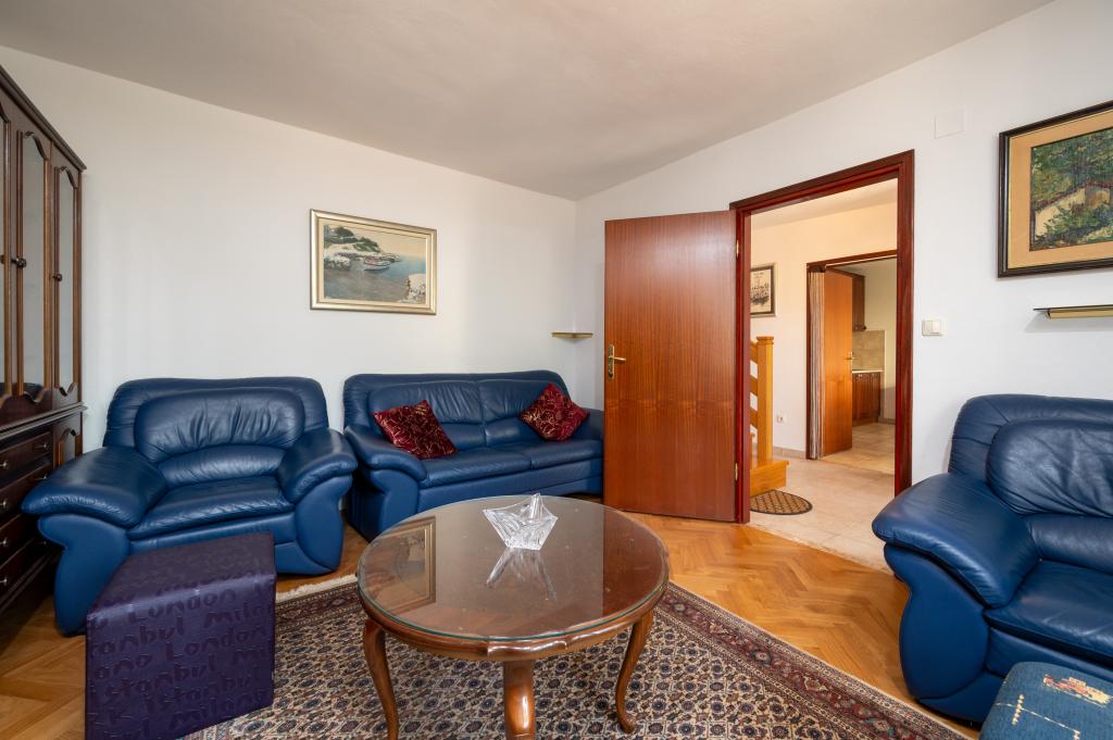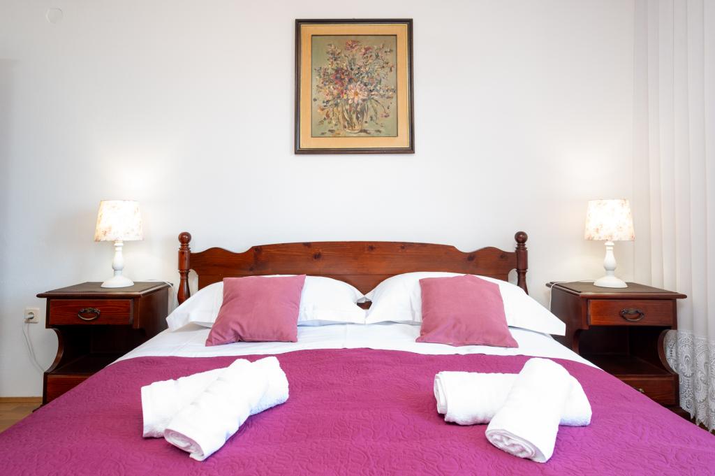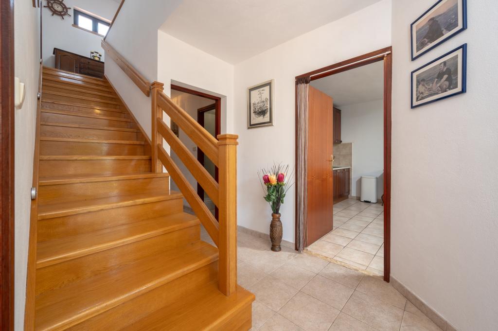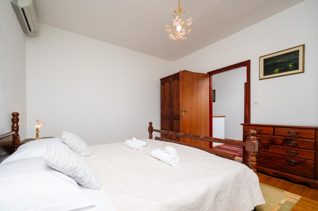 Dom wakacyjny Ines położony jest w sercu malowniczego miasteczka Drvenik Veliki – spokojnej wyspy w pobliżu Trogiru i lotniska w Splicie, z którymi łączy go regularna linia promowa. Ten urokliwy dom oferuje pełen spokój i prywatność dzięki wysokim murom, które go otaczają, a z ogrodu roztacza się piękny widok na zatokę. To idealne miejsce dla każdego, kto szuka ucieczki od codzienności i pragnie cieszyć się ciszą, słońcem i morską bryzą. Przestronny ogród sprzyja relaksu i odprężeniu – idealne miejsce na poranną kawę, popołudniowe opalanie lub wieczorne spotkania towarzyskie pod gwiazdami. Najbliższa, betonowa plaża znajduje się tuż obok domu, a naturalne piękno, takie jak słynna „Błękitna Laguna”, można odkrywać po wytyczonych drogach, idealnych do jazdy rowerem lub samochodem. Wyspa Drvenik Veliki emanuje autentyczną śródziemnomorską atmosferą, czystym powietrzem i dziewiczą przyrodą, bez tłumów i stresu – idealne miejsce na regenerację sił.