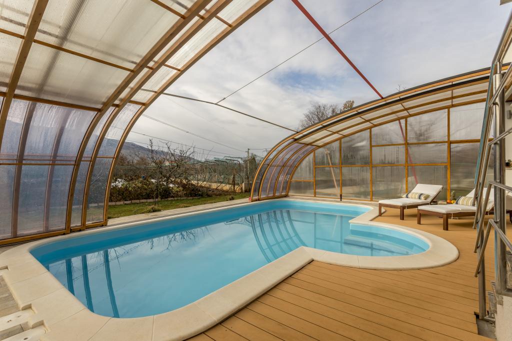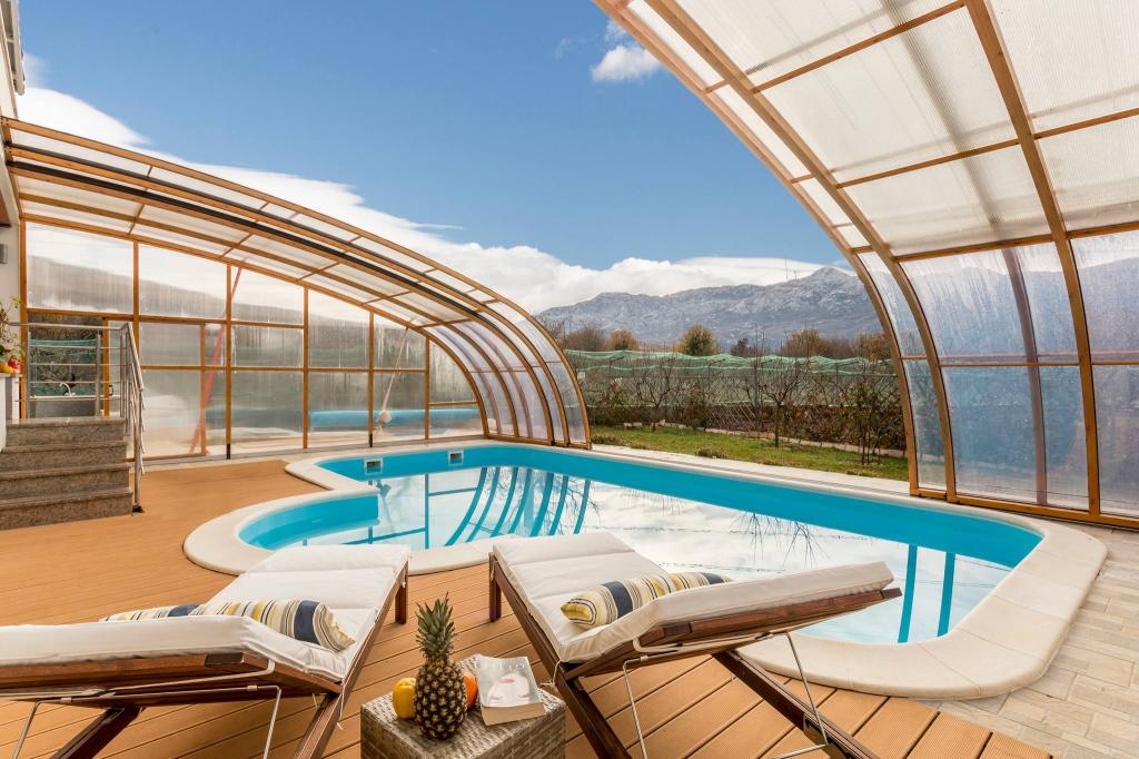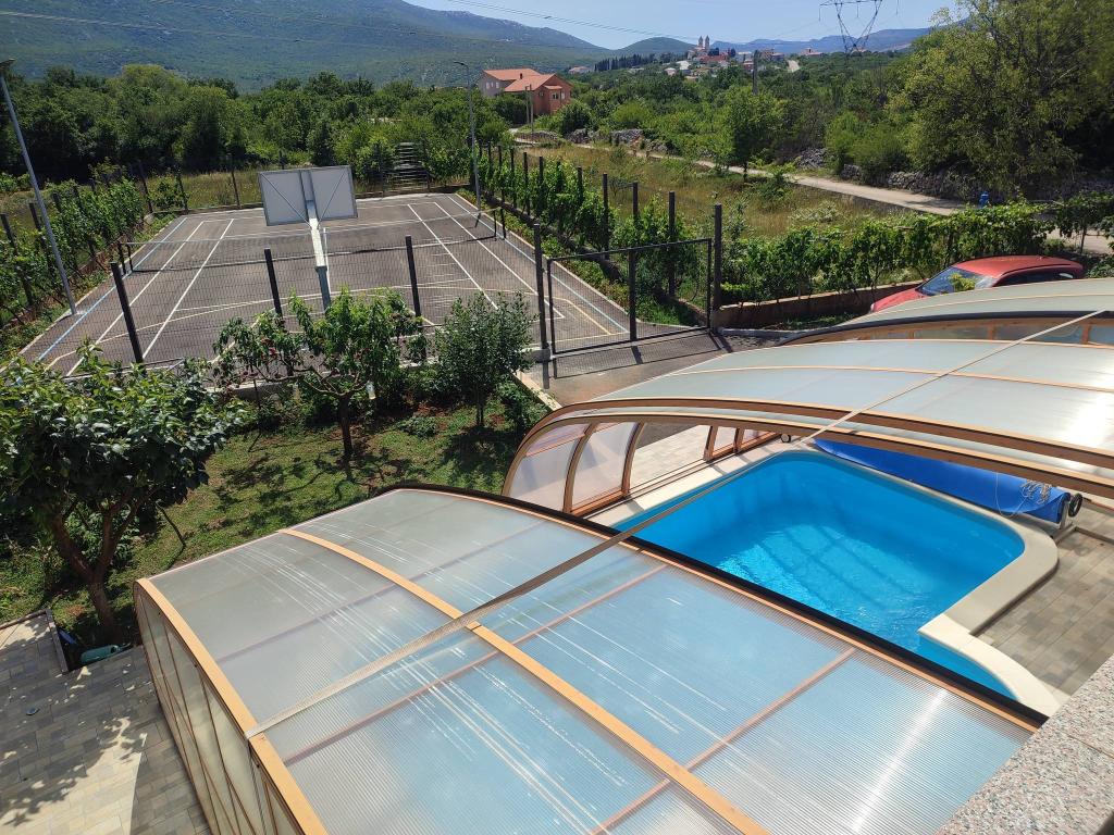 Ciesz się spokojnym wypoczynkiem w przestronnym domu w Dugopolje, idealnym dla rodzin, par lub grup przyjaciół. Obiekt oferuje prywatny basen, duży kort tenisowy z boiskiem do koszykówki oraz niepowtarzalny widok na góry, który tworzy idealną atmosferę do relaksu. Dom jest w pełni wyposażony, aby zapewnić przyjemny pobyt: nowoczesna kuchnia, komfortowy salon, klimatyzowane sypialnie oraz przestronny ogród, który zachęca do spotkań towarzyskich.