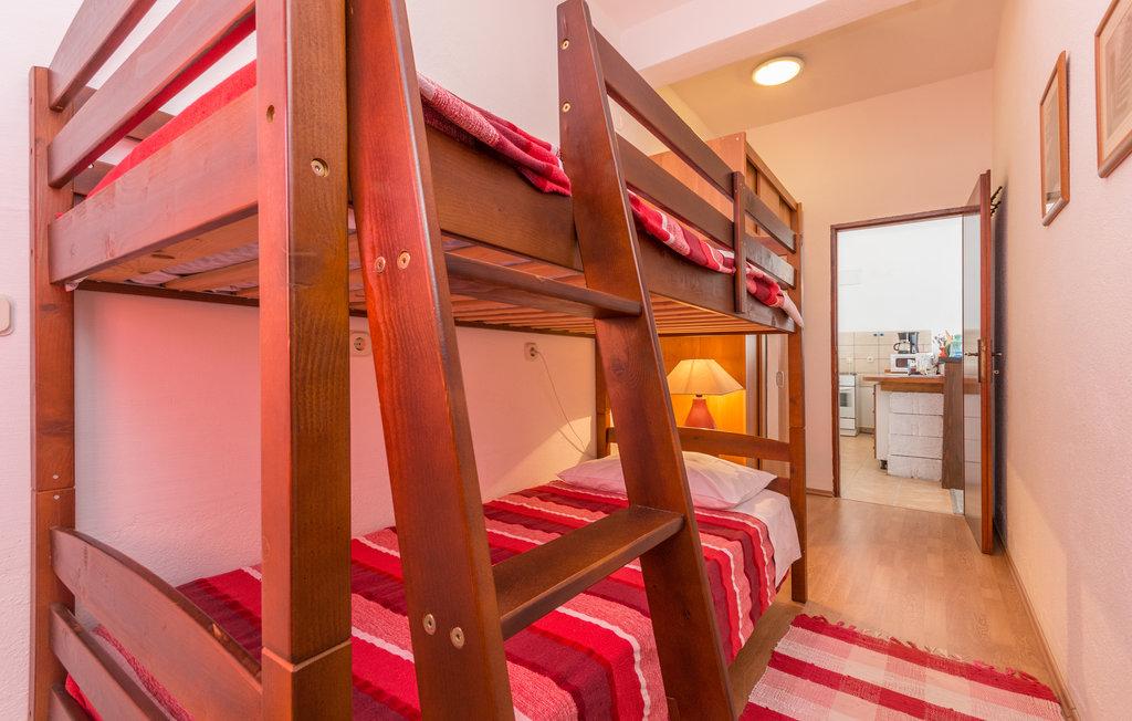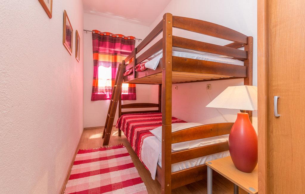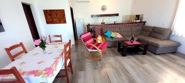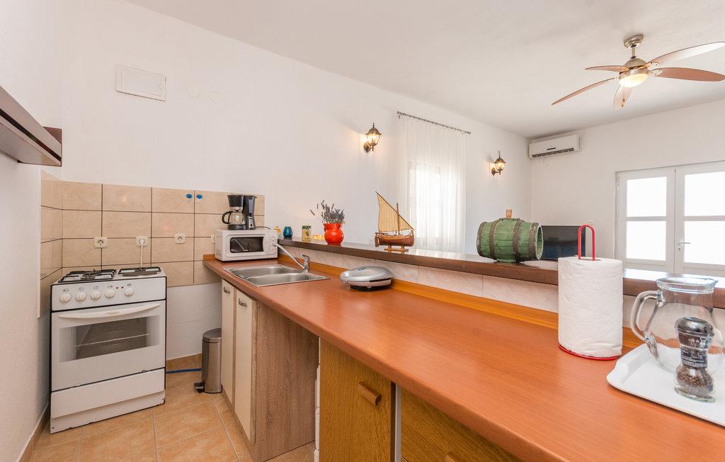 Przestronny taras z wygodnymi leżakami i parasolami, oferujący piękny widok na morze, to doskonałe zaproszenie do spędzenia tu urlopu. Zrelaksuj się z rodziną w tym przyjemnym obiekcie. Mali Iž, położony w środkowym kanale między Ugljan a Dugim Otokiem, otoczony jest innymi wysepkami. Promy i łodzie zapewniają szybki dojazd. Restauracje serwują dobre lokalne wina i wyśmienitą kuchnię dalmatyńską. Dom wakacyjny składa się z przestronnego salonu, kuchni i jadalni – otwartej przestrzeni, dwóch sypialni i łazienki. Jedna sypialnia wyposażona jest w łóżko podwójne o wymiarach 160×200 cm, a druga w łóżko piętrowe o wymiarach 90×200 cm. Dom posiada przestronny taras z widokiem na morze, oddalony o 10 metrów od brzegu. Obok domu znajduje się kominek z grillem. Bezpłatny parking jest dostępny na ogólnodostępnym parkingu w pobliżu obiektu.