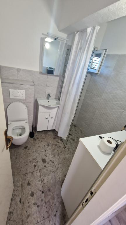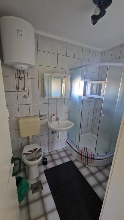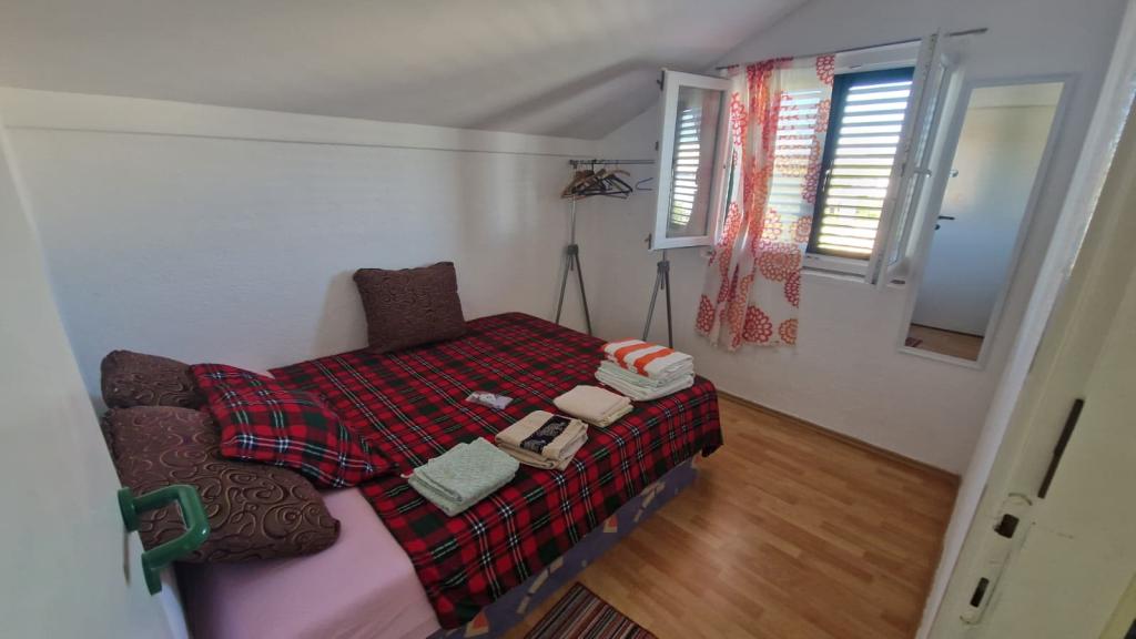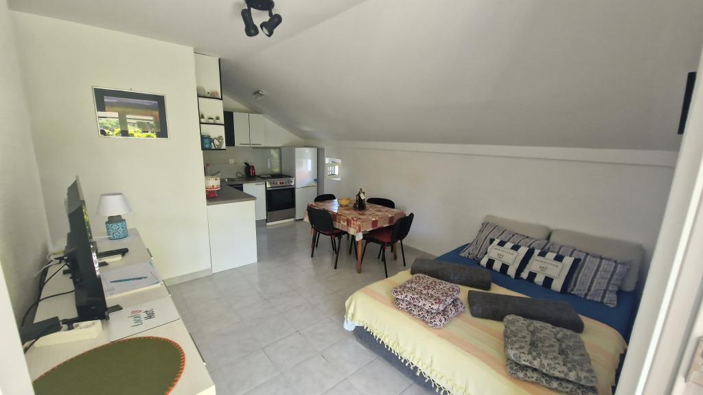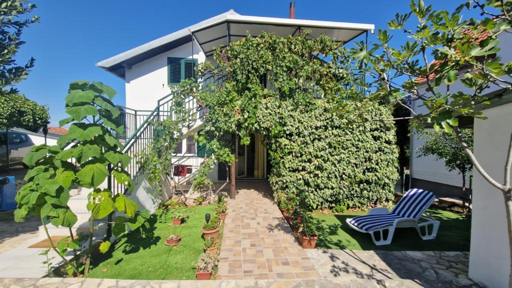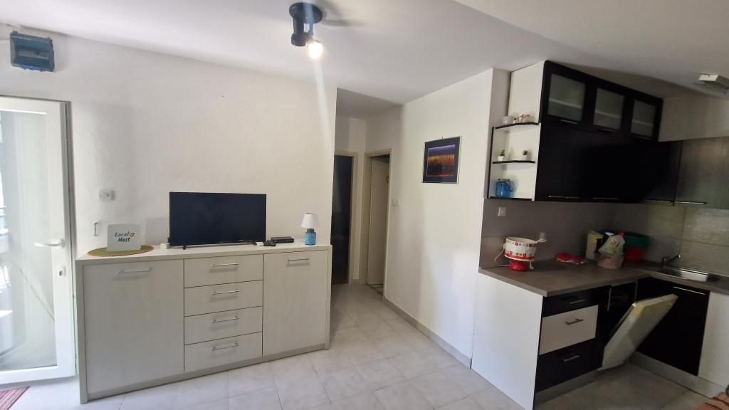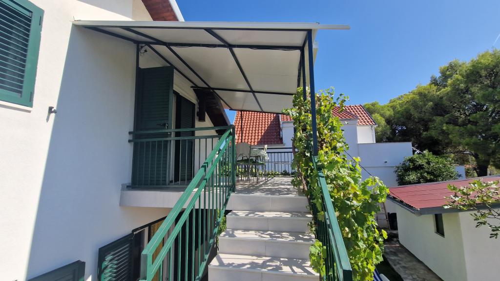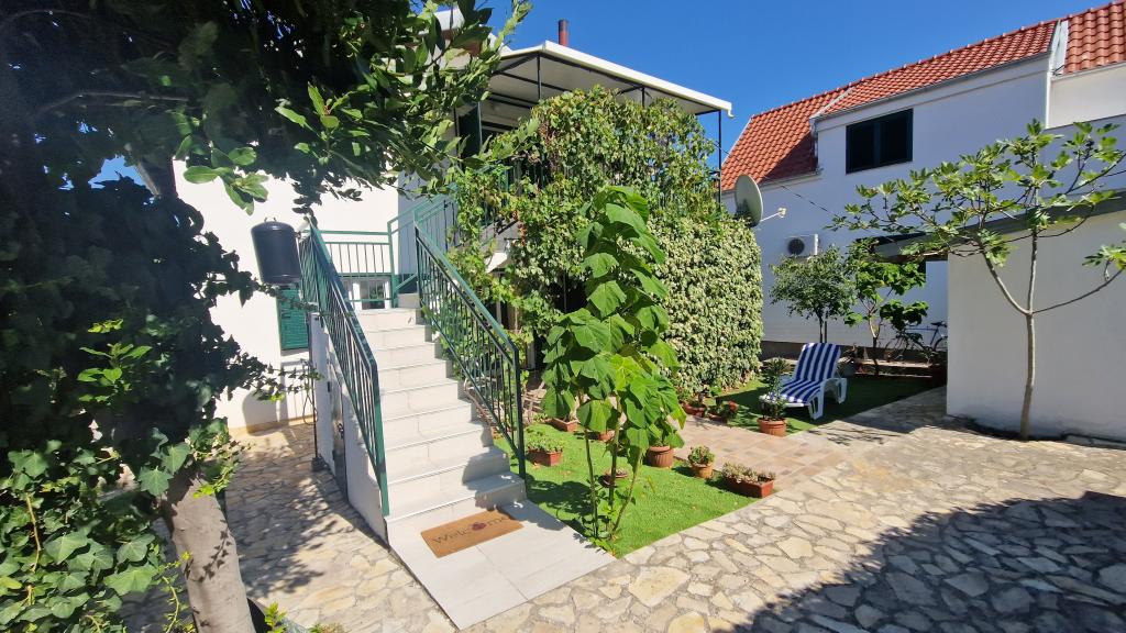Dom składa się z dwóch w pełni wyposażonych apartamentów (parter i piętro), które łącznie pomieszczą 8 osób. Apartamenty są oddzielne, a dom wynajmowany jest w całości – idealne rozwiązanie dla dwóch rodzin lub grupy przyjaciół, którzy chcą spędzić wakacje razem, zachowując jednocześnie prywatność. Każdy apartament posiada salon, kuchnię, łazienkę, 2 sypialnie i własny zadaszony taras – idealne miejsce na poranną kawę, lunch w cieniu lub wieczorne spotkania towarzyskie. Dom oferuje bezpłatny parking (maks. 3 samochody), Wi-Fi, klimatyzację i telewizor w obu apartamentach. Lokalizacja jest doskonała na wycieczki do Szybenika (12 km), Vodic (10 km) oraz pobliskich parków narodowych Krka i Kornati. W pobliżu znajduje się sklep, restauracja i zadbana plaża z czystym morzem.