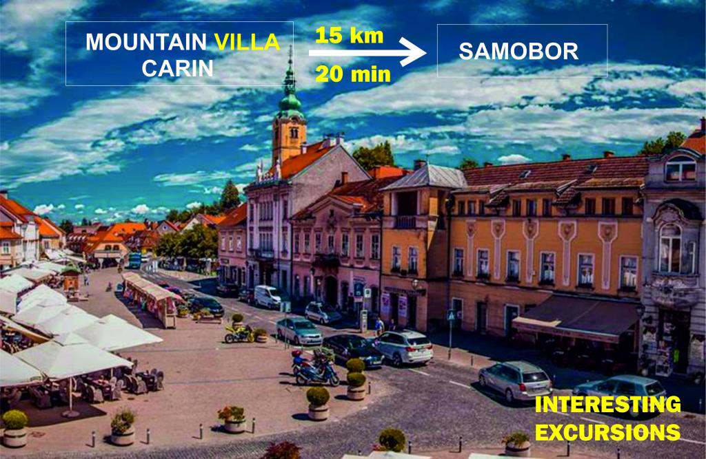Willa górska Carin położona jest w spokojnej części Parku Przyrody Samoborsko Gorje. Dzięki dogodnemu położeniu na wzgórzu, willa oferuje piękny widok na całą nizinę w promieniu 100 km. Willa o powierzchni 120 m² może pomieścić do 8 osób w 4 elegancko urządzonych sypialniach z podwójnymi łóżkami, każda z telewizorem i pięknym widokiem. Do dyspozycji gości jest bezpłatne Wi-Fi, taras zewnętrzny z grillem i jadalnią, jacuzzi dla 5 osób, kominek opalany drewnem, ogrzewanie kaloryferowe oraz klimatyzacja, dzięki czemu willa nadaje się zarówno na letnie, jak i zimowe pobyty. Obiekt dysponuje prywatnym parkingiem na cztery samochody oraz terenem zewnętrznym dostosowanym do potrzeb dzieci i rodzin. Dzięki położeniu na wzgórzu, przeszklony taras z jacuzzi, z którego można korzystać o każdej porze roku, oferuje panoramiczny widok na Zagrzeb, Jastrebarsko, Karlovac, rezerwat przyrody Crna Mlaka i Petrovą Górę. Okolica oferuje liczne możliwości aktywnego i relaksującego wypoczynku.