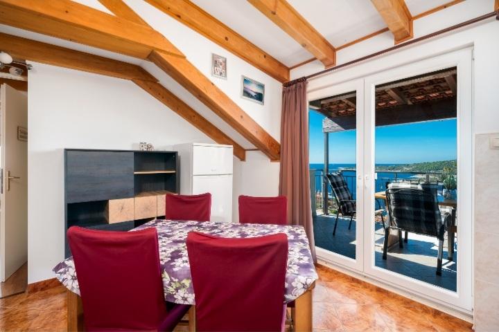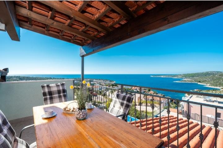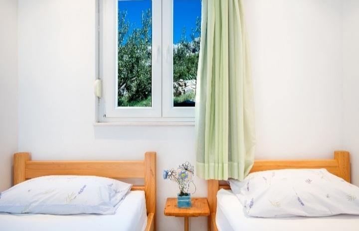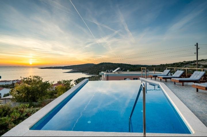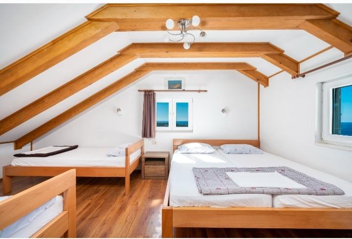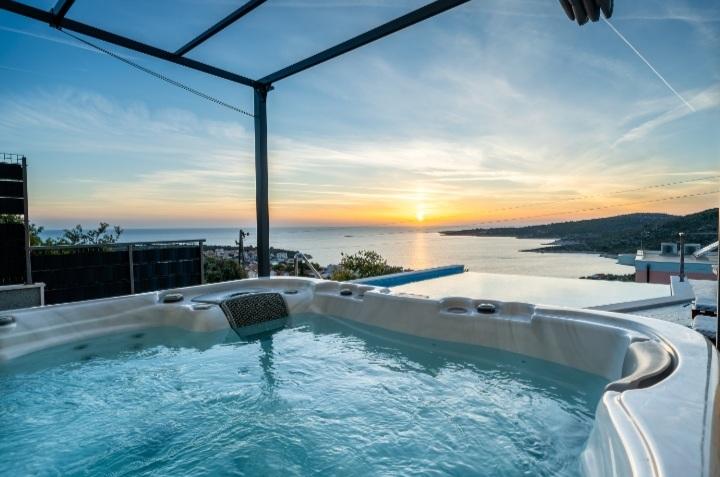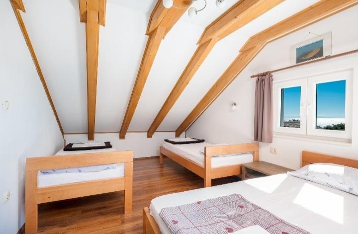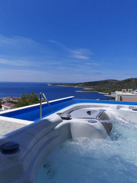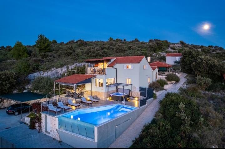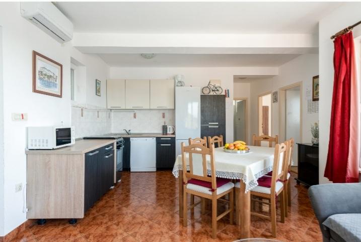 Dom wakacyjny z basenem i podgrzewaną wanną do masażu położony jest na wzgórzu z pięknym widokiem na otwarte morze. Jest idealnym miejscem na spokojny wypoczynek dla dużej rodziny lub grupy przyjaciół. Jednocześnie łatwo dostępne są obiekty sportowe i rozrywkowe; zagospodarowane ścieżki rowerowe, piaszczyste, betonowe i żwirowe plaże nad krystalicznie czystym morzem. Restauracje i kluby nocne oddalone są od obiektu o 5–10 minut jazdy samochodem. W domu znajduje się łącznie dziesięć łóżek i dwie rozkładane sofy, dwie nowoczesne kuchnie, dwie łazienki i dwie toalety. Kuchnie wyposażone są w naczynia do przygotowania i przybory do serwowania posiłków. W jednej kuchni znajduje się zmywarka, ekspres do kawy, kuchenka mikrofalowa, czajnik, toster. Do dyspozycji gości dwa zadaszone tarasy, duży otwarty taras przy basenie, grill, parking na trzy samochody, basen (40 m2), leżaki, prysznic na świeżym powietrzu oraz ogrodzony plac zabaw dla dzieci. Sprzątanie końcowe, klimatyzacja, konserwacja basenu, opłata klimatyczna i internet są wliczone w cenę. Powitanie!