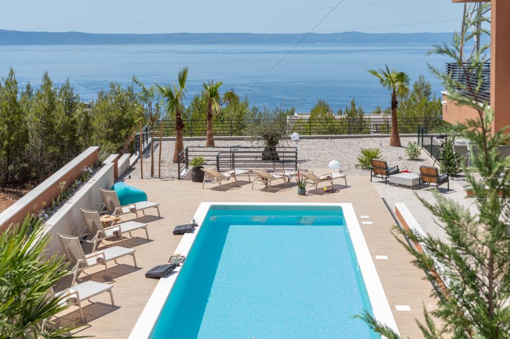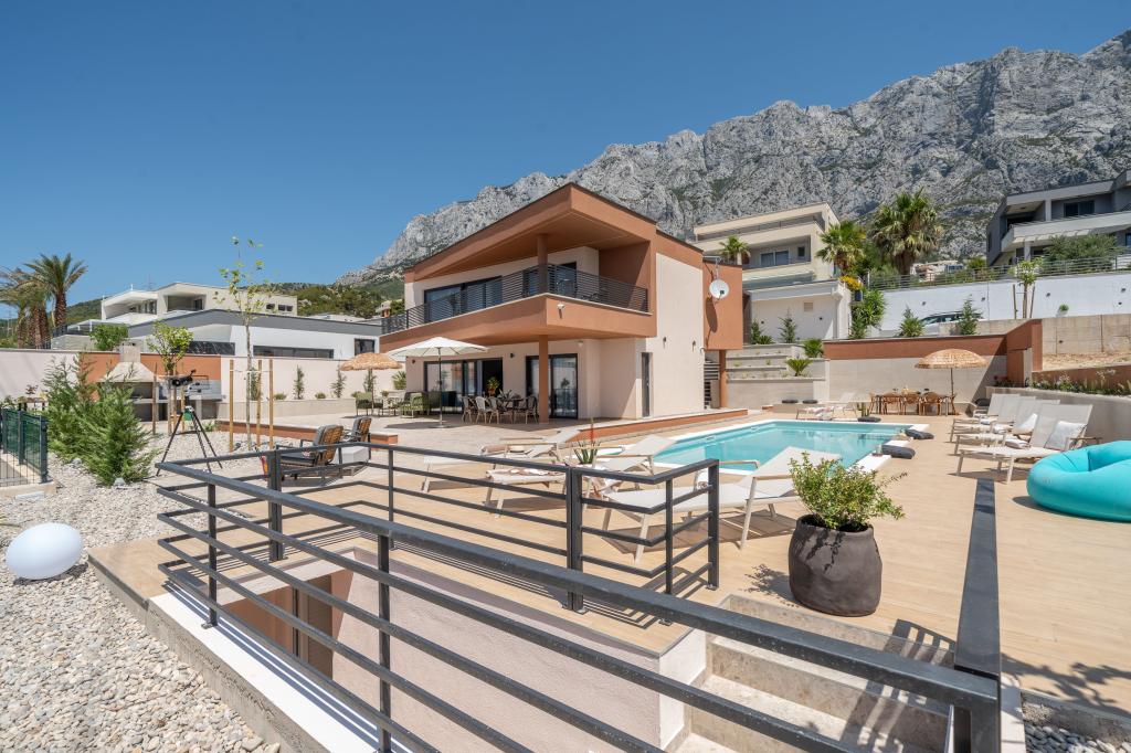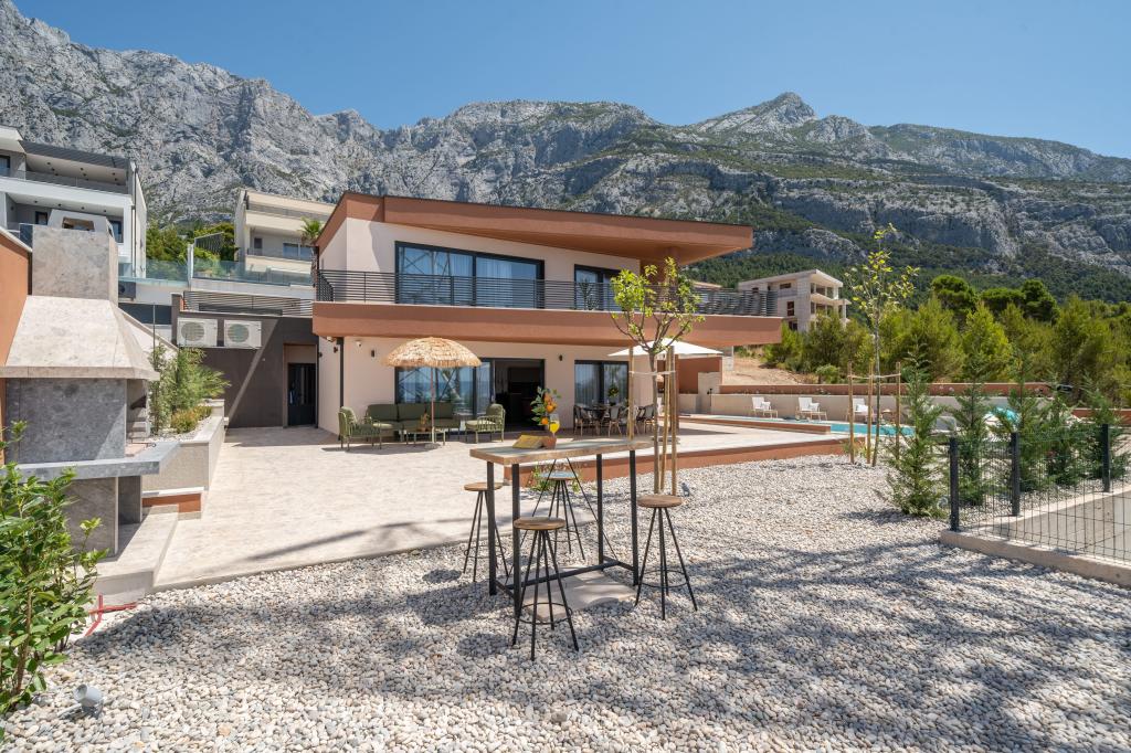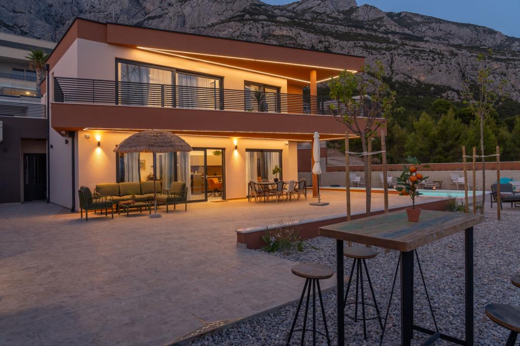 Nowoczesna willa ze spektakularnym widokiem na lazurowe morze i gigantyczny masyw Biokovo – prawdziwa luksusowa oaza dla rodzin lub grup do 8 osób! Prywatny basen, idealny na orzeźwiającą kąpiel, grill na niezapomniane wieczory oraz przestronny salon na świeżym powietrzu, idealny na relaks, romantyczne chwile lub wesołe rodzinne kolacje pod gwiazdami. Twoje marzenie w Dalmacji czeka na Ciebie!