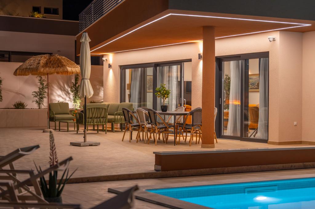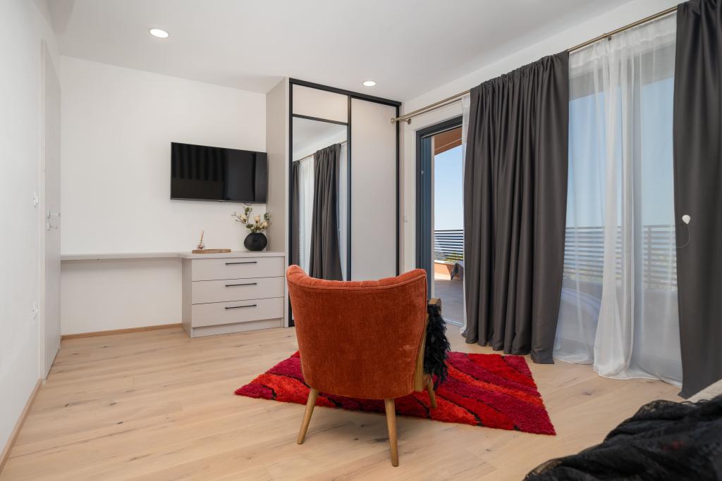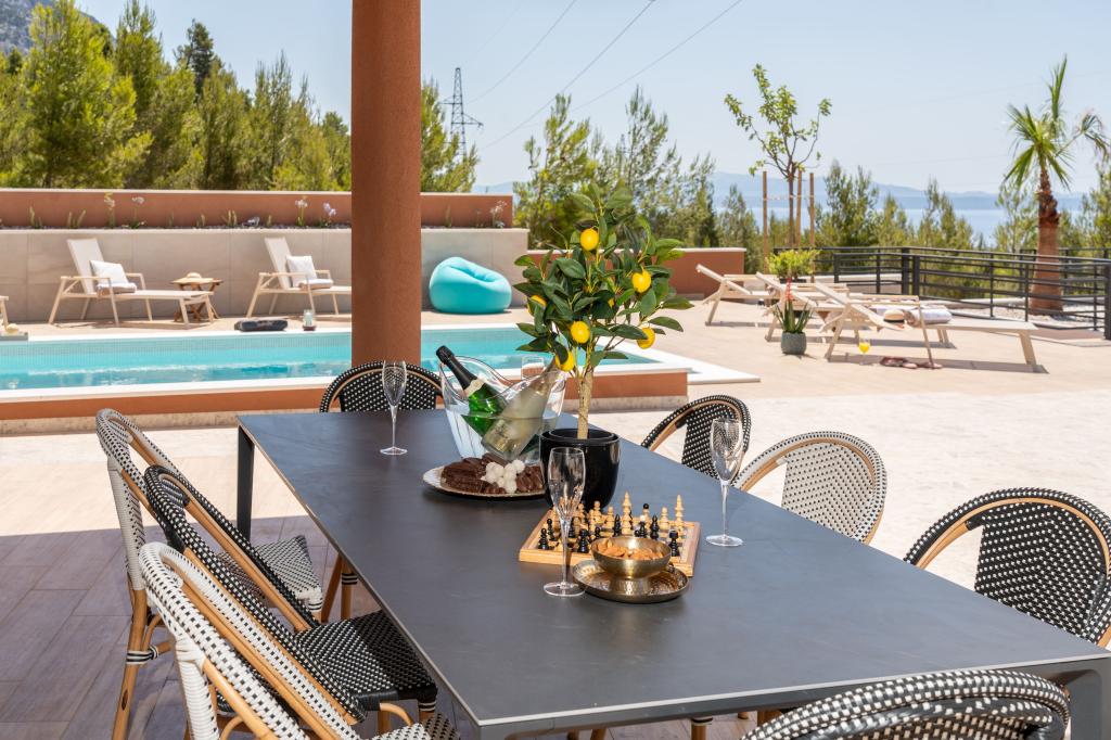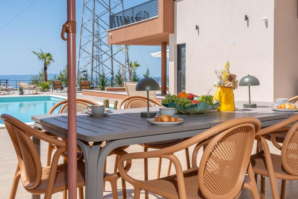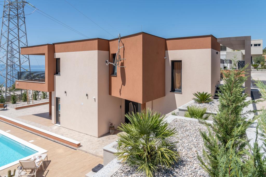 Nowoczesna willa ze spektakularnym widokiem na lazurowe morze i gigantyczny masyw Biokovo – prawdziwa luksusowa oaza dla rodzin lub grup do 8 osób! Prywatny basen, idealny na orzeźwiającą kąpiel, grill na niezapomniane wieczory oraz przestronny salon na świeżym powietrzu, idealny na relaks, romantyczne chwile lub wesołe rodzinne kolacje pod gwiazdami. Twoje marzenie w Dalmacji czeka na Ciebie!