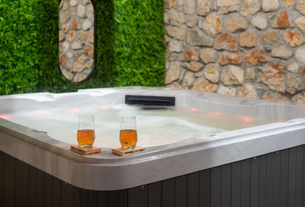 Opłata jest wliczone w cenę.Basen (32 m²), jacuzzi, sauna (fińska), 2 prysznice zewnętrzne, kort do padla, boisko do koszykówki, boisko do bule, minigolf, siłownia na świeżym powietrzu, tenis stołowy, piłkarzyki, rzutki, bilard, plac zabaw dla dzieci, 2 kominki zewnętrzne, piwniczka z winami, letnia kuchnia na świeżym powietrzu i bar na świeżym powietrzu. Oprócz udogodnień oferujemy naszym gościom drinki powitalne i upominki.