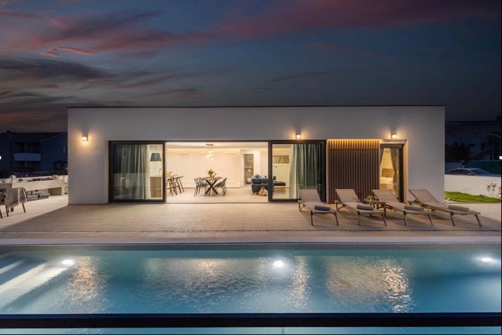 Villa Coralis znajduje się w Vrsi, zaledwie 5 km od królewskiego miasta Nin i 20 km od miasta Zadar. Ta nowoczesna piękność przyciągnie gości, którzy szukają luksusowego i spokojnego wypoczynku, lubią opalać się, pływać i wypoczywać razem z rodziną lub przyjaciółmi. Vrsi to mała miejscowość turystyczna, która wita gości z całego świata swoimi nowoczesnymi i pięknymi willami oraz życzliwością. Będziesz cieszyć się spacerami po długich żwirowych plażach, gdzie możesz cieszyć się słońcem, czystym morzem i siłownią na świeżym powietrzu. Villa Coralis została wybudowana w nowoczesnym stylu budowlanym w 2022 roku, ma 130 m2 powierzchni mieszkalnej, 45 m2 to duży basen, a łączna powierzchnia nieruchomości to 450 m2. Willa jest w pełni klimatyzowana i może w niej przebywać maksymalnie 8 osób, optymalna liczba to 6. Willa jest parterowym domem i wygodnie zakwaterujecie się w 3 sypialniach z podwójnymi łóżkami, które mają własną łazienkę. łazienki z prysznicami oraz dodatkowa łazienka. Obejmuje on również plac zabaw dla dzieci, stół do ping ponga i konsolę PS4.
