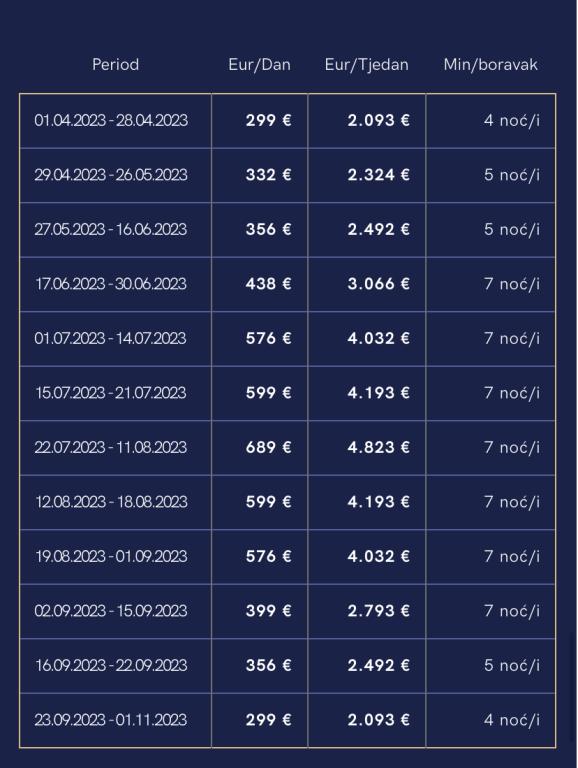 Czytaj więcejW przypadku rezerwacji 30% wpłacane, a 7 dni przed przyjazdem reszta wpłacana bezpośrednio na konto właściciela. Po wejściu do domu przywita Cię właściciel domu, który wprowadzi Cię do domu, a konieczne jest pozostawienie kaucji w wysokości 300 euro, która zostanie zwrócona przy wyjściu z domu, jeśli nic nie jest uszkodzony. Goście mogą wejść do willi od godziny 16:00 i wyjść do godziny 10:00.