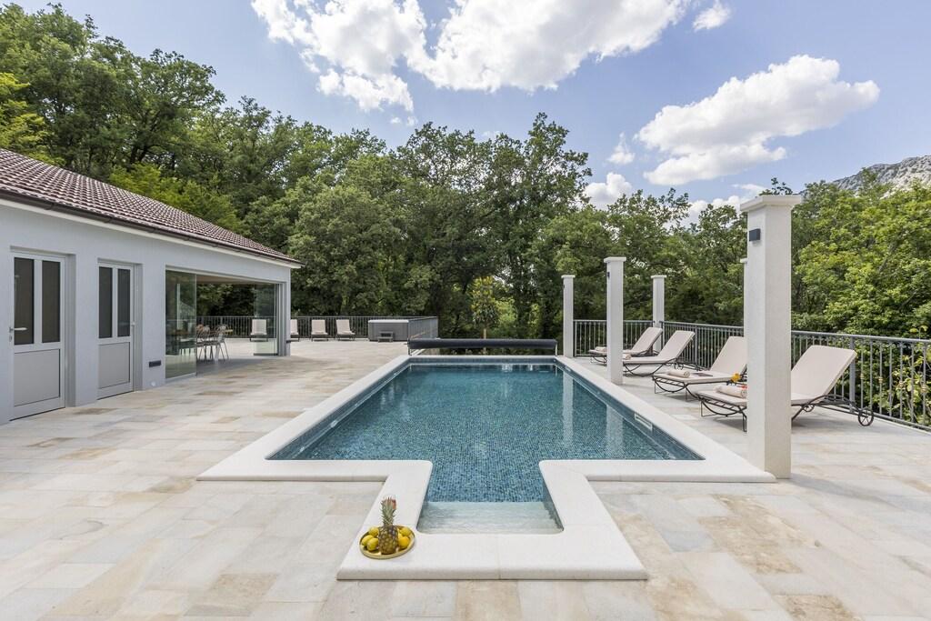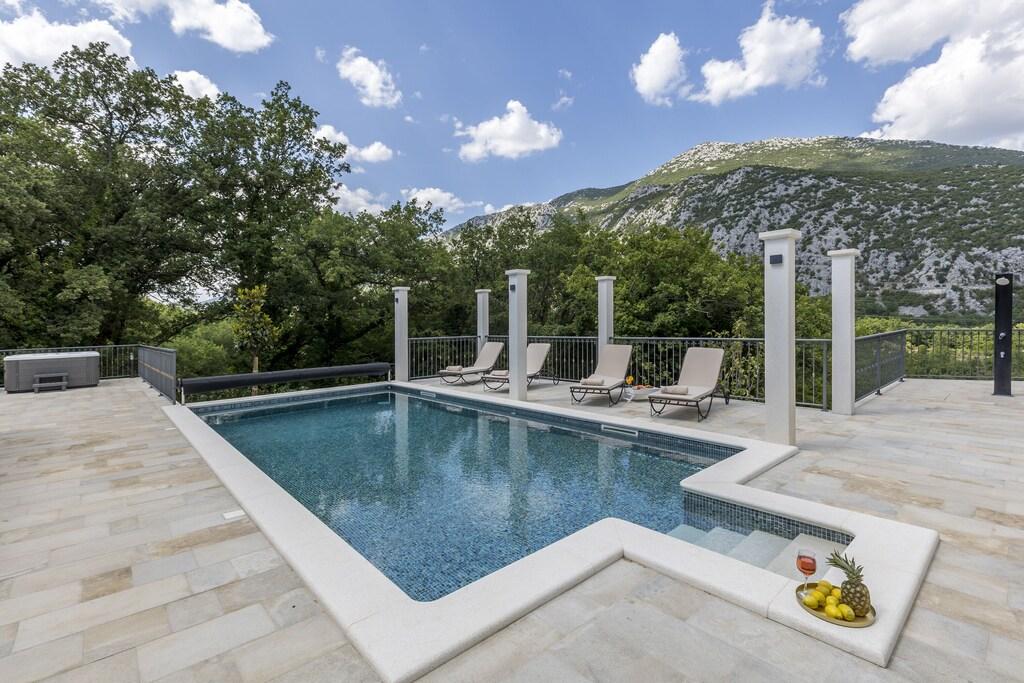 Kompletna i nowo wyremontowana willa z basenem, sauną, letnią kuchnią i domem z 4 sypialniami. Każdy pokój ma własną łazienkę, salon, jadalnię i kuchnię. Dom położony jest w małej wiosce Zvečanje, 10 minut od autostrady Blato na Cetini. Omis jest oddalony 15 minut samochodem, Split 35 minut, Makarska 25 minut.