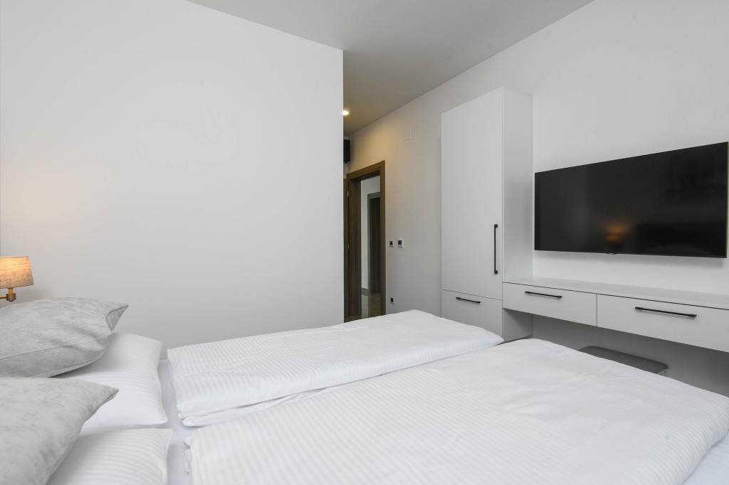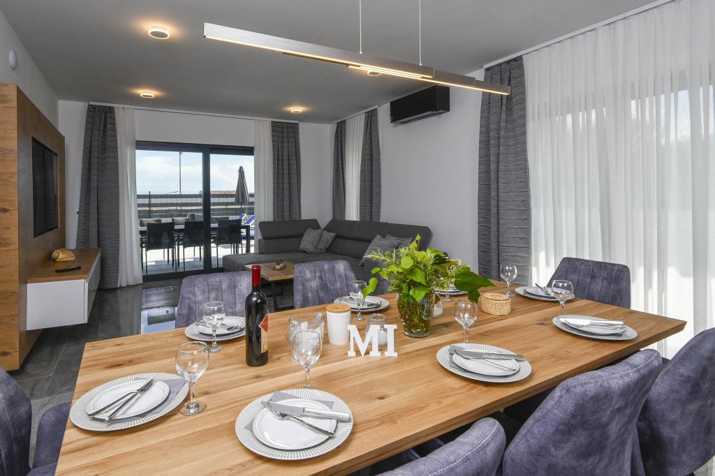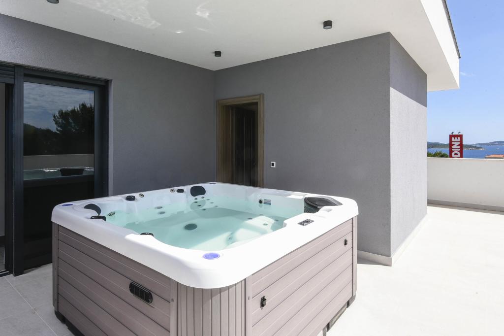 Dom ten oferuje dodatkowy poziom luksusu, taki jak: B. w postaci większej przestrzeni i komfortu, wystroju lub stylu wnętrza, architektury, wyposażenia lub doświadczeń. Ten elegancki dom wakacyjny z prywatnym basenem znajduje się w doskonałej lokalizacji. Znajduje się w pobliżu pięknej plaży Trstenica z drobnym piaskiem i kamykami. Na parterze znajduje się duża kuchnia z salonem, sypialnia z własną łazienką i dodatkową łazienką, pralnia oraz dwustanowiskowy garaż. Wewnętrzne schody prowadzą na I piętro, gdzie znajdują się jeszcze trzy sypialnie z łazienkami oraz gabinet (gabinet). Z każdej sypialni wyjście na piękny balkon z pięknym widokiem na morze. Na zewnątrz można ochłodzić się w basenie, zrelaksować się we własnym jacuzzi i saunie, a dzieci pobawić się na placu zabaw. W piwnicy znajduje się sala fitness i pokój rekreacyjny. Orebić to mała miejscowość, ale wystarczająco duża, aby zaoferować Ci wszystko, czego potrzebujesz na wakacjach, od restauracji po sklepy. Można także wybrać się na jednodniowe wycieczki do Dubrownika i na wyspę Korčula.