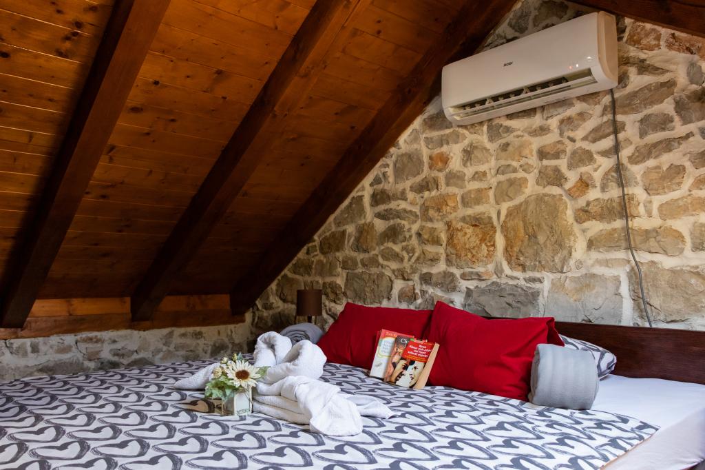 Niegdyś ciszę i atmosferę Morza Śródziemnego, intymność i prostotę połączoną z bezpretensjonalnym luksusem można znaleźć w starożytnej wiosce Stanković, zbudowanej w XV wieku, nad Orebićem. Ciemne drewno w połączeniu z białym kamieniem, antyczne jasnozielone odcienie gontu i luksusowe wnętrza nie pozostawiają gości obojętnymi. Willa może pomieścić 14 osób i oferuje odkryty basen, jacuzzi z wodospadem, salę playstation, siłownię, park dla dzieci, grill na świeżym powietrzu i dużo cienia na popołudniową sjestę. Cała nieruchomość o powierzchni 2000m2 jest idealna na spokojne rodzinne wakacje i łączenie rodziny i przyjaciół. W jego skład wchodzą: 3 domy - Azur, Wood, Ston. Razem-7 sypialni. Telewizory, klimatyzatory, zmywarki i inne urządzenia sprawiają, że czujesz się jak w domu. DOM Z DREWNA - 4 OSOBY !! Wioska Stanković jest idealną bazą wypadową do zwiedzania wyspy lub relaksu na łonie natury z widokiem na morze pachnące śródziemnomorską roślinnością. Jesteś tylko 15 minut od miasta i plaży, ciesząc się naszym ukrytym skarbem.