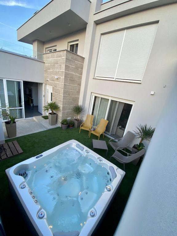 Elegancka willa z 3 sypialniami, prywatnym jacuzzi, przestronnym tarasem z magicznym widokiem na morze oraz zadaszonym kącikiem do grillowania i spotkań towarzyskich. Nowocześnie wyposażona kuchnia, komfortowy salon, szybkie Wi-Fi i bezpieczny parking. Idealne miejsce na beztroski i luksusowy wypoczynek w spokojnej okolicy, blisko plaży i lokalnych udogodnień.