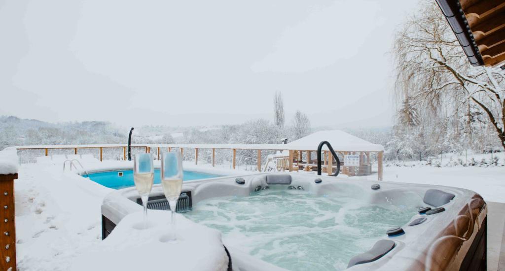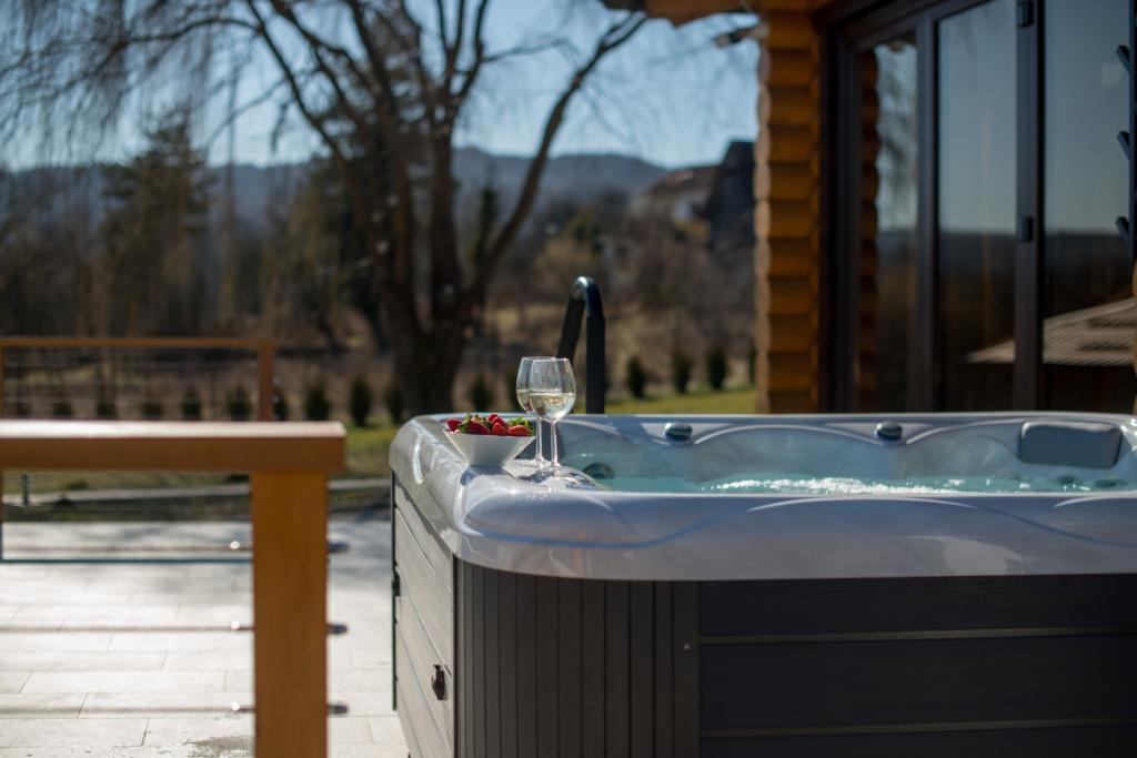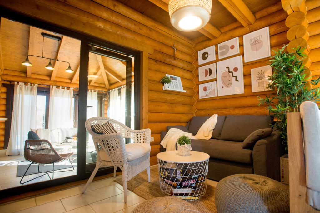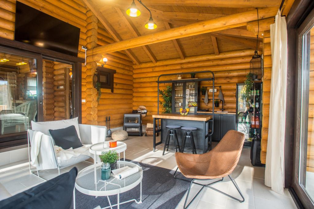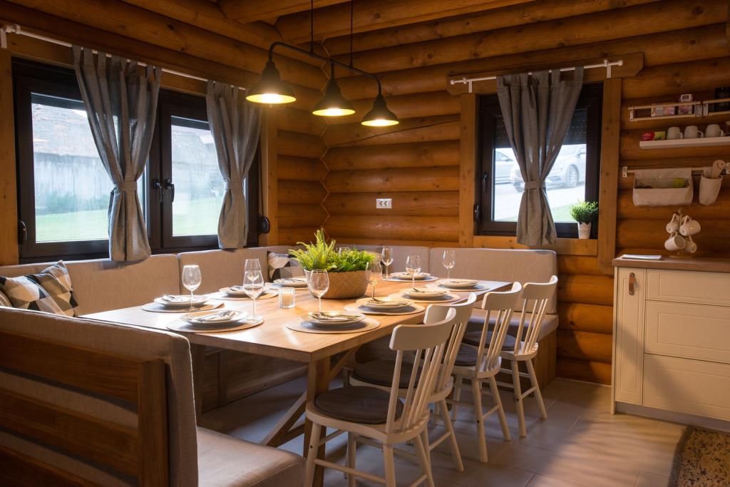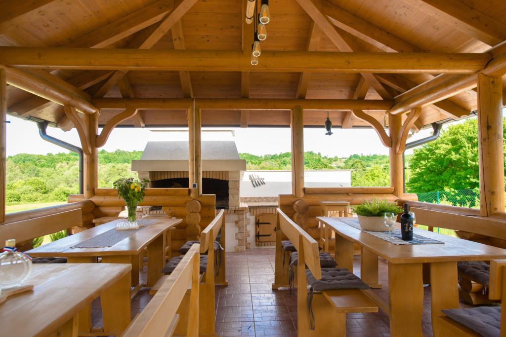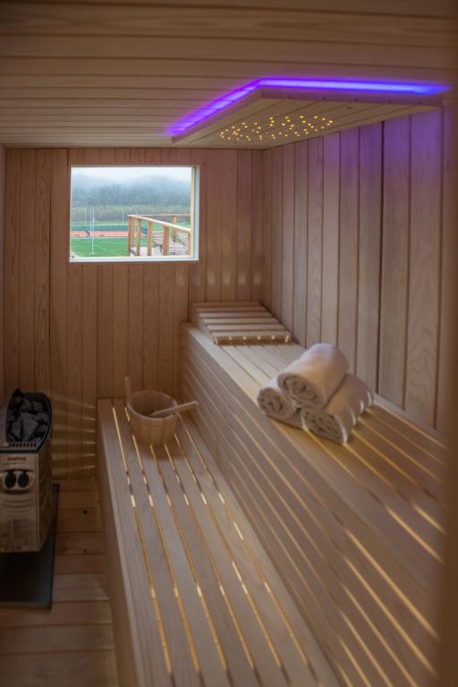 Drewniany dom z sosny syberyjskiej. Dom: maksymalnie nie. łóżek 10, dom 108 m2, taras z basenem 105 m2, sauna, jacuzzi, altanka 30 m2. ogród ponad 7000 m2, parking, salon z kuchnią, 3 sypialnie, łazienka z prysznicem i WC. Zamykany taras z kominkiem, kort tenisowy do spotkań towarzyskich i sportowych, przebieralnia z prysznicem i toaletą, altana z grillem, wędką i niezbędnym wyposażeniem. Plac zabaw dla dzieci, 4 telewizory, rzutki.