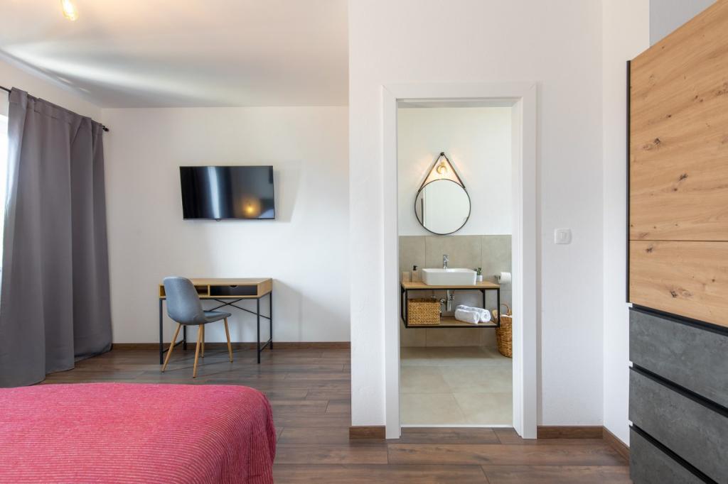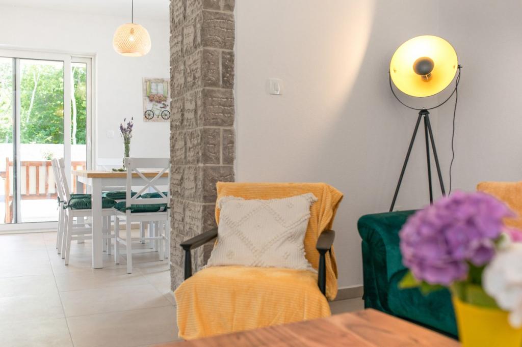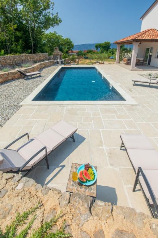 Villa Albina znajduje się w spokojnej wiejskiej okolicy w Skrpčići na wyspie Krk, bardzo blisko miasta Krk. Wyjątkowy, odrestaurowany tak, aby zachować autentyczność, z wieloma rustykalnymi detalami. W domu panuje bardzo romantyczna, ciepła i przyjemna atmosfera. To zakwaterowanie jest idealne, jeśli chcesz spędzić wakacje w naturalnym i relaksującym otoczeniu. Ciesz się pięknym basenem 10x4 i przestronnym wnętrzem zakwaterowania, na pierwszym piętrze dwie przestronne sypialnie z własną łazienką i balkonem, duży salon i kompletna kuchnia ze wszystkimi urządzeniami. Wszystkie pokoje w domu są klimatyzowane i posiadają bezpłatny dostęp do Internetu, dwa tarasy oraz przestronny ogród z ukrytymi śródziemnomorskimi ziołami i oliwkami.