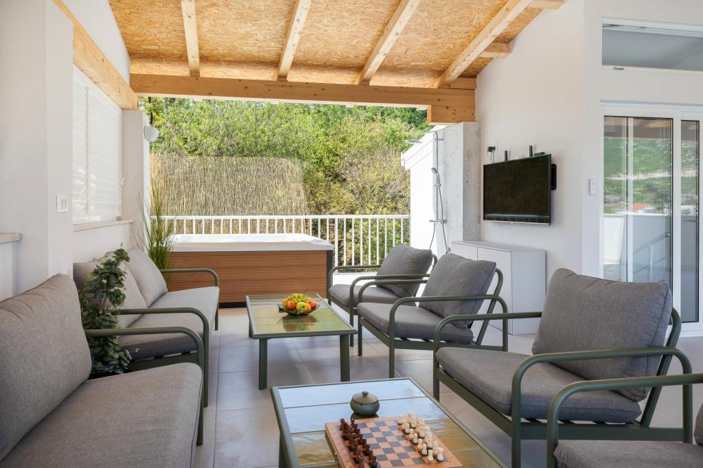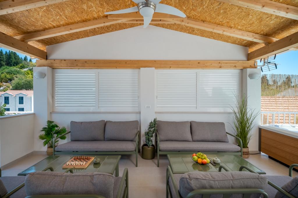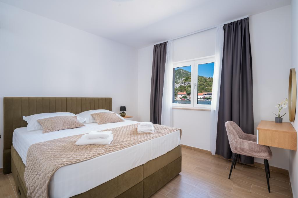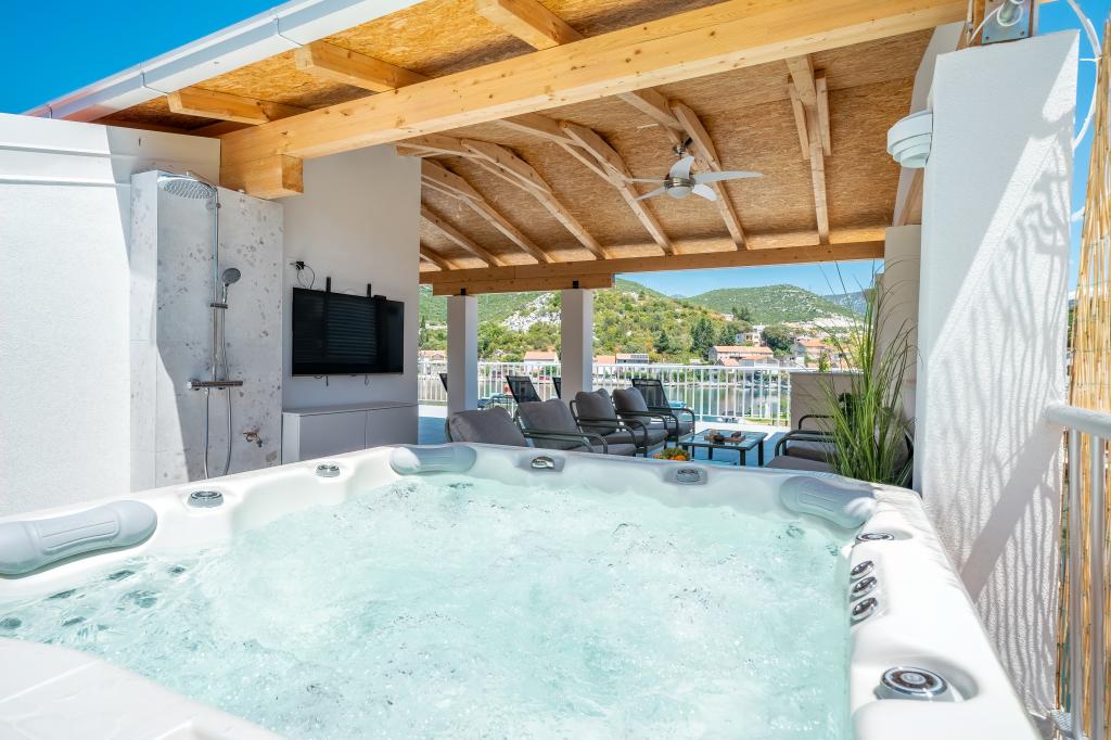 W pełni i nowocześnie wyposażona willa, w której możesz zatrzymać się tylko Ty, z podgrzewanym jacuzzi, położona 3 m od morza i 30 m od plaży. Willa posiada taras z jadalnią na świeżym powietrzu i prywatnym kominkiem, 4 pokoje o powierzchni 15 m², wszystkie klimatyzowane, z pięknym widokiem i dostępem do balkonu. Na dachu znajduje się taras o powierzchni 110 m² z prysznicem na świeżym powietrzu, podgrzewanym jacuzzi oraz częścią wypoczynkową i towarzyską. Z tarasu i balkonu roztacza się piękny widok na zatokę i miasto. Willa oferuje bezpłatne Wi-Fi i bezpłatny prywatny parking. Kuchnia jest wyposażona we wszystkie sprzęty AGD. Willa znajduje się 32 km od wodospadu Kravica. 42 km od willi znajduje się Góra Objawień w Medziugorju, 10 km od willi znajdują się Jeziora Bačinska i ujście Neretwy, idealne dla surferów.