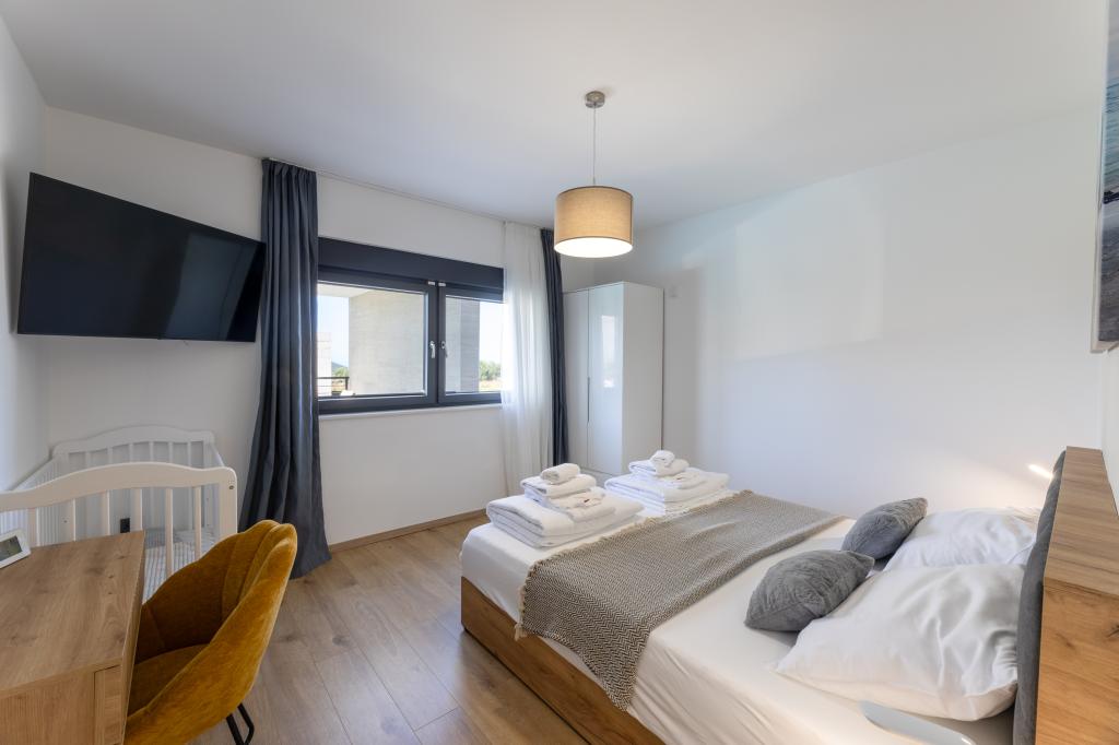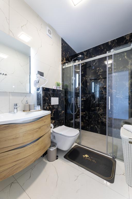 Witamy w Villi Golden Shine, luksusowej oazie położonej w sercu malowniczego Primoštenu w Chorwacji. Willa łączy w sobie nowoczesną elegancję i autentyczny dalmatyński urok, zapewniając najwyższy komfort i zapierający dech w piersiach panoramiczny widok na Morze Adriatyckie. Przestronne wnętrza i luksusowy basen sprawiają, że Villa Golden Shine to idealny wybór na relaks, rodzinne wakacje lub romantyczny wypad. Położenie willi zapewnia łatwy dostęp do krystalicznie czystych plaż i zabytkowego centrum Primoštenu, a komfort i prywatność gwarantują wakacje na najwyższym poziomie w pięknym otoczeniu. Prywatny, podgrzewany basen o wymiarach 8x4 m z lekko słoną wodą lśni niczym szafiry w słońcu, otoczony leżakami, które zachęcają do beztroskiej zabawy. Taras, niczym wymarzony balkon, oferuje zapierające dech w piersiach panoramiczne widoki na Morze Adriatyckie – idealne miejsce na poranną kawę lub romantyczny wieczór o zachodzie słońca. Doświadcz luksusu na zupełnie nowym poziomie w Villi Golden Shine – Twoim ukrytym raju w sercu Dalmacji, gdzie każda chwila nabiera złotego blasku.